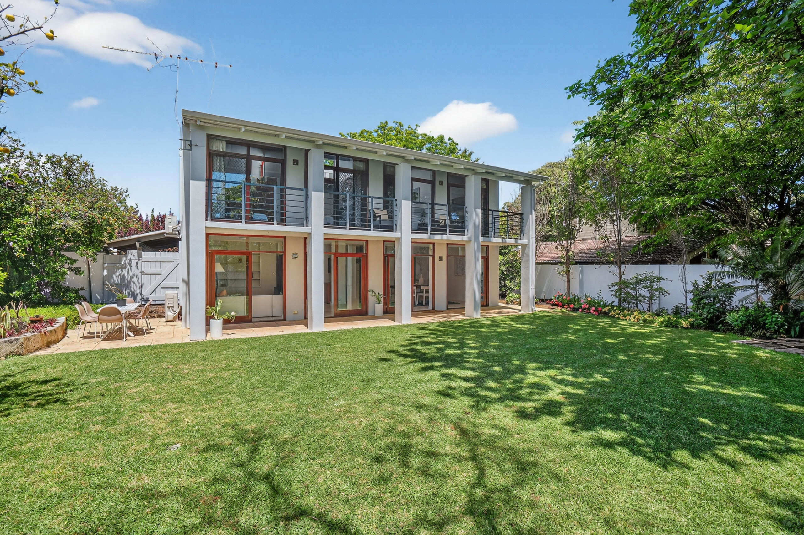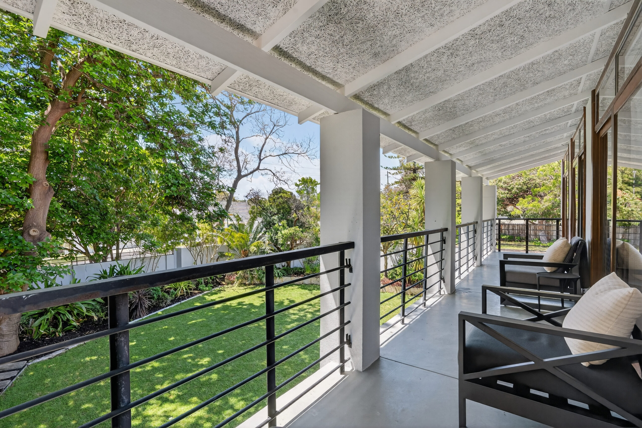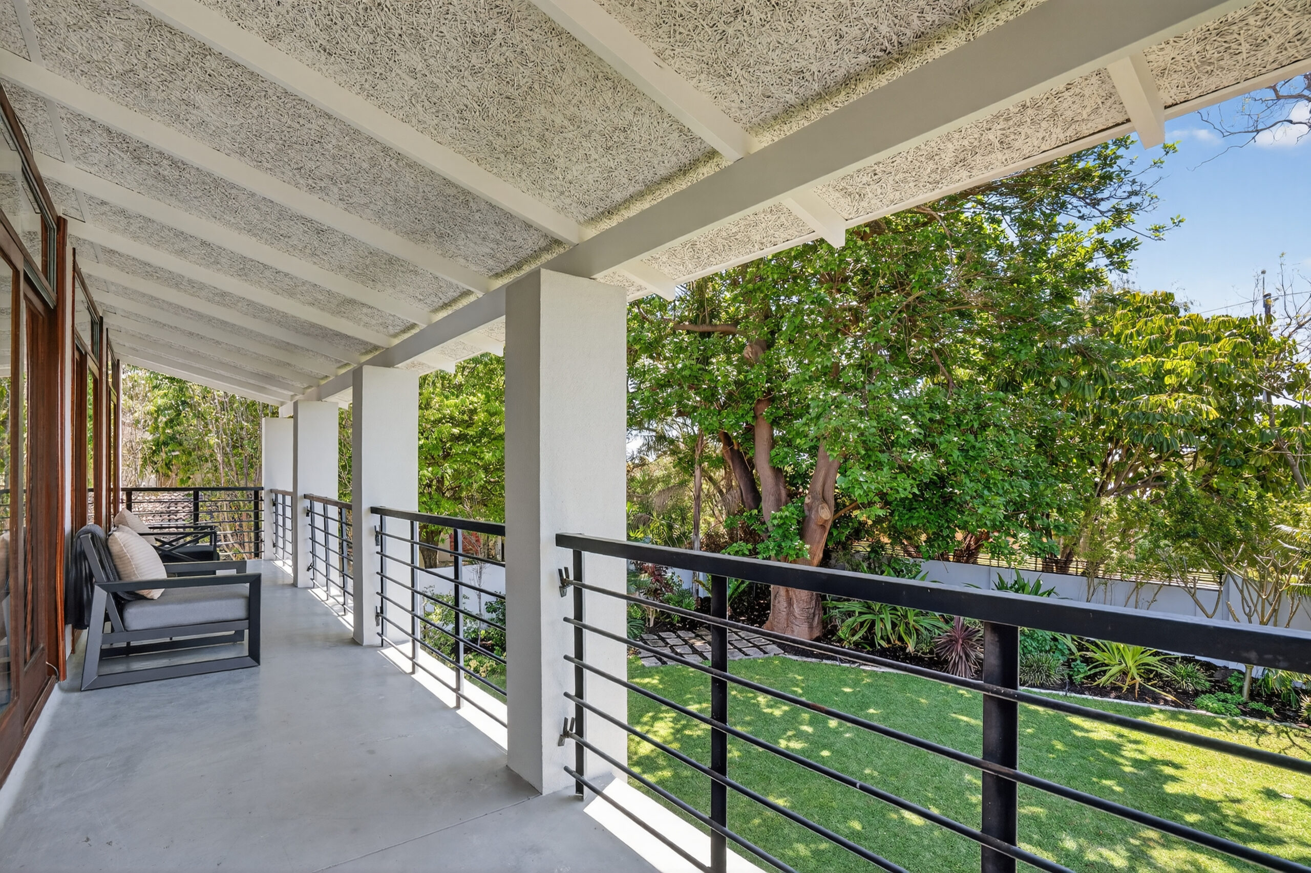 Upstairs, two of the four bedrooms include built-in robes, with a walk-in robe in the main bedroom and the balance with ample wardrobe space. All share a large skylit bathroom and all have direct access to a long balcony that makes the most of its elevated northern outlook over the gardens and into that stunning lawned garden below.