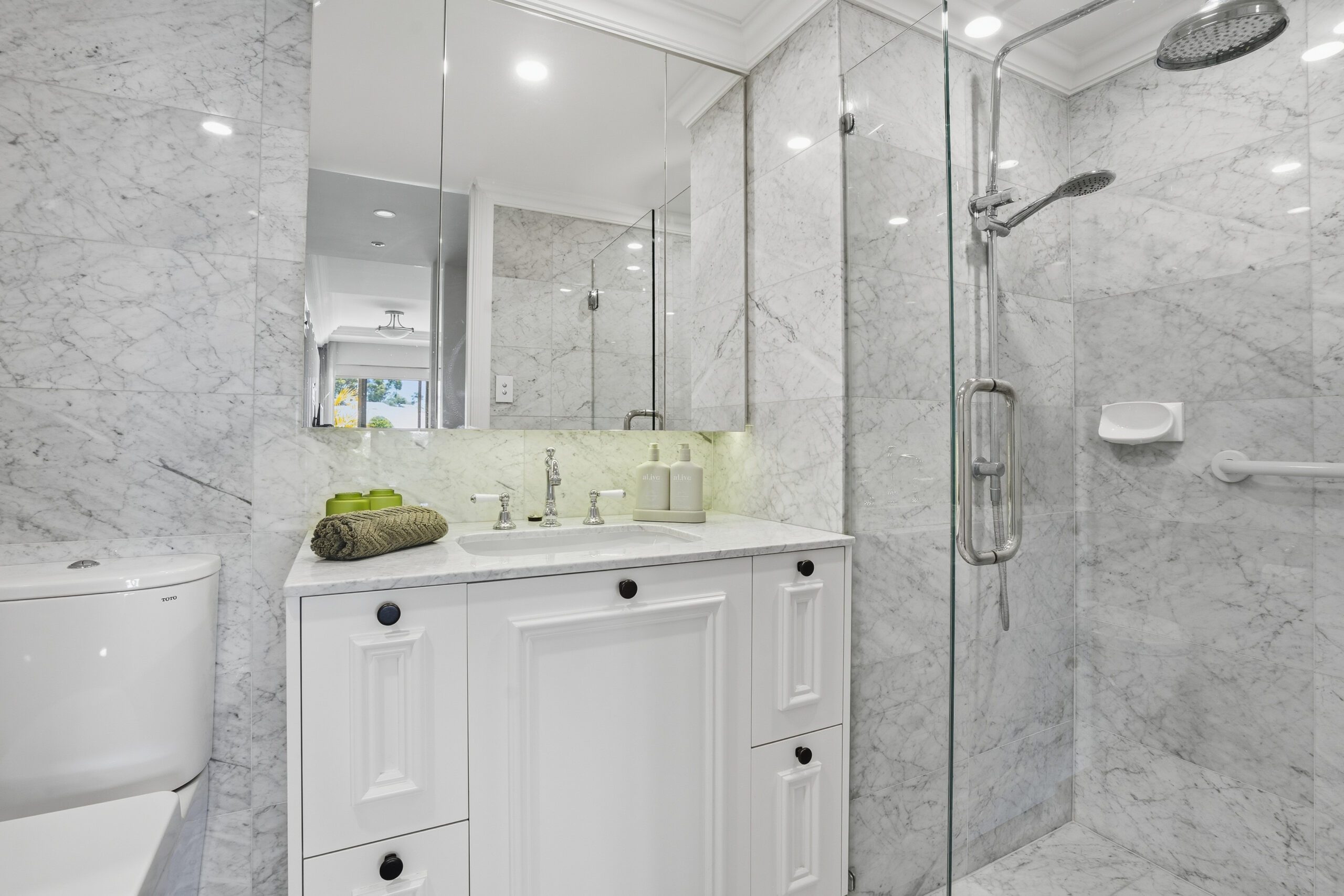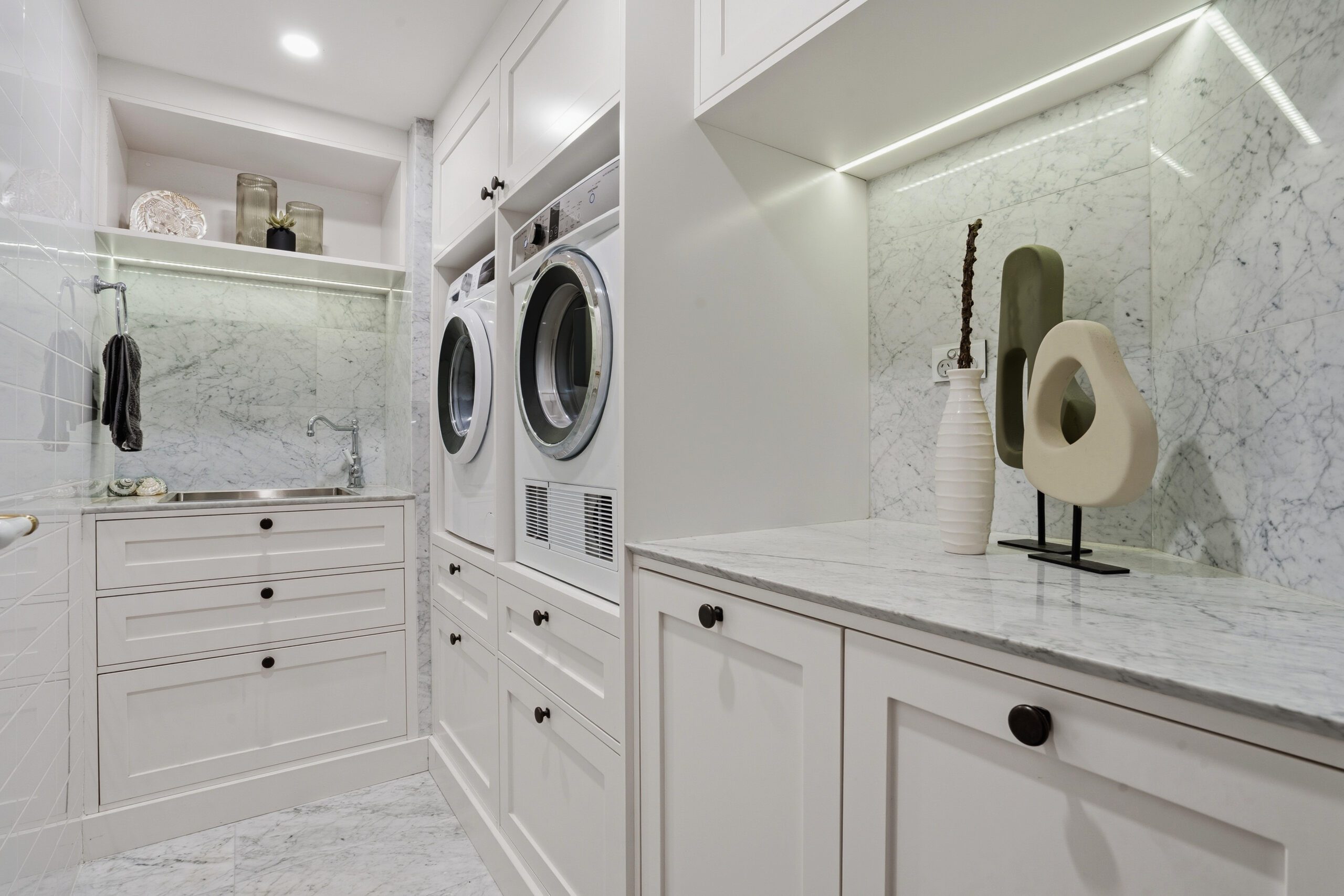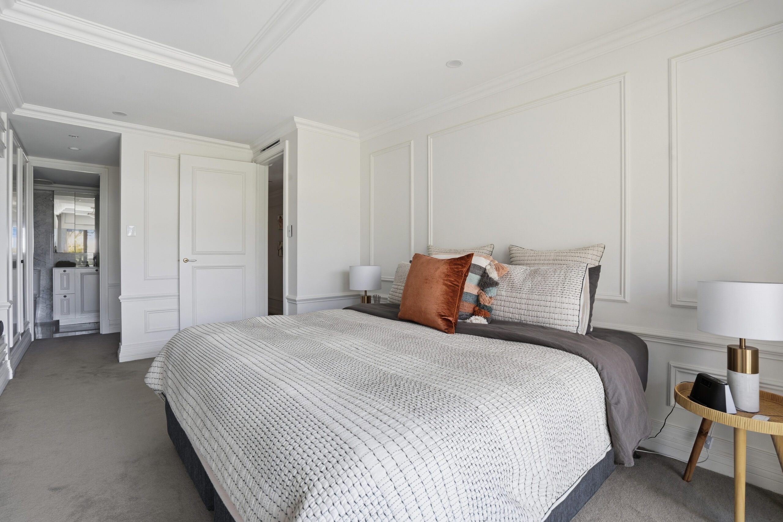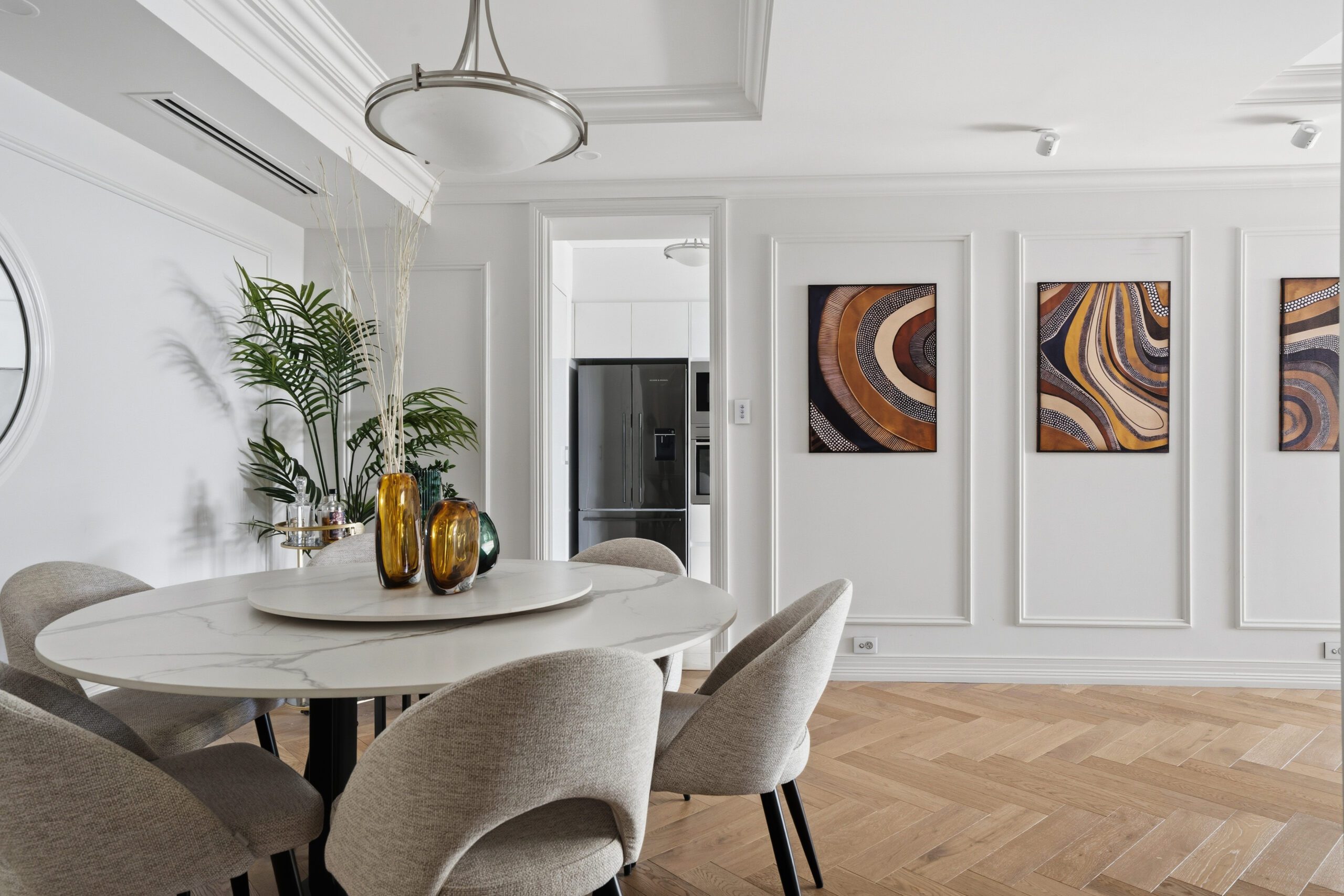 Features include stunning herringbone Oak flooring, Carrera Marble finished bathrooms, Travertine stone flooring in the kitchen, stone benchtops, deluxe cabinet work throughout, European appliances, ceramic tiled balcony, plus so much more. All virtually as-new.