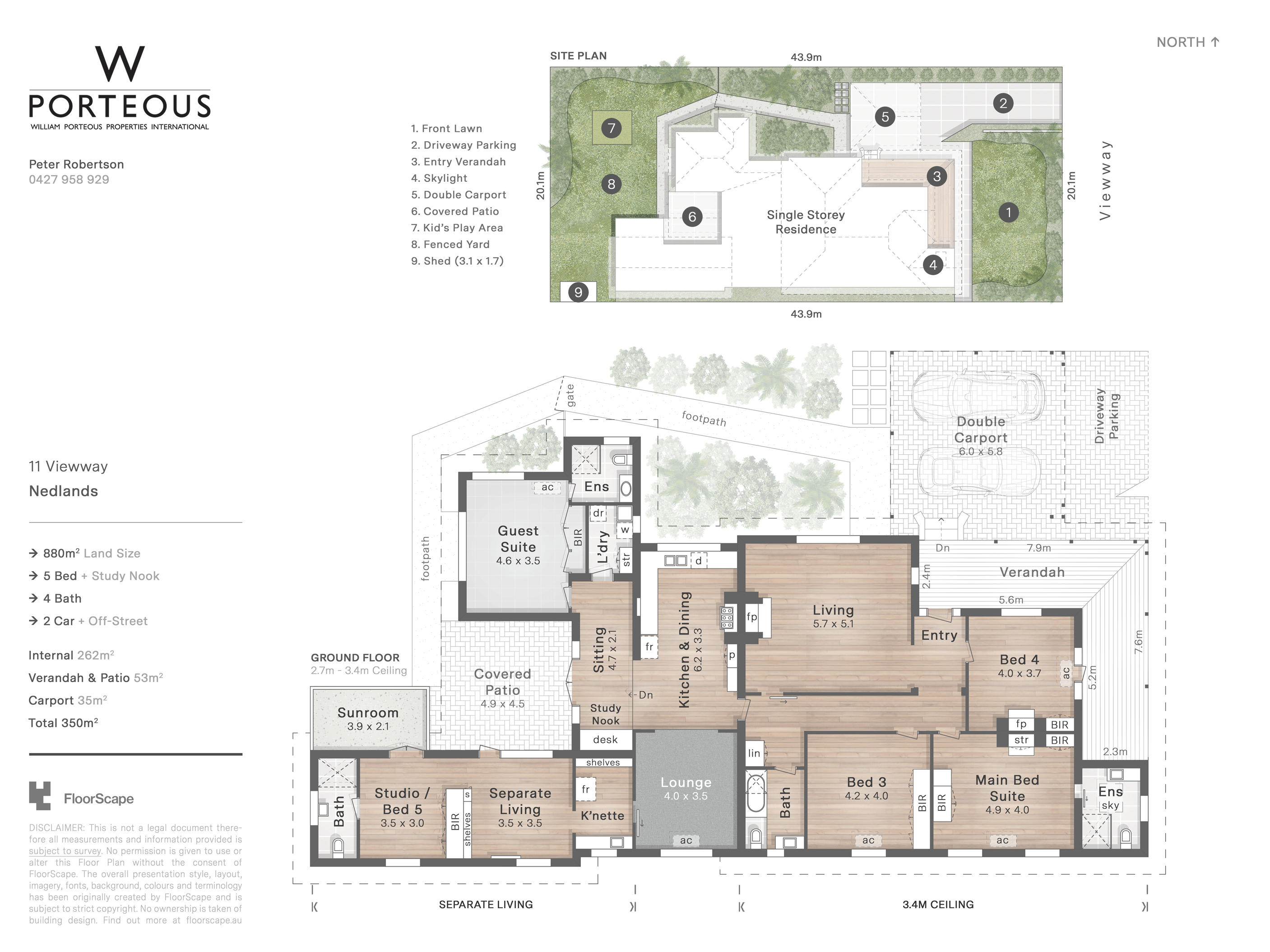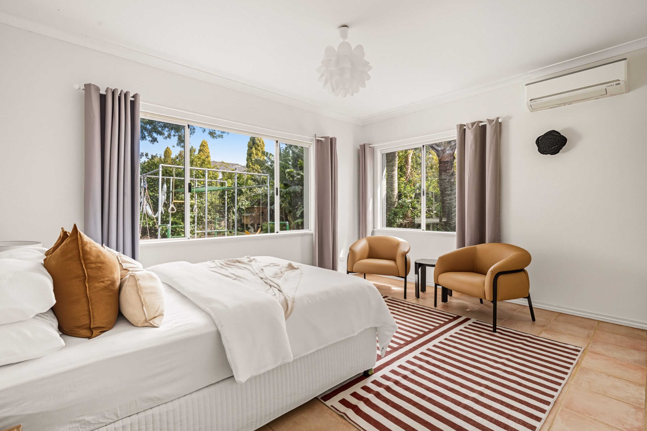 At the rear of the home, French doors frame the study nook, alongside a large laundry and fourth bedroom with built-in robes, air-conditioning, and a monochrome ensuite. Outside, a sheltered alfresco zone leads to the gardens with a majestic old pepper tree, outdoor shower, chook run, and garden shed, with plenty of room to consider adding a pool (at the front or back). Down the side, a pathway lined with greenery leads to the double carport.
