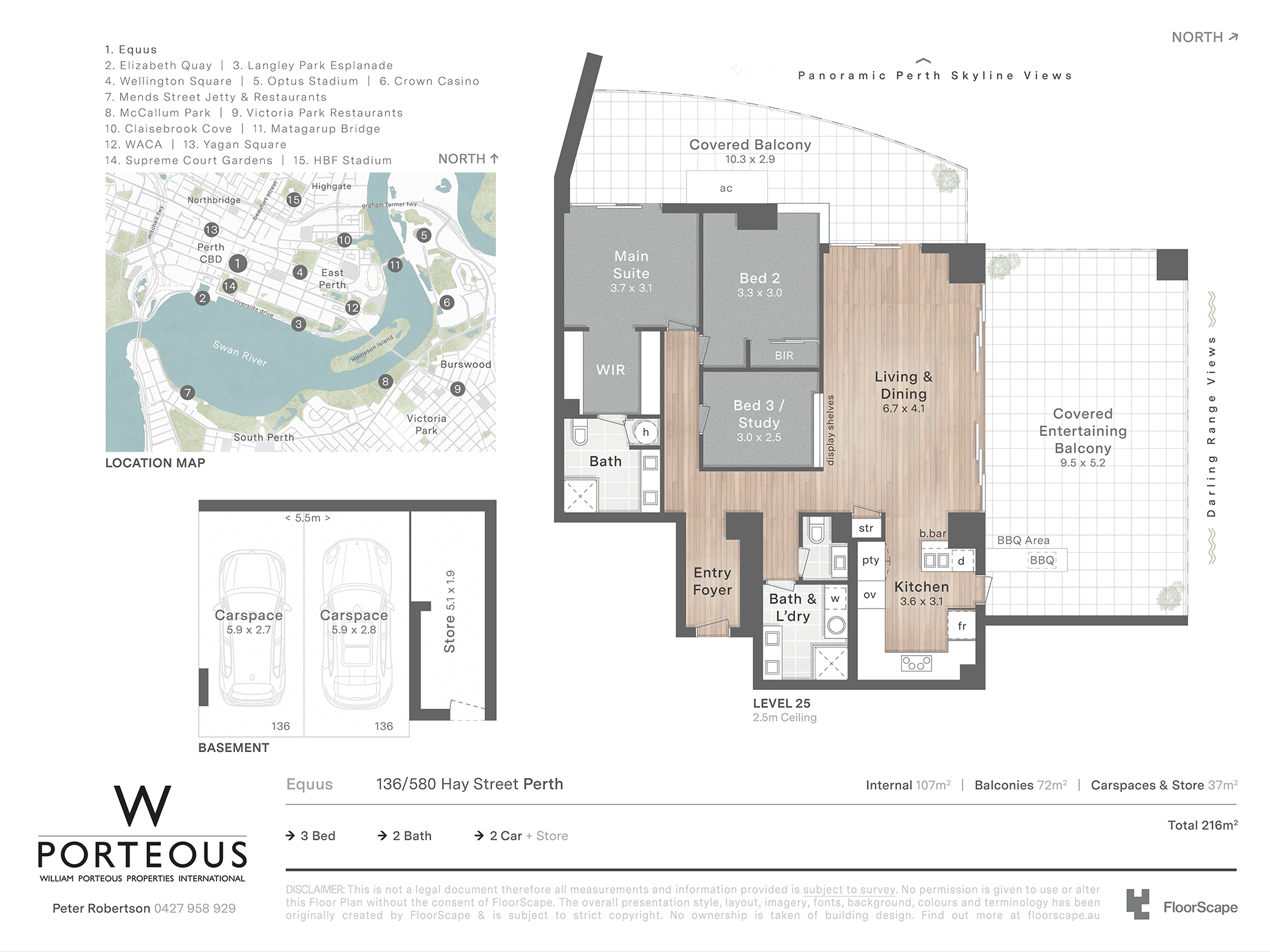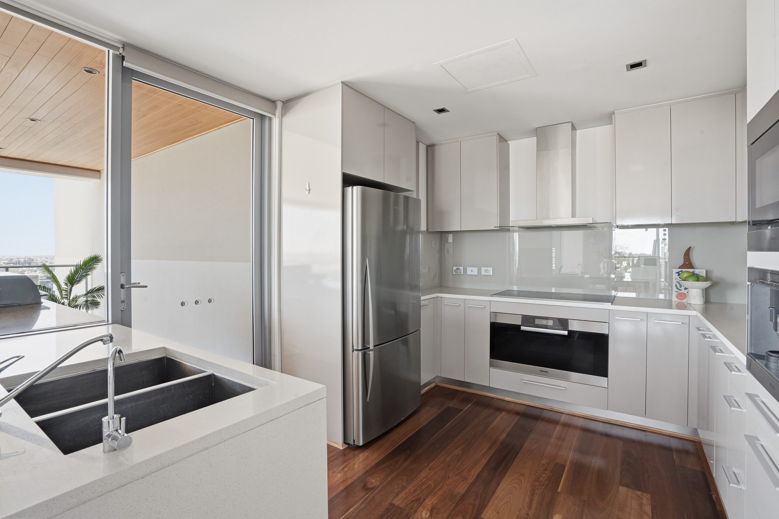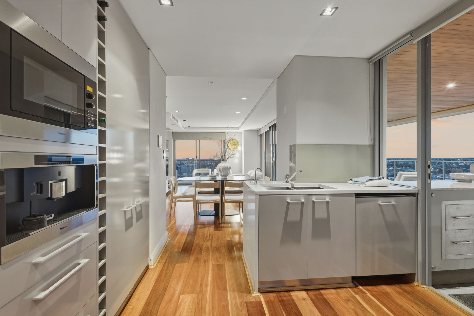 With a total area of 216sqm and offering 3 bedrooms, 2 bathrooms, plus a powder room, and two magnificent balconies to take in the sweeping skyline views. The finishes are luxurious, and the living spaces inside and out are impressive and highly functional. Positioned on the northern side of the building, the main balcony is huge, sheltered year-round, and enjoys sweeping panoramic views across the city, up the river, and has the Perth Hills framed on the horizon. This is a view that is ever-changing through the seasons, and through the 24hr cycle of the day and night. This is truly the ultimate entertainer’s terrace, complete with a timber ceiling and built in barbecue. It is an amazing outdoor living space that connects perfectly to the internal open plan kitchen, lounge, and dining. The internal living also opens to another balcony and offers views back over more of the city and up to Kings Park. The combination of the indoor/outdoor living is one of the key elements that sets this apartment apart from all the rest. We encourage you to come and experience it in person to really appreciate just how exceptional it is.