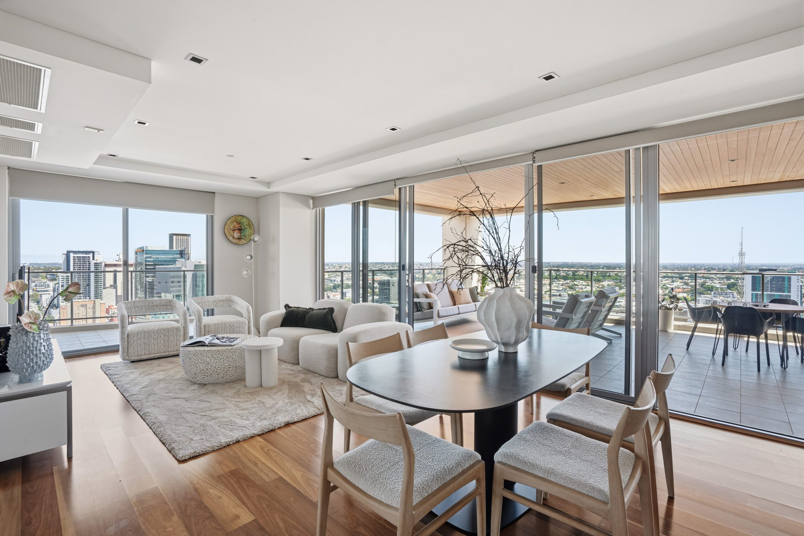 Welcome to the 25th floor – this is the epitome of sky-high luxury living. Rising above Barrack and Hay Streets, located within the esteemed Equus Apartments complex, with an unrivalled inner-city lifestyle on offer, every detail has been considered to the highest standard in this prestigious sub-penthouse.