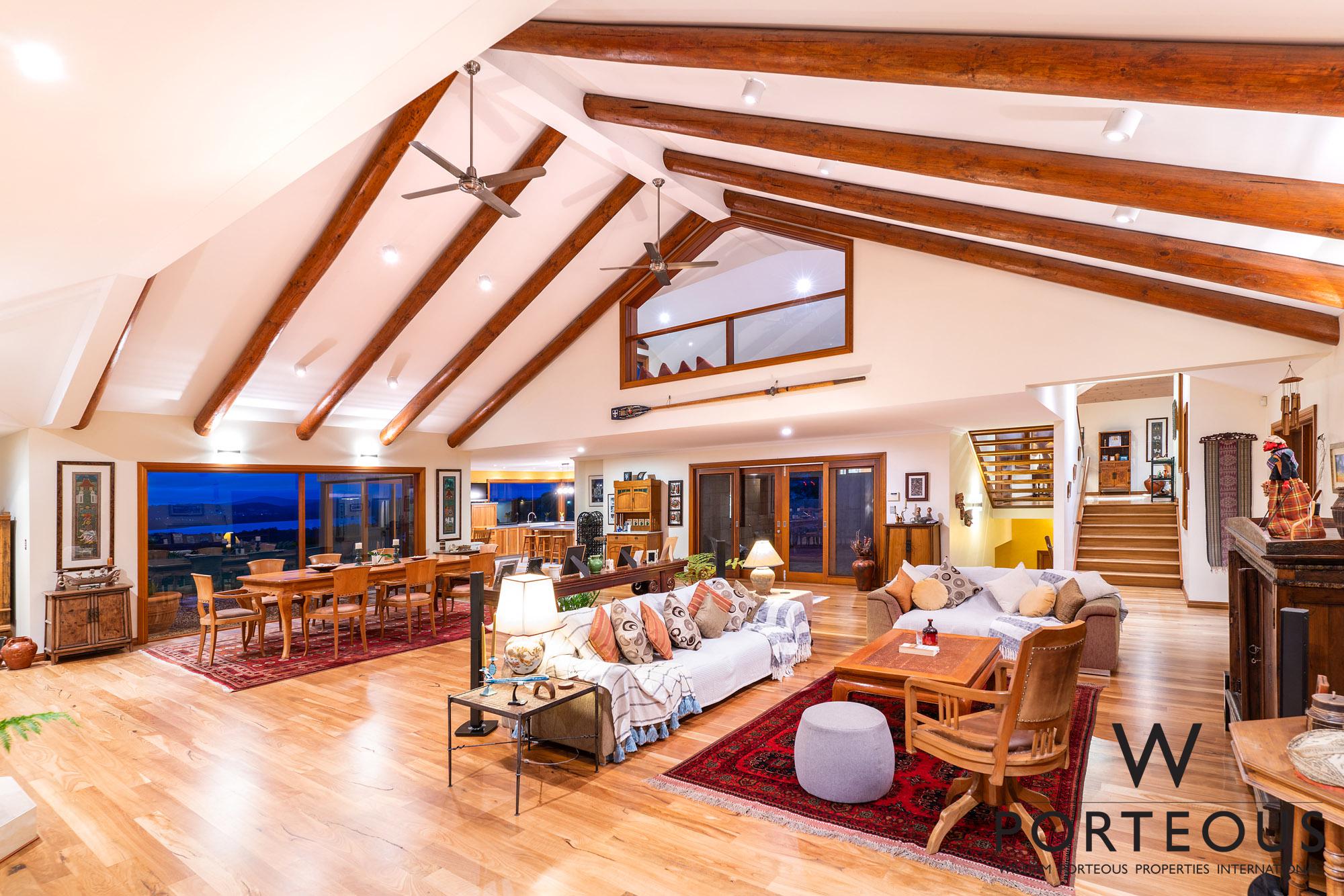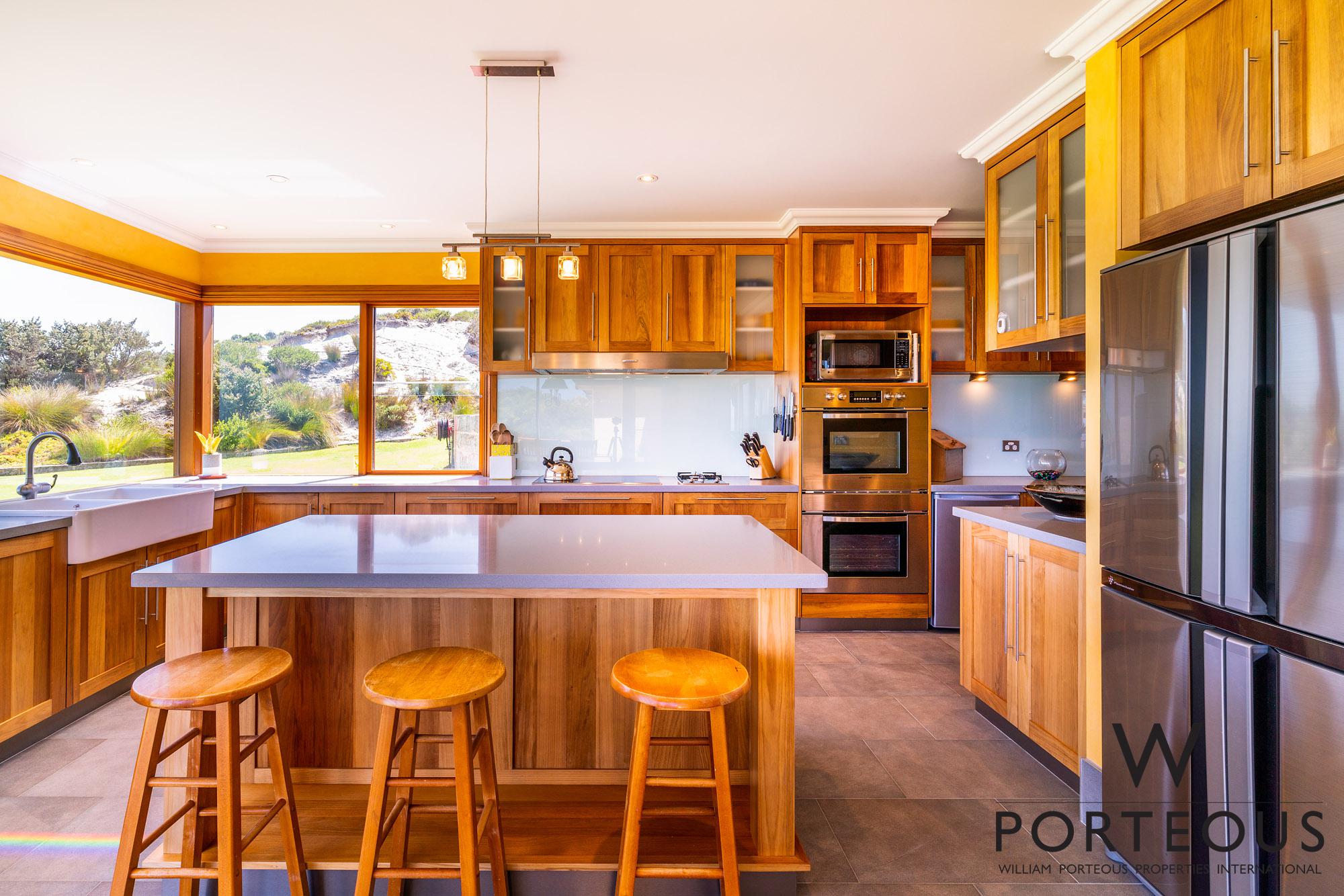 The kitchen is a delight, with premium finishes, top-end appliances that include an induction cooktop as well as gas burners, so you have the best of both worlds. Combined with the double ovens, and dishwasher, a scullery/food preparation area, walk-in pantry, and double butler sinks, you will want for nothing. With more of those amazing views, it’s a joyous space in which to make everything from a simple sandwich to an eight-course banquet.