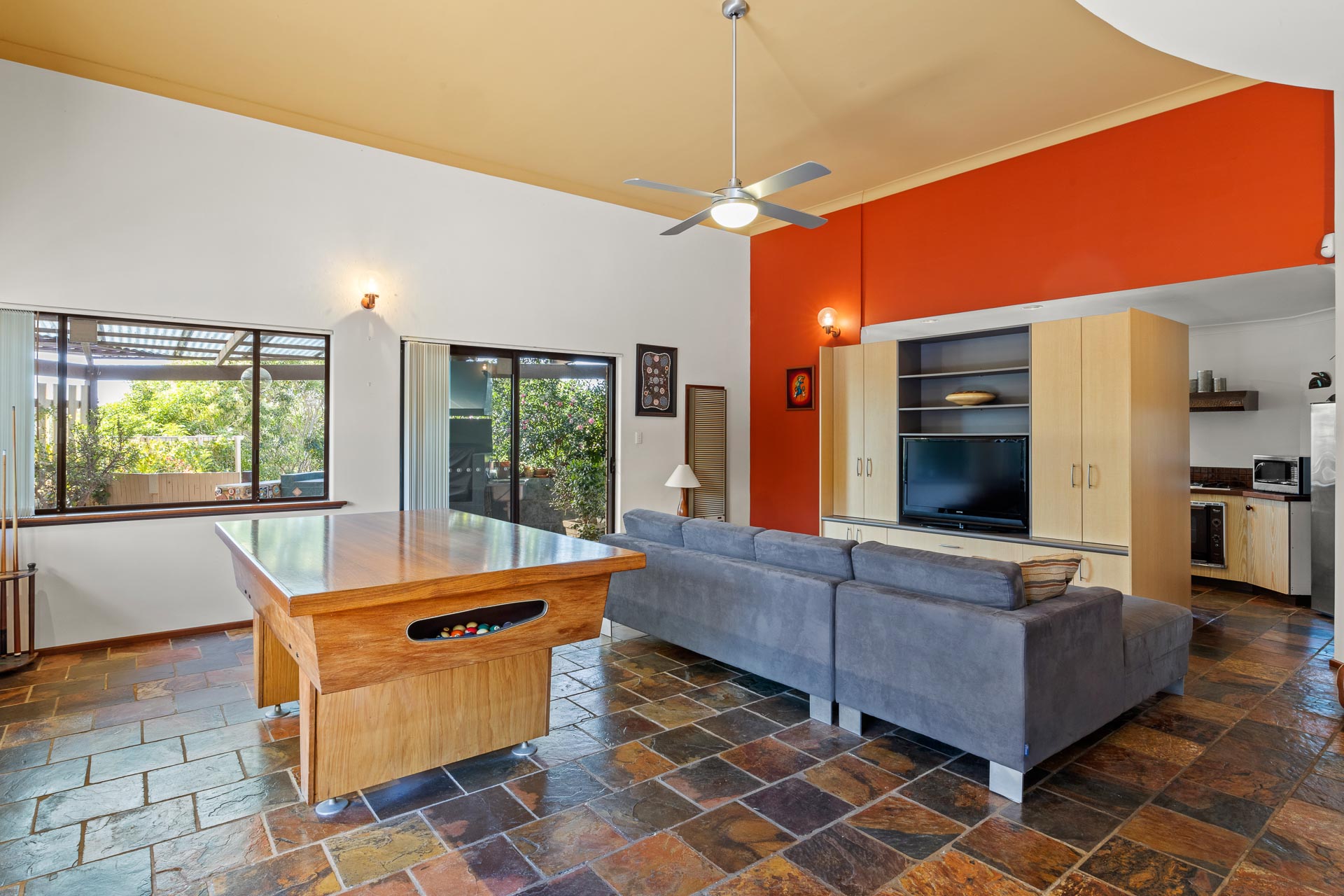 Featuring generous, multi levelled raked ceilings, this home’s unique design and floor plan provides both a sense of interconnectedness while providing separate living and accommodation zones.