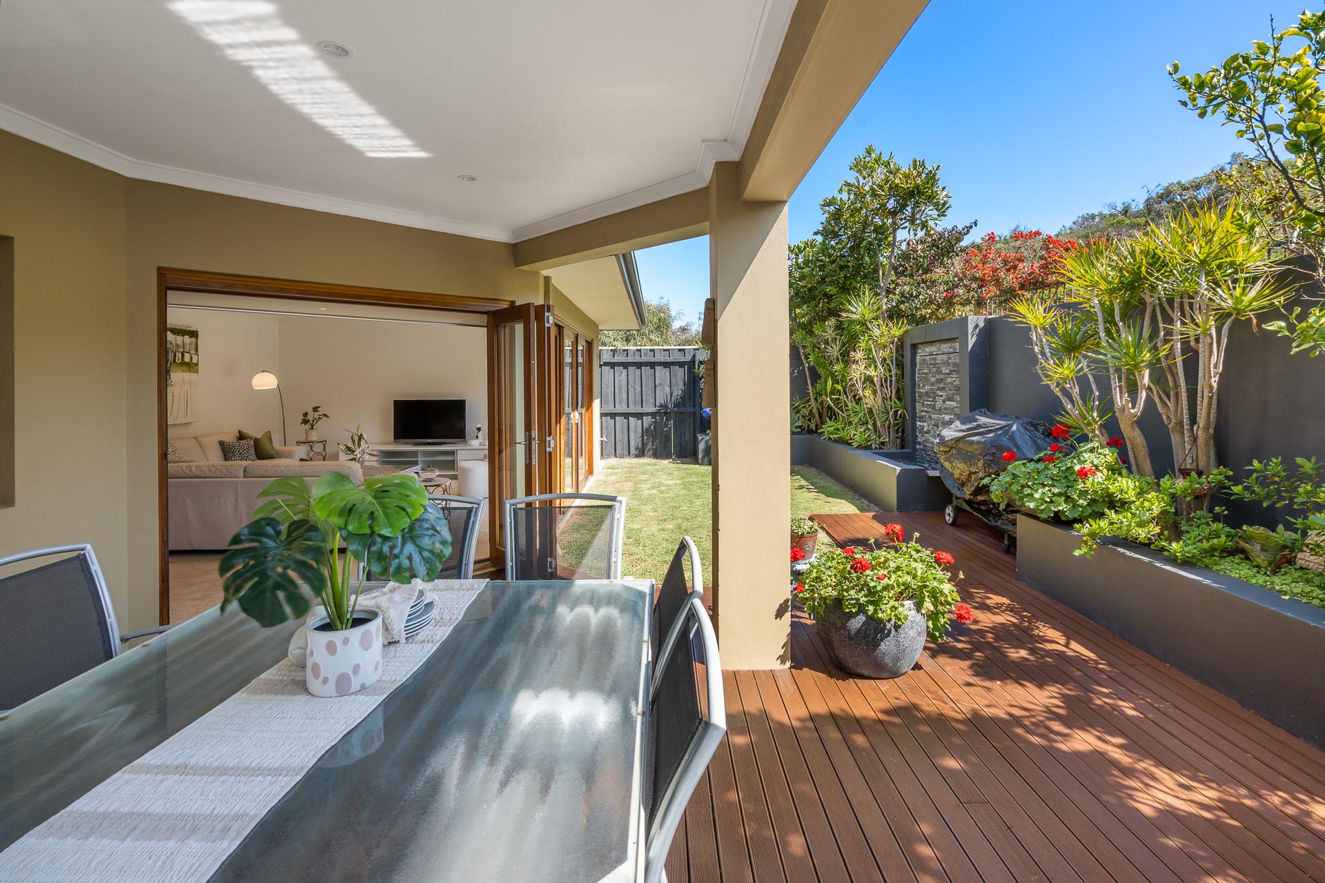 Outside, secluded by a private wall, the landscaped garden beckons, complete with reticulated planter boxes, a stone water feature and a section of lawn – an easy-care space you can lock and leave when holidays call.