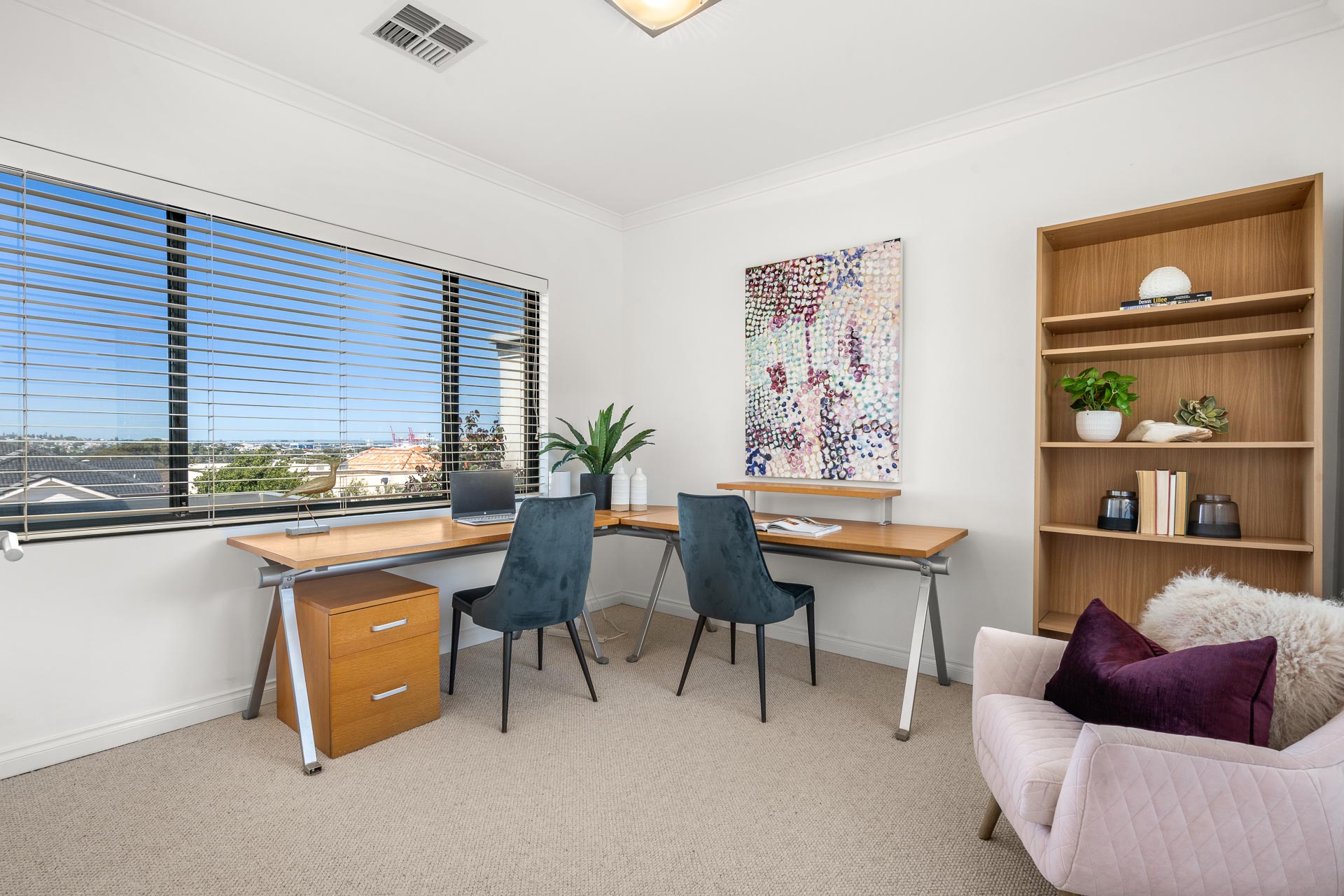 Nestled between the greenery of Monument Hill Park and the vast expanses of the Swan River and the Indian Ocean, this elevated, 3 bedroom, plus study/4th bedroom, 2.5 bathroom home, with a double undercroft garage, encapsulates the dream of low-maintenance living in an idyllic, scenic location. Perched on an elevated 421sqm block, with fantastic views of Fremantle Harbour, the ocean and the river. This is an absolute high point. Behind you is Monument Hill Park. The back boundary is walled and fenced for absolute peace of mind, security and privacy.