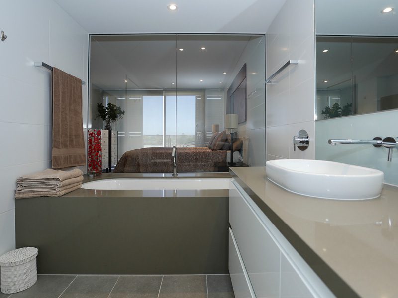 The master bedroom suite is generous, with built in robes and a large ensuite that offers you twin vanity, separate bath and shower and W.C. This bedroom suite faces the city and has access onto the main balcony……Waking up like this each morning will have you feeling like you are forever on holidays.