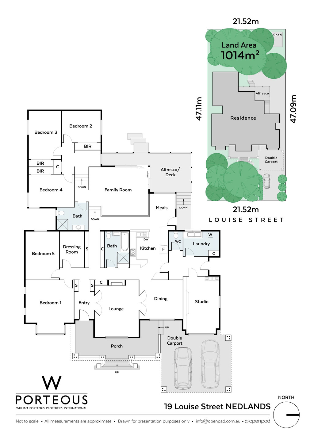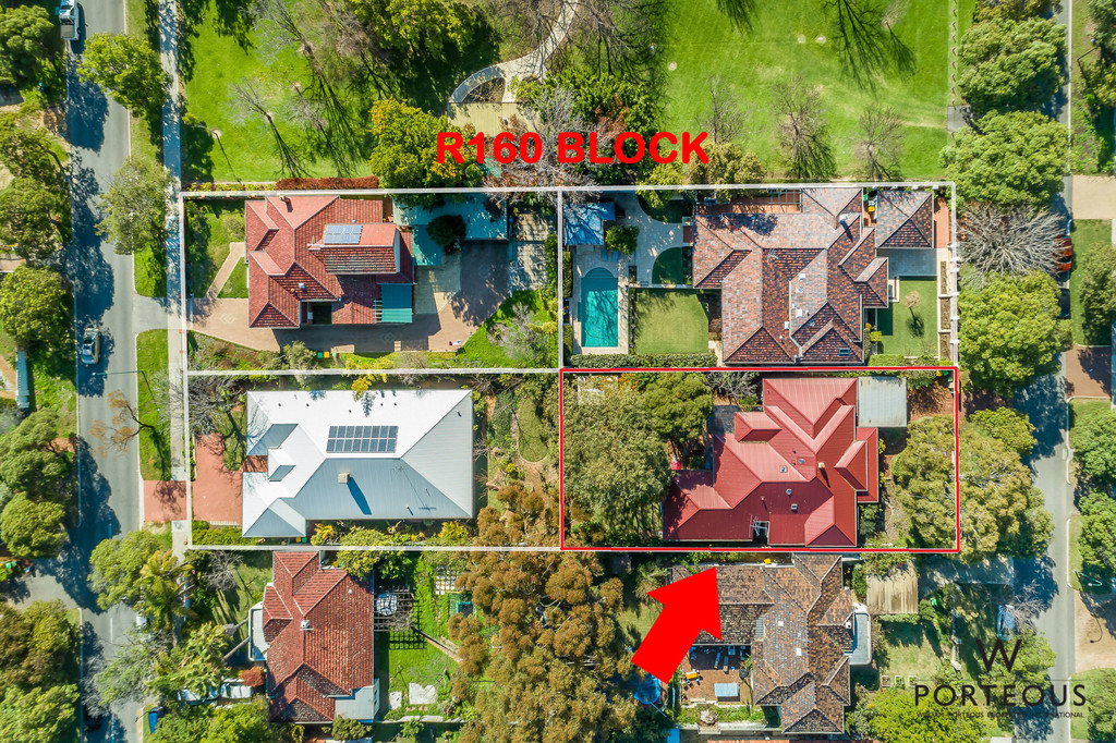 Lot dimensions are 1013sqm with 21.5m street frontage x 47.1m depth. With a plot ratio of 2, you can develop approx. 2,026sqm of apartment area and go as high as 5 stories, based on City of Nedlands Guideline Documents.