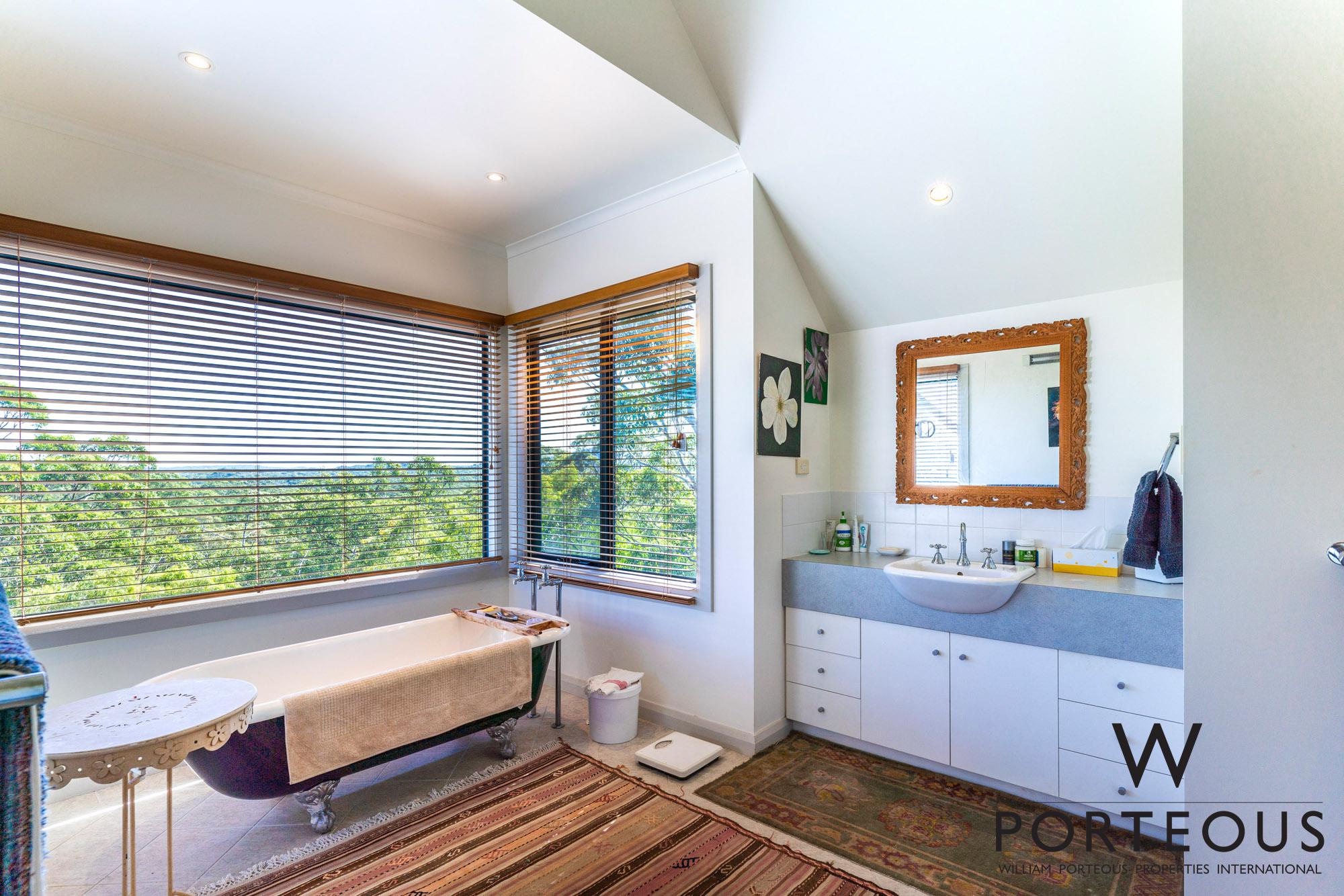 The enchantment begins with the drive in. You come through the front gate off Nullaki Drive, and proceed down a forested path, with the forest canopy interlinking overhead. The property is undulating and the path meanders between the large boles, delighting the senses at every turn.