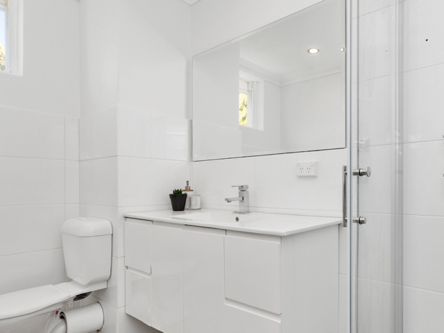 Travel up the east staircase to the second floor where you will find a large main bedroom, opening onto a north-facing balcony. The second bedroom is still a good size and would make either a good bedroom or a study. A refreshed bathroom services these two rooms with a shower, vanity and W.C