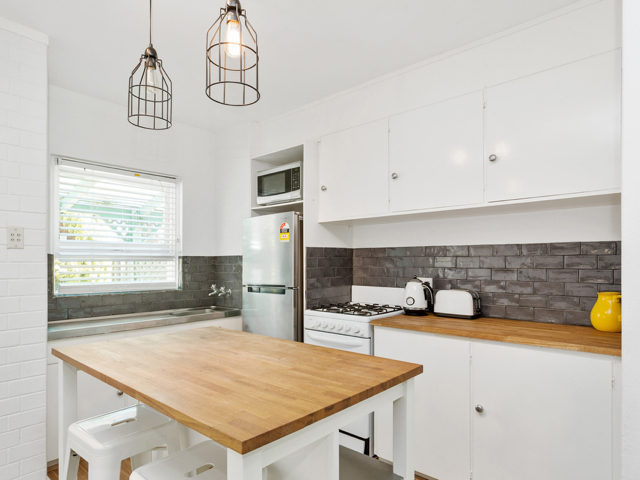 With a retro vibe that’s a bit Loft meets Warehouse feel, a north-facing aspect, a courtyard and a white modern colour palette, you can’t go wrong. The ground floor is a big open plan living and dining zone, an open plan from the kitchen that is a modernised and generous space in one corner.