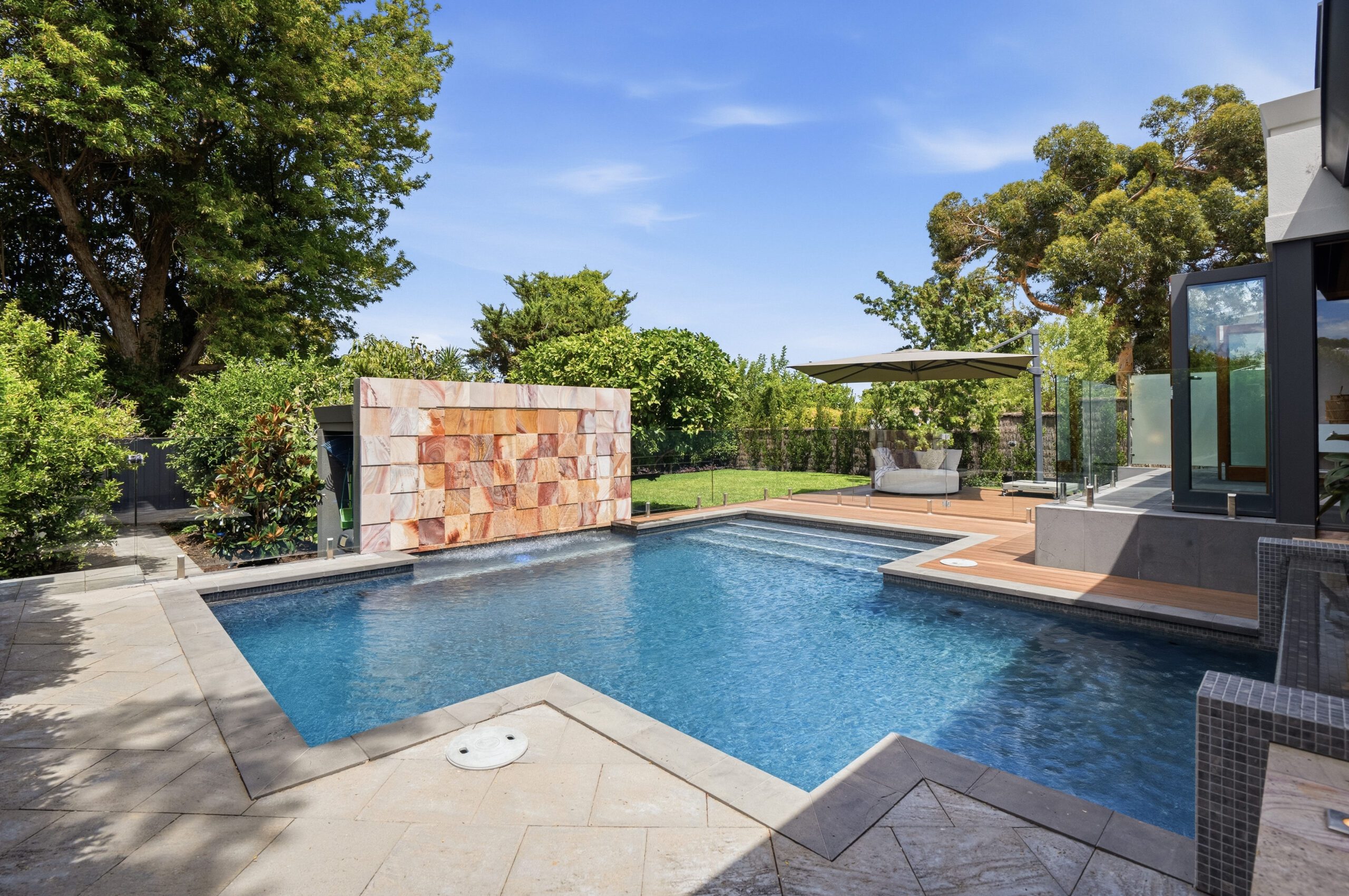 The property has been fully relandscaped front and back. The front gardens frame the home and complement its appealing streetscape, making for a welcoming entry. The rear gardens feature tall perimeter plantings that provide screening and excellent privacy. A spacious lush level green lawn is balanced with a collection of mature fruit trees. The rear decking wraps around the fully refurbished and upgraded heated pool, complete with cascading water feature. A full outside bathroom adds fantastic convenience. This is an outdoor entertaining and living zone your whole family will love.