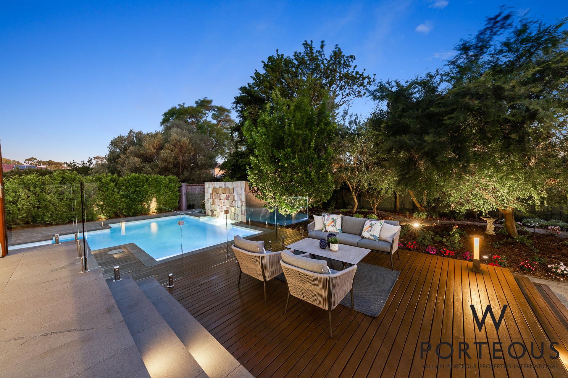 The heated pool abuts the house with a cascading water feature and a timber deck connects the pool to the alfresco. Highlights of Kimberley stone feature in the pool area. A full outside bathroom services this area.