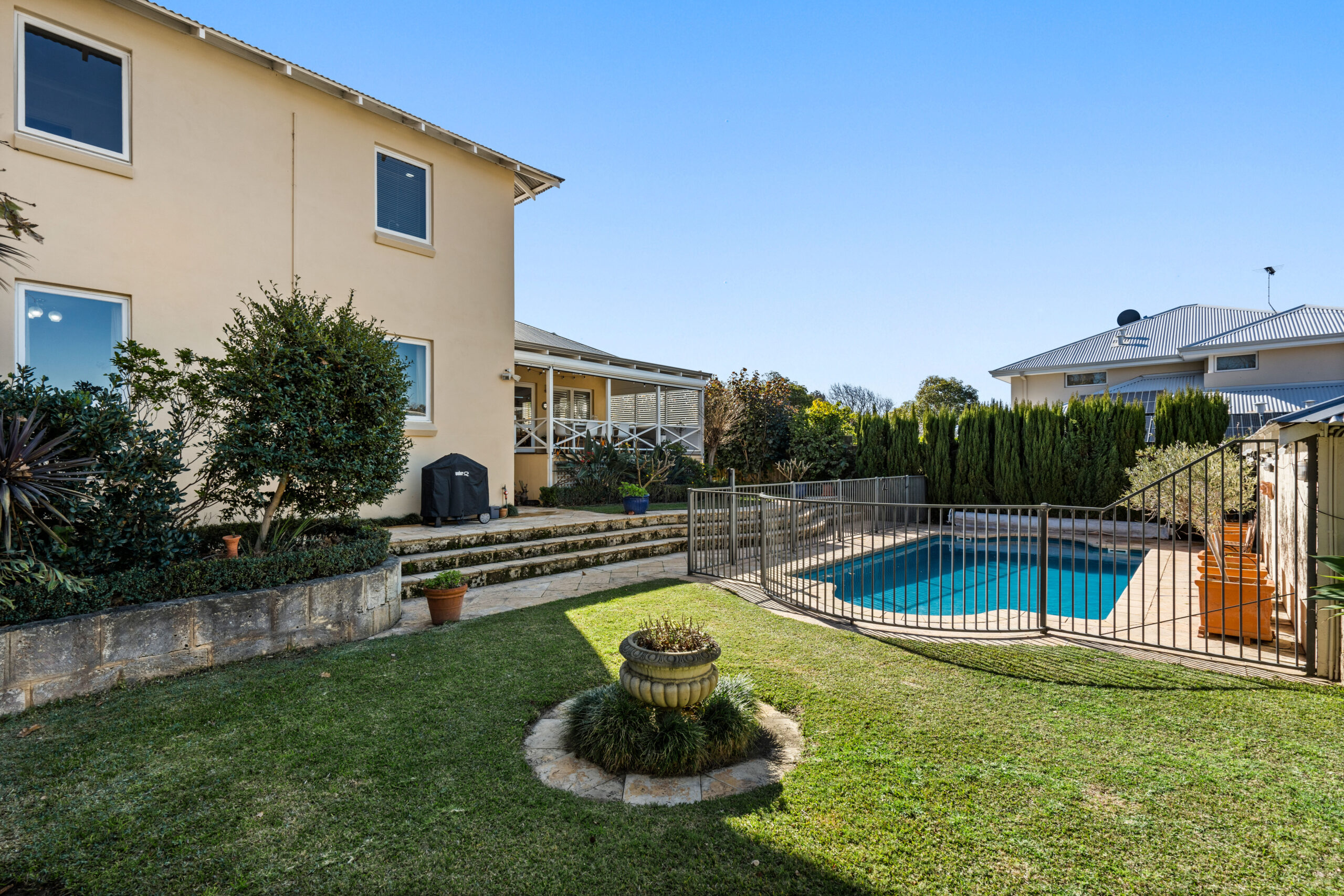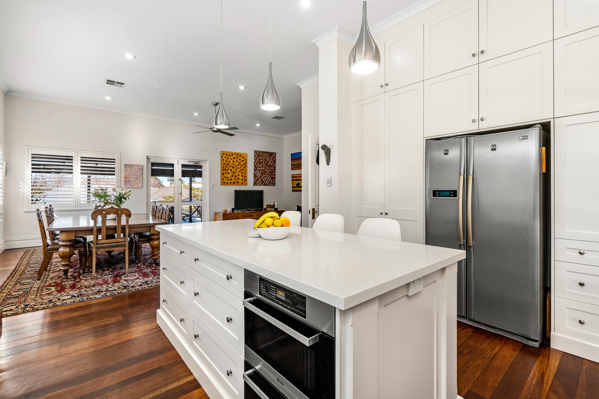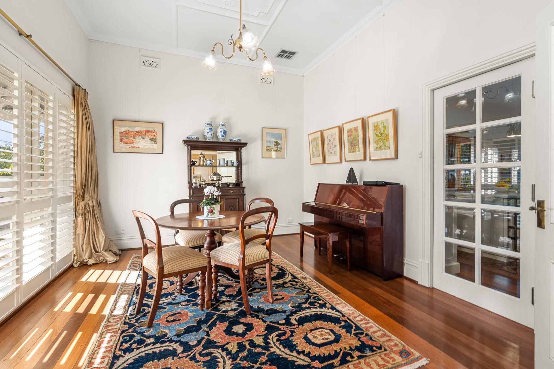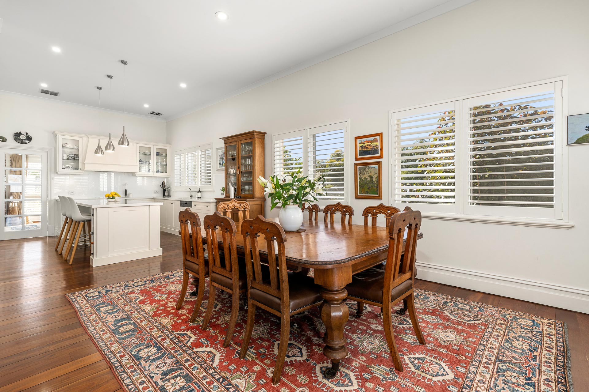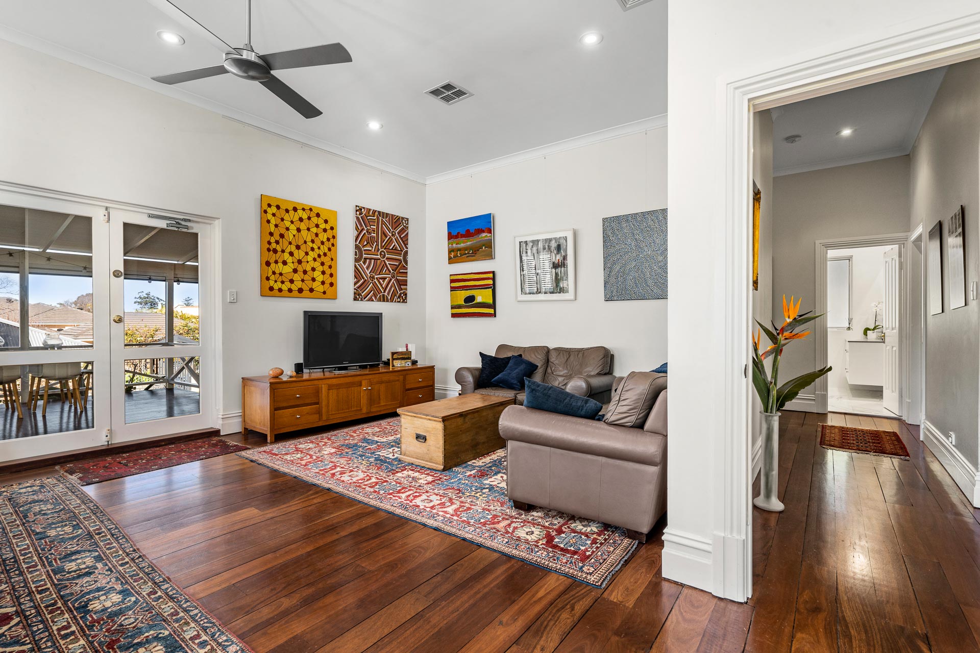 Upon arrival, you are greeted by an enchanting front lawn and fully fenced gardens curated by Urban Landscapes, stepping up to a broad veranda. This has been the scene of many a garden party, cricket match and relaxed family gatherings.