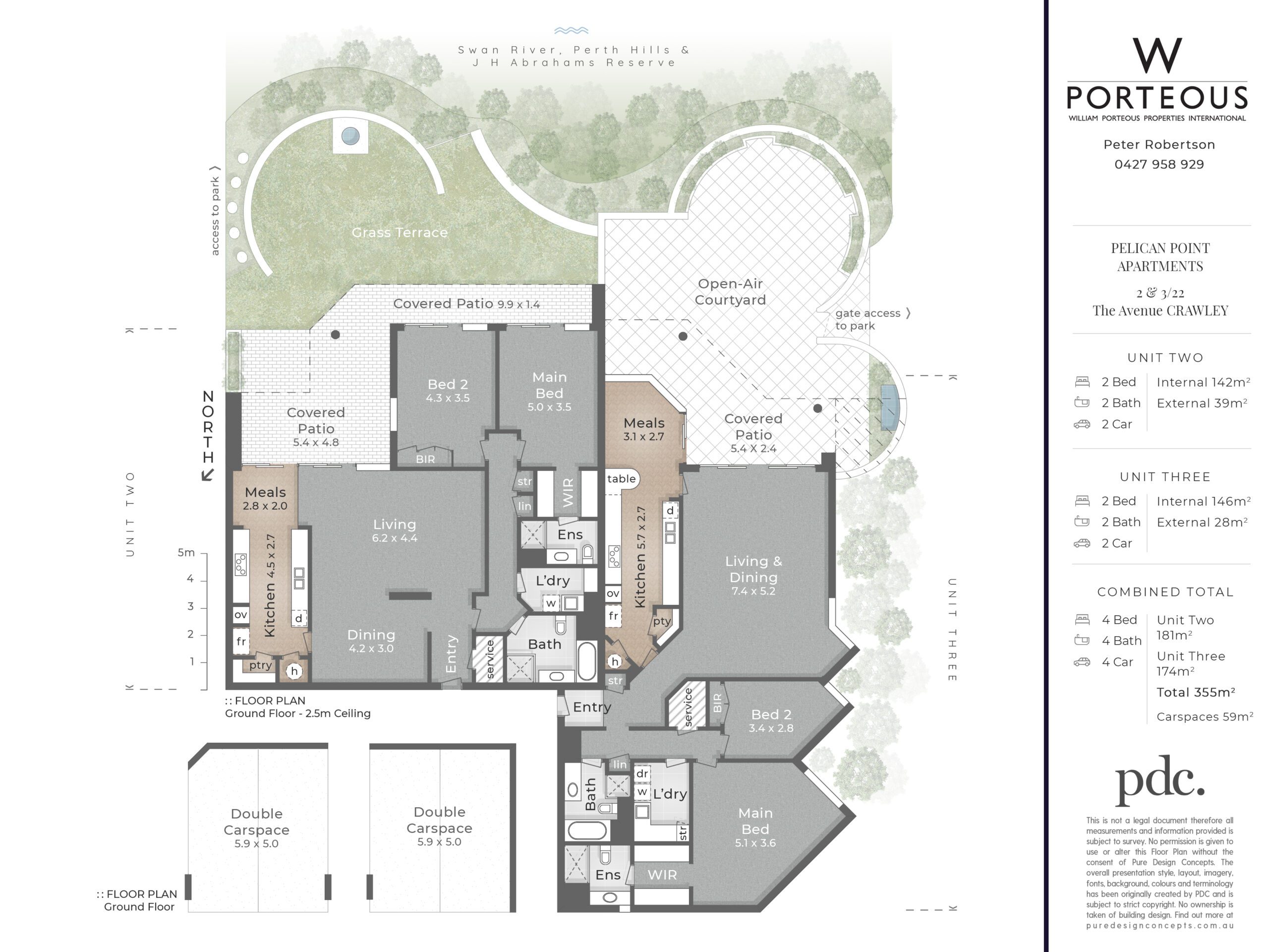 Seize an exceptionally rare opportunity to acquire one OR both of these amazing, ground floor, 2 bed, 2 bath, 2 car, East facing, riverfront apartments. There is potential to combine into a world-class riverfront 4 x 4 x 4. Positioned right on the foreshore with nothing between you and the river, the position and aspect is nothing short of AMAZING – Green lawns, shady trees, sparkling river, and boats on their moorings. That’s what you wake up to every day. In a pet-friendly complex, this is an extremely rare find.