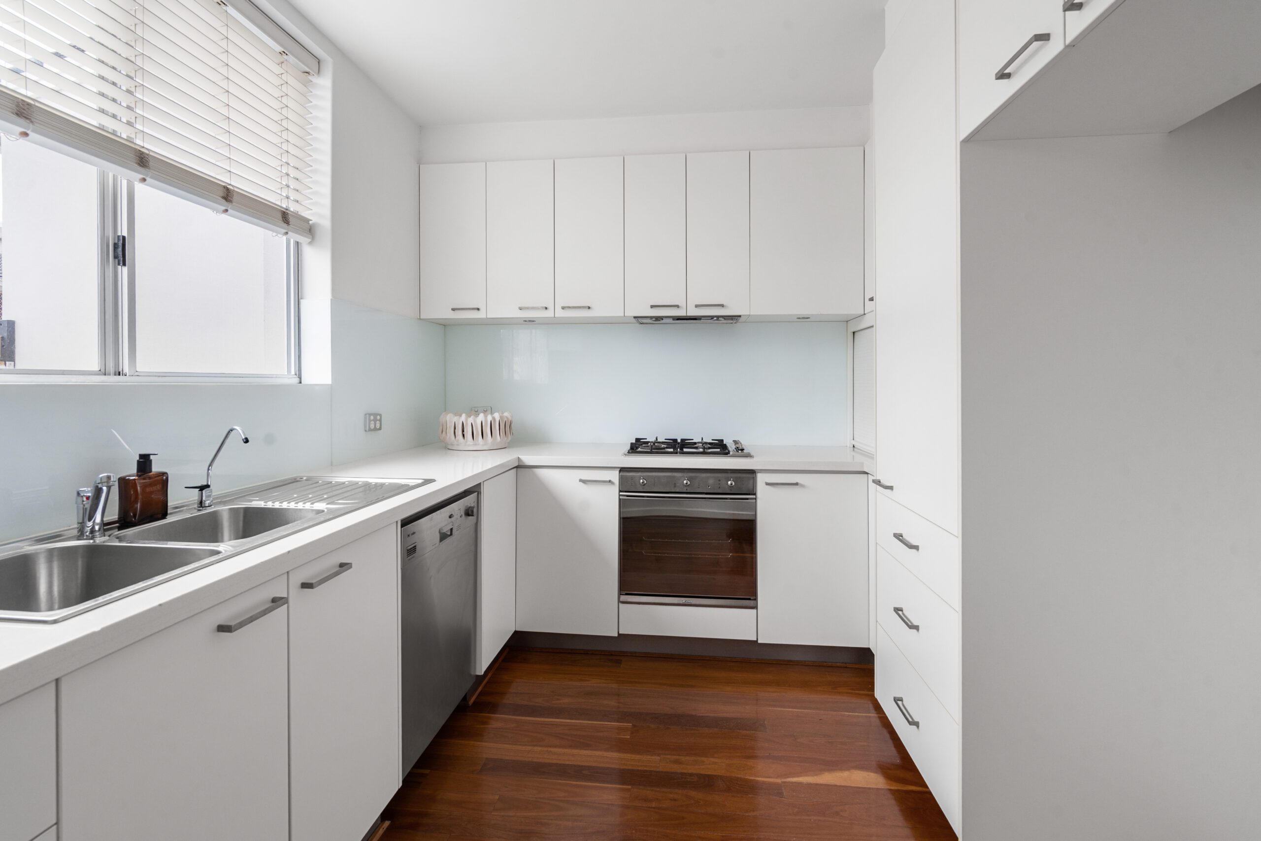 The kitchen has a gas cooktop, oven dishwasher and twin sinks. It is fresh and in immaculate condition with lots of natural light and plenty of storage.