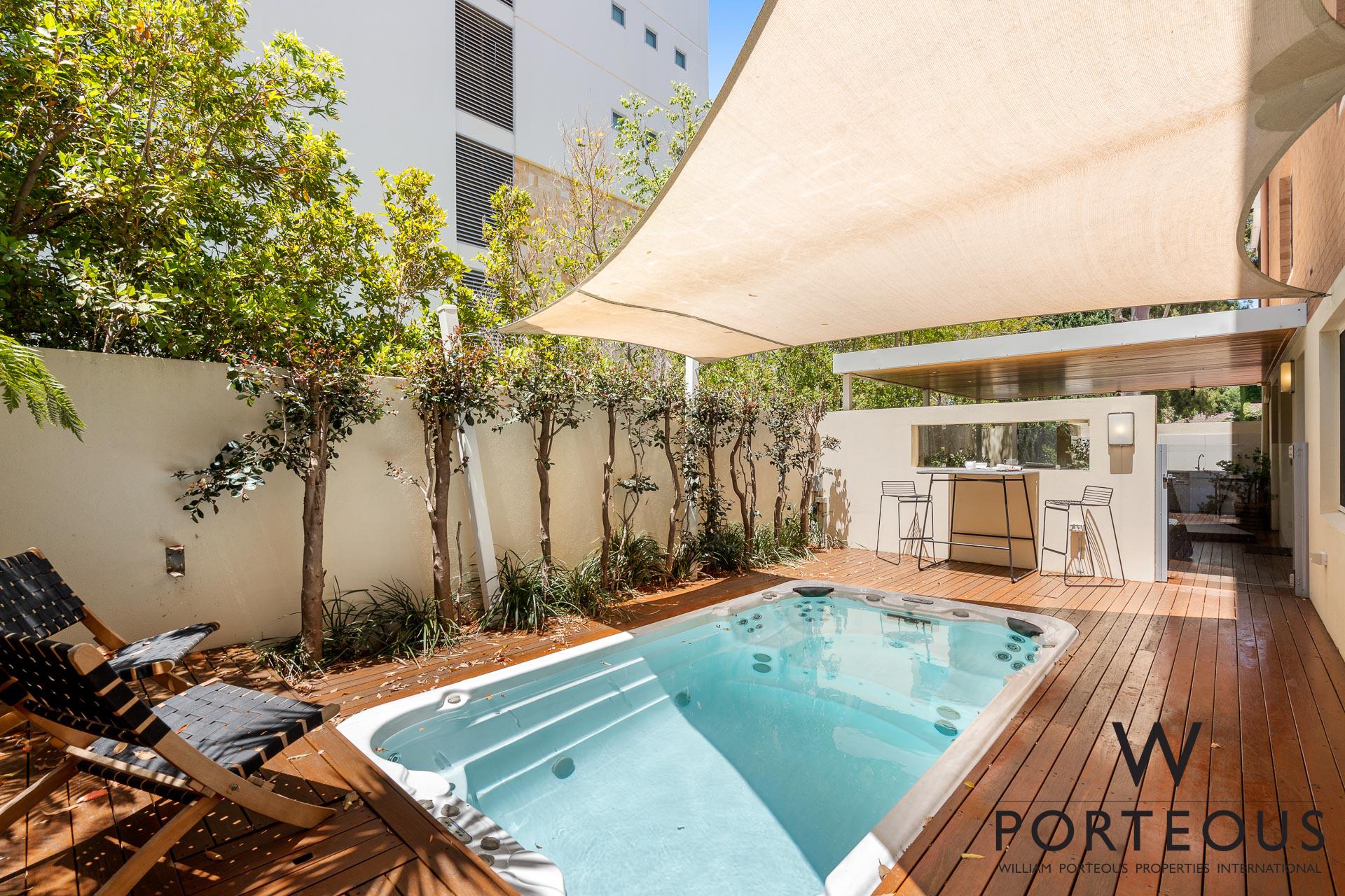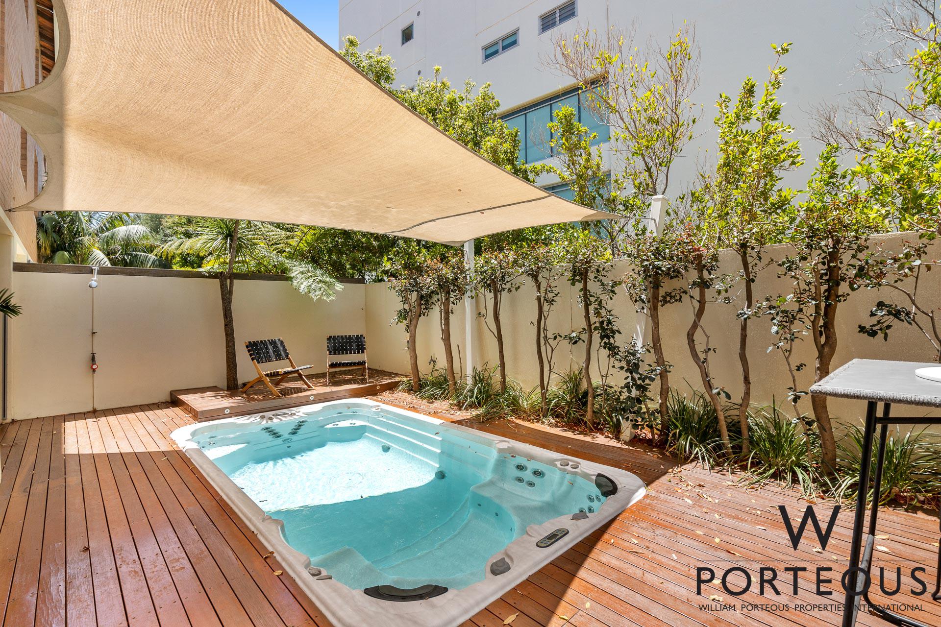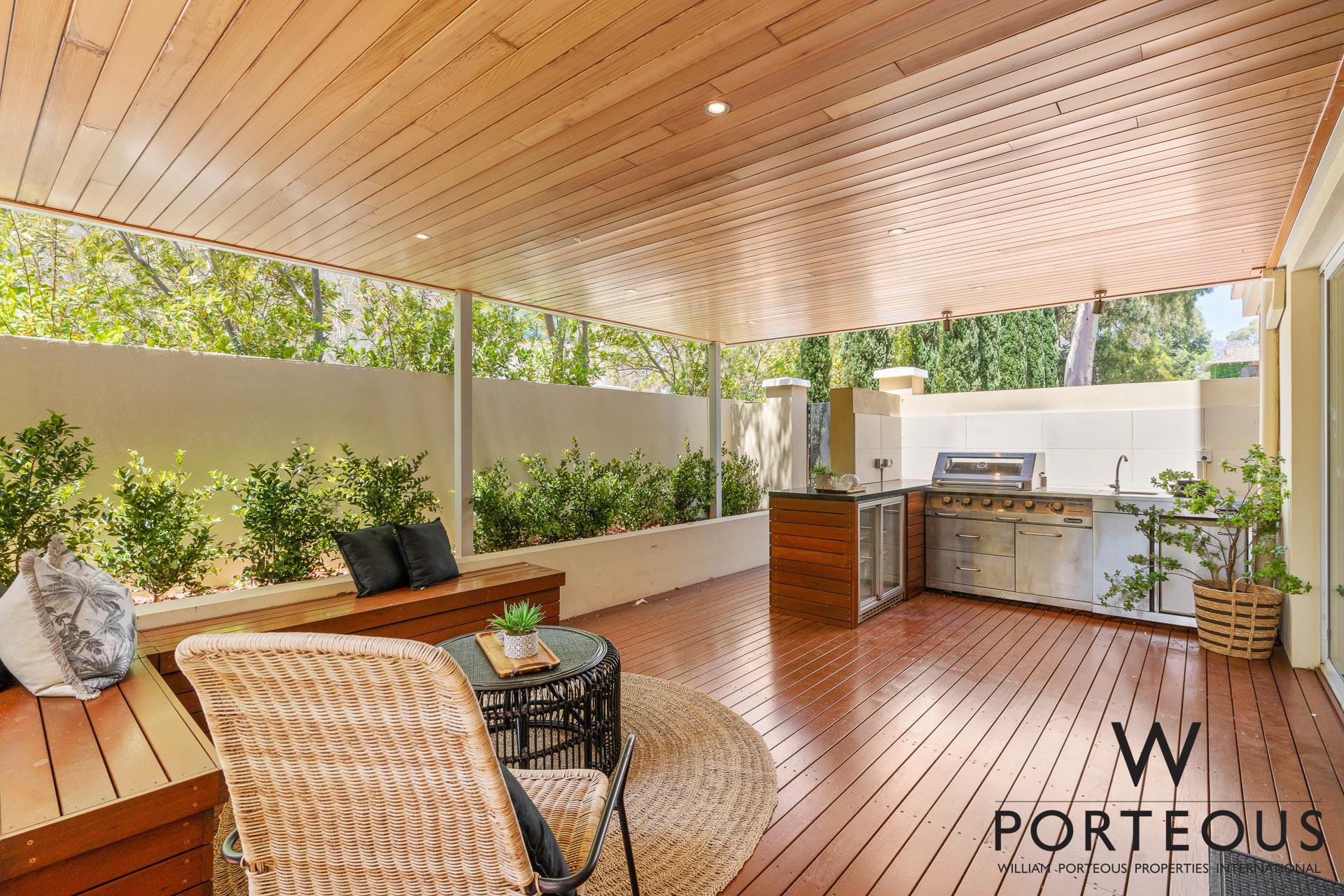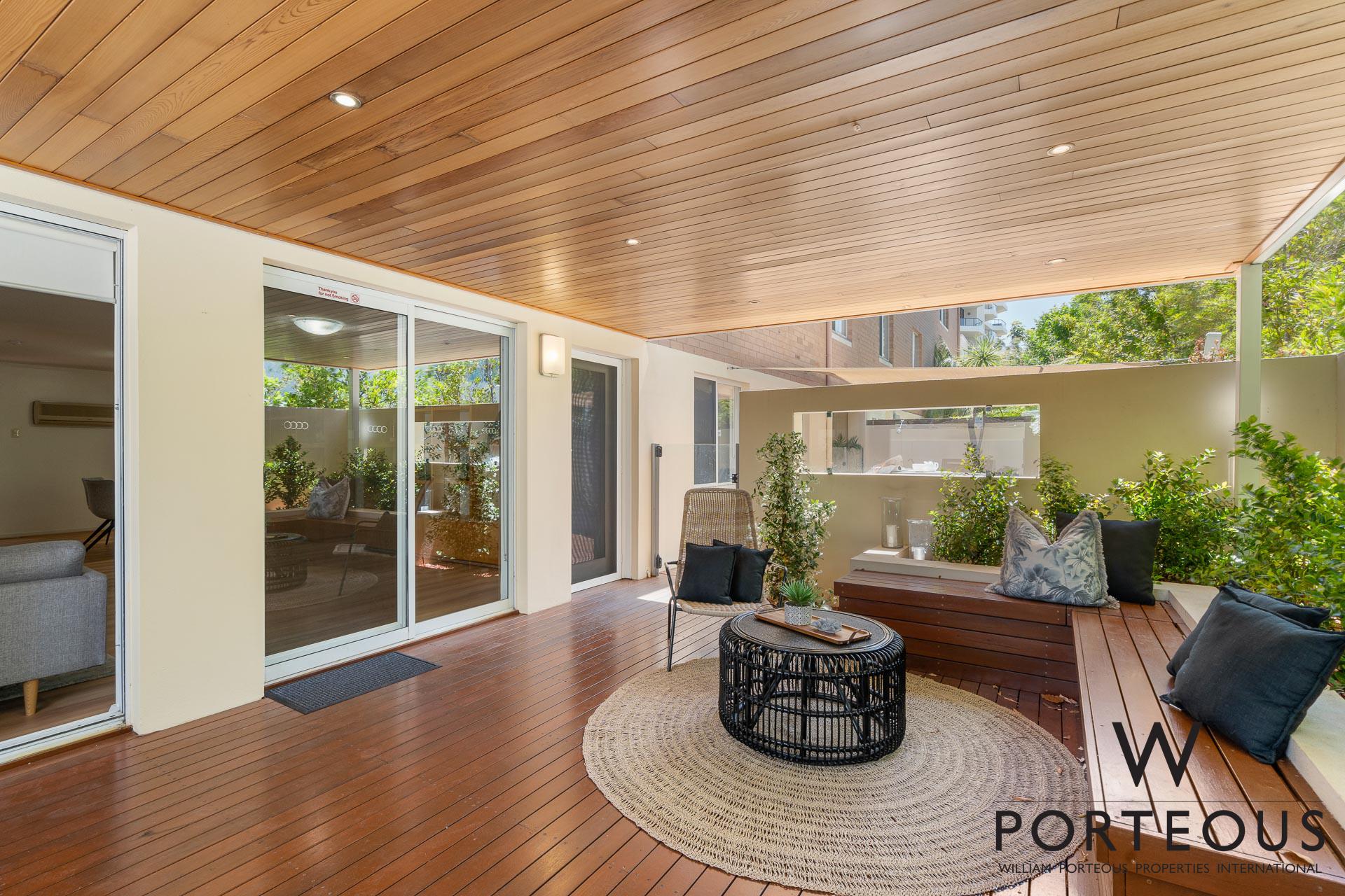 Being on the ground floor has a lot of advantages. In this apartment you have three significant courtyards as part of your home. An entry from the street comes in through a secure front gate in the high perimeter wall, into the main patio and outdoor living area. This is under the main roof, with timber deck flooring, cedar lined ceiling, a built-in BBQ and bench to one side, with perimeter garden beds. There is ample room for an outdoor lounge and dining setting.