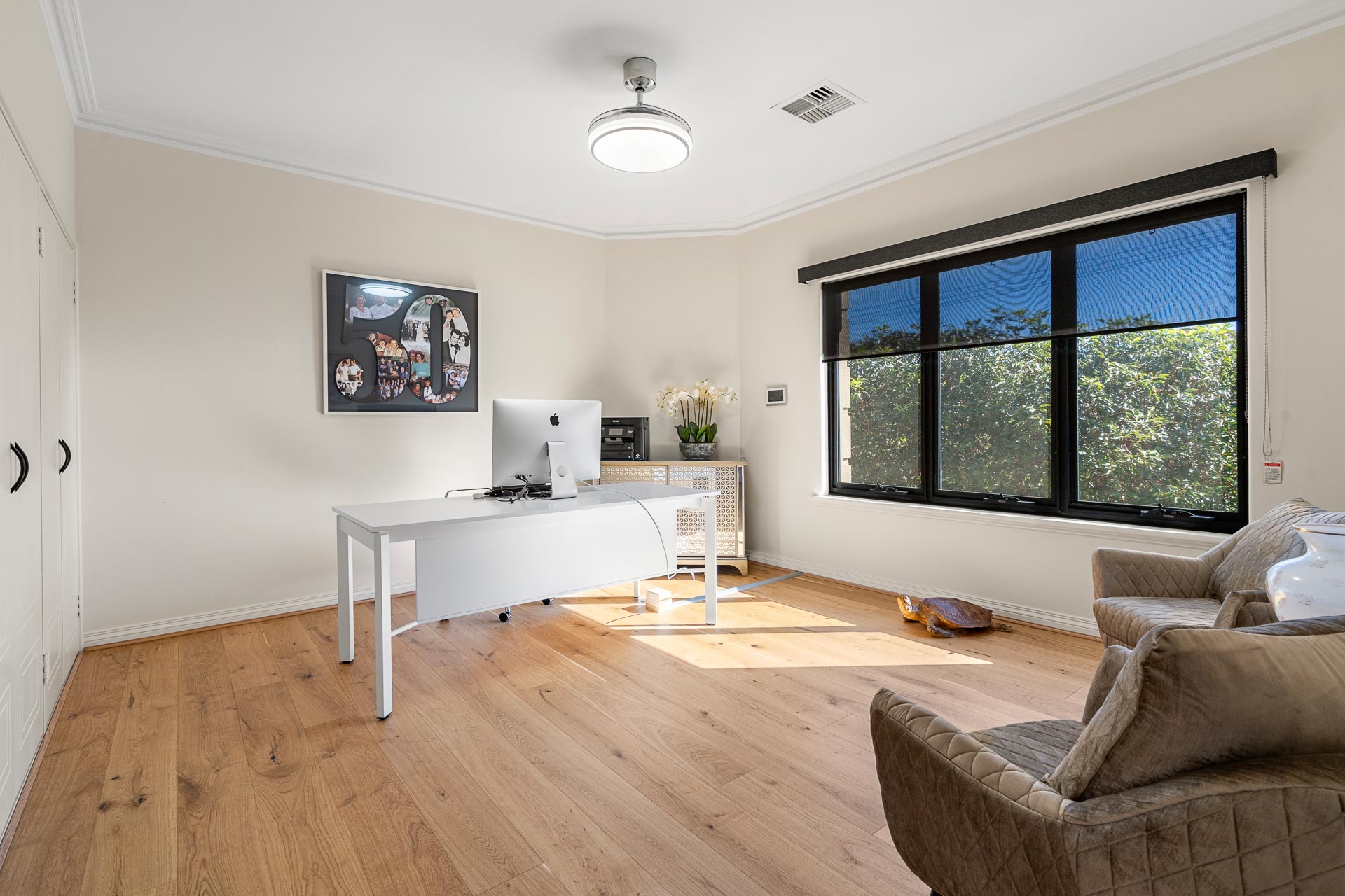Bordered by secure fencing on all sides and surrounded by fully reticulated manicured gardens both front and back, there’s plenty of room for a pool and a well tended vegetable patch for culinary enthusiasts.