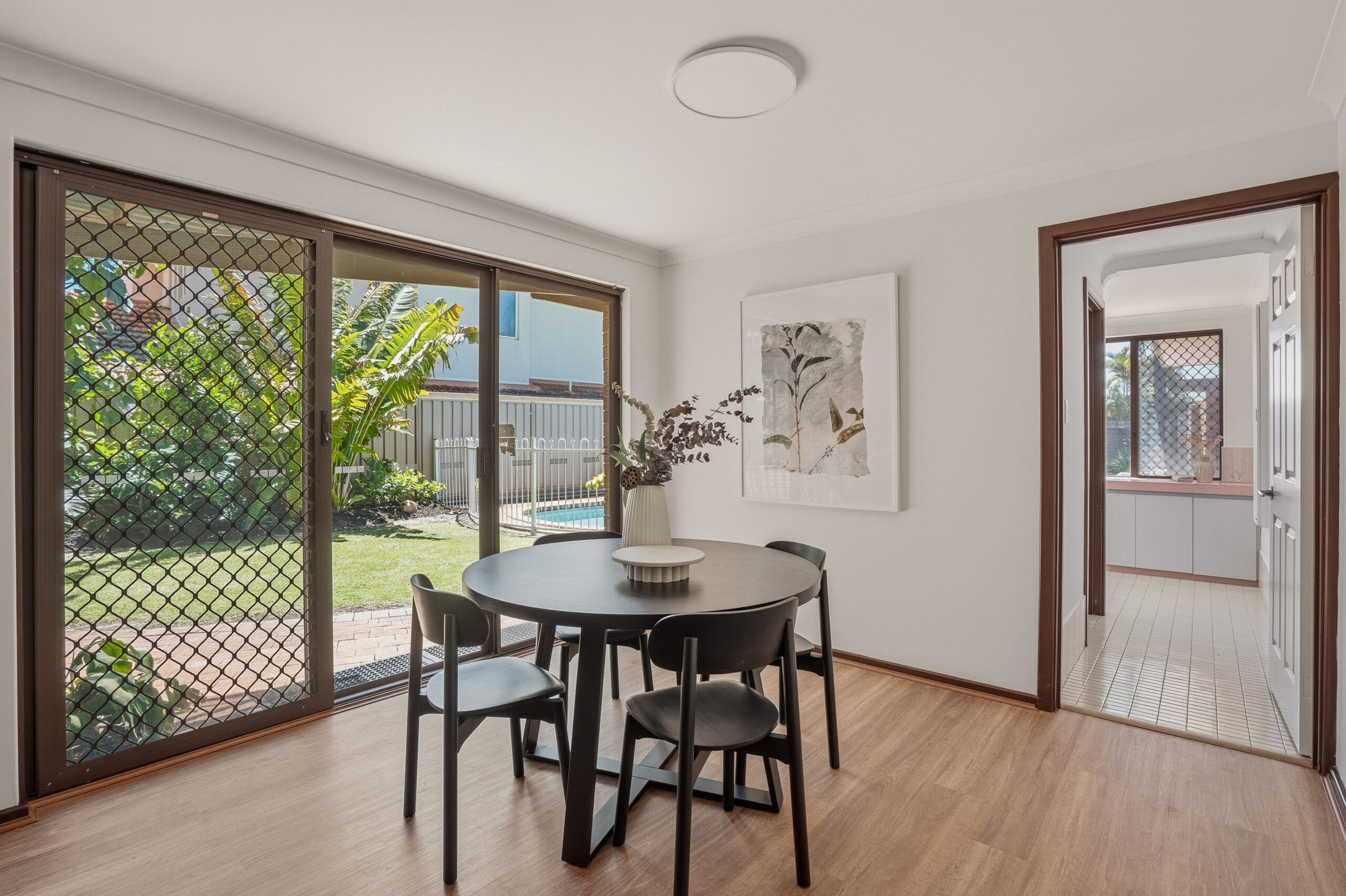 At the heart of it all, natural northern light pours through to the kitchen, dining and meals area creating a bright, homely hub for family gatherings, with the option to spill outdoors to the poolside alfresco.