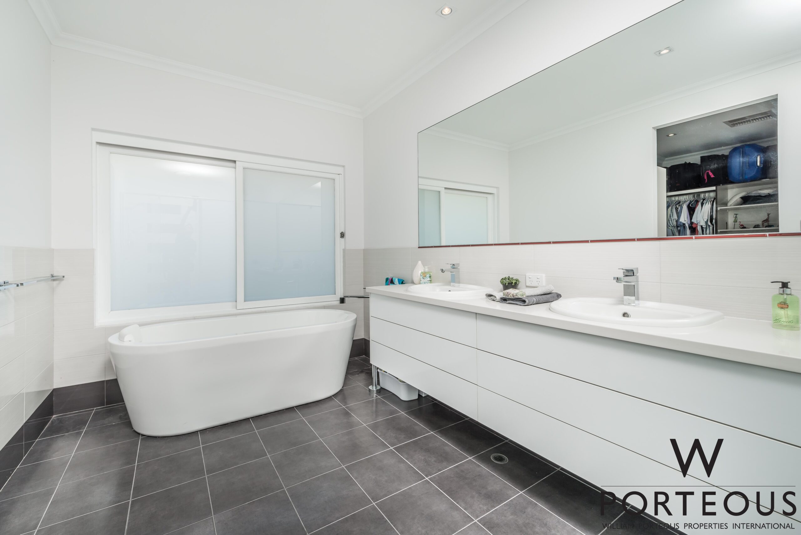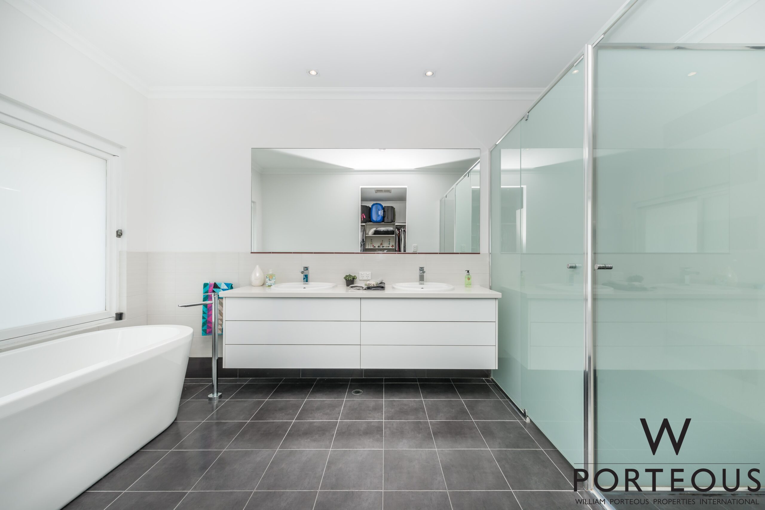 Well considered separation of space places two spacious, bright sunny bedrooms and lovely family bathroom to the west side of the home, and to the east, a huge ground floor bedroom perfect for teenagers with large walk-in robe, en-suite, office/study or sewing room.