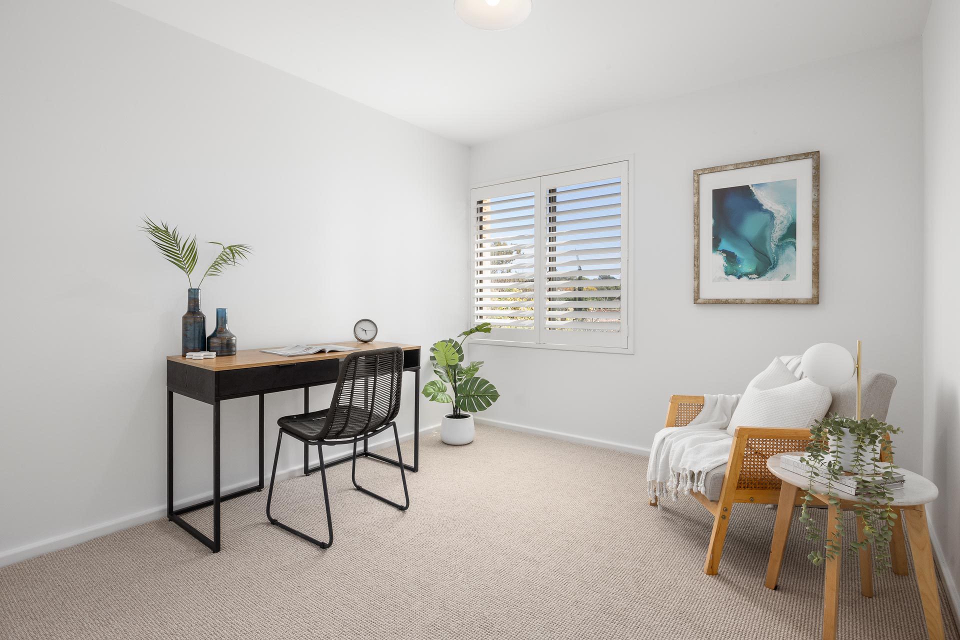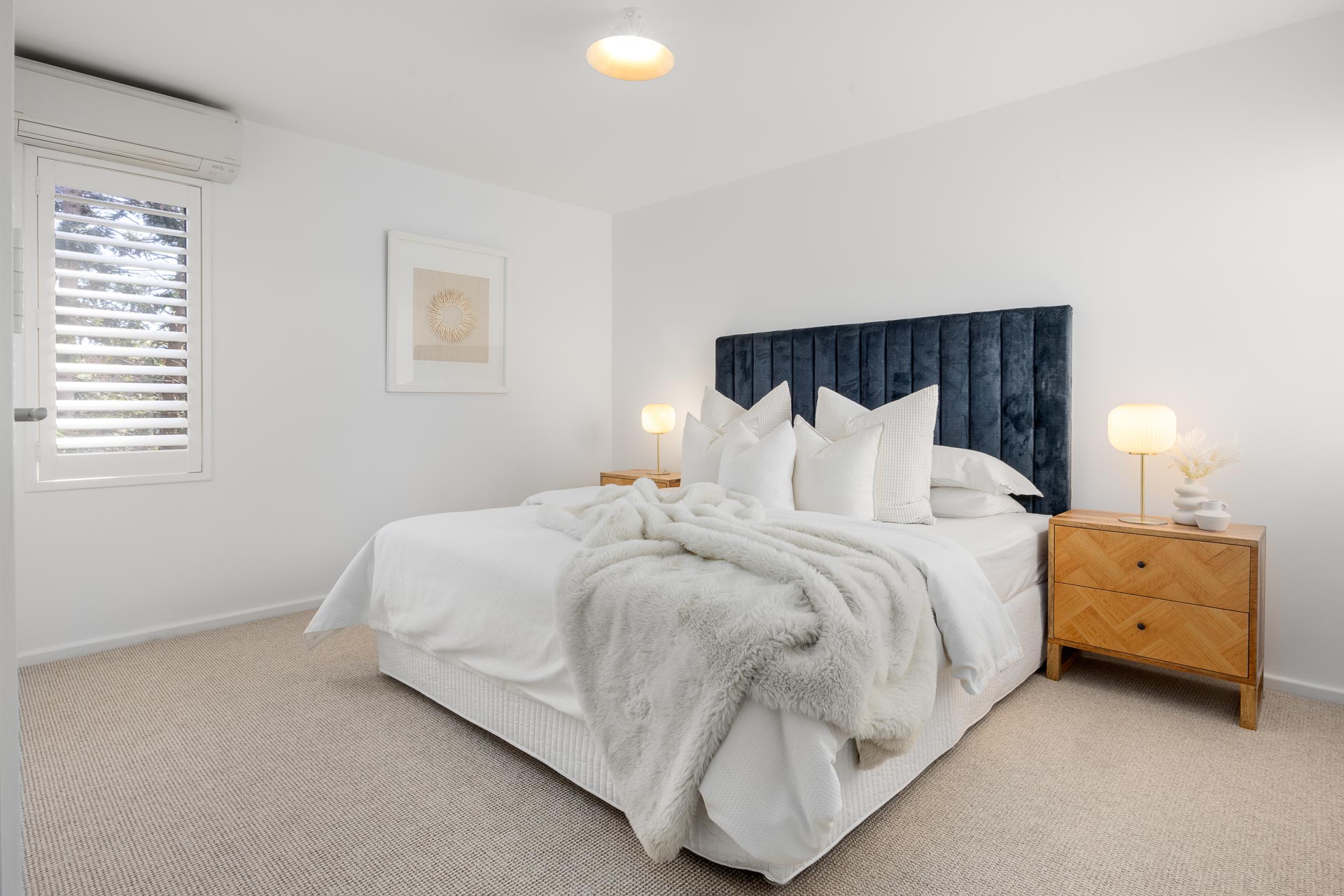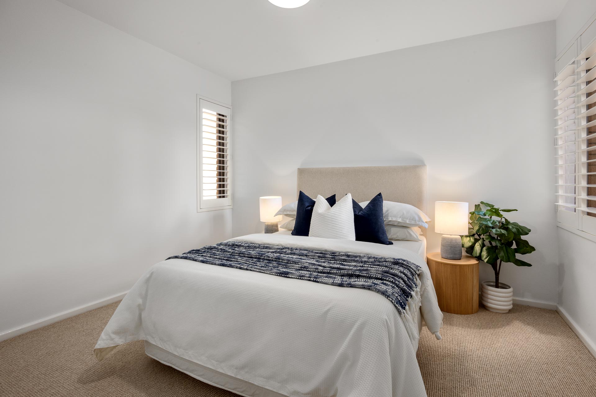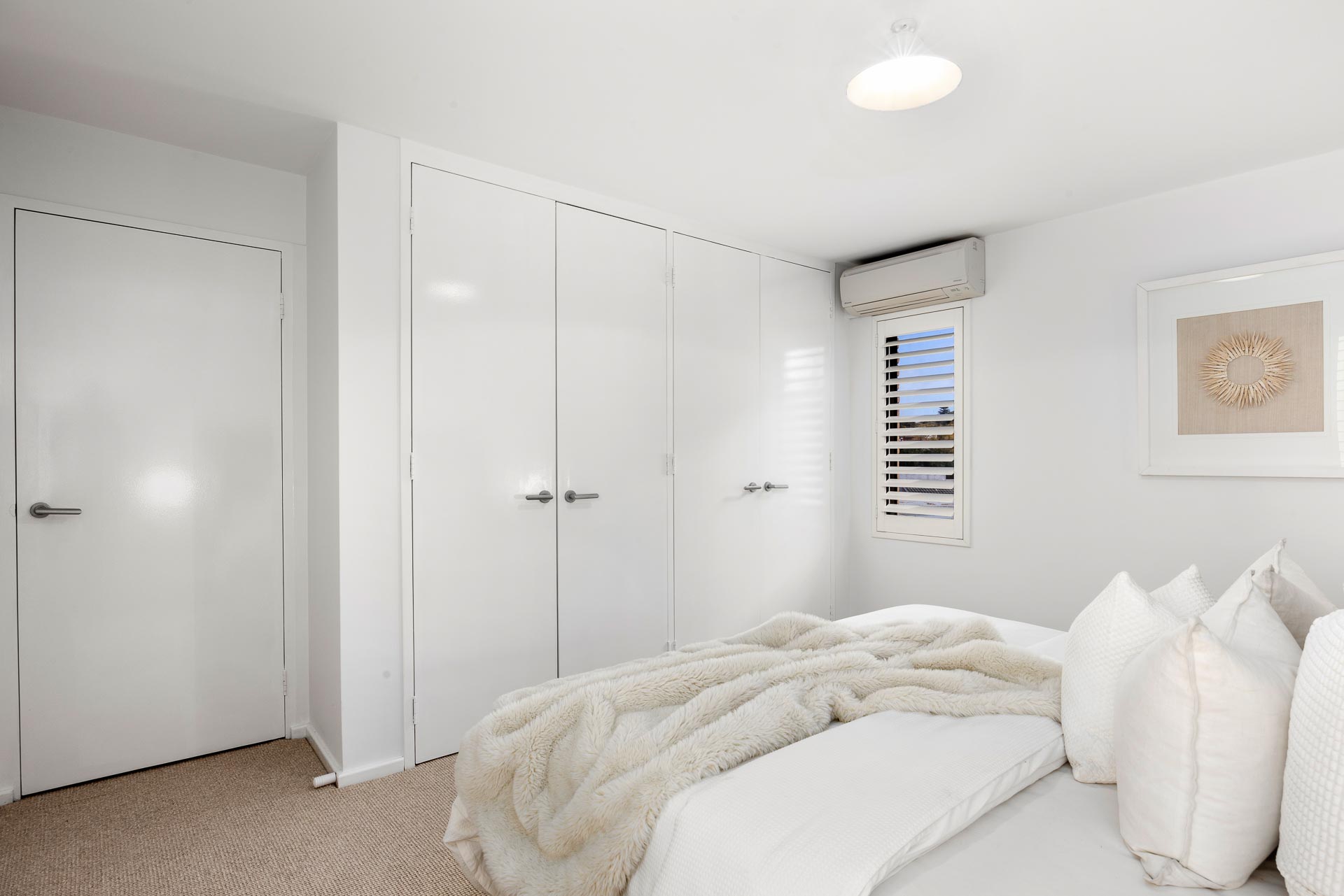 At the peaceful rear of the apartment, find two good-sized bedrooms, one with split system AC (a double room), the other with built-in robes, shelving and drawers. This room features two windows opening from north-west to south, again allowing a great flow of breeze in the warmer months.