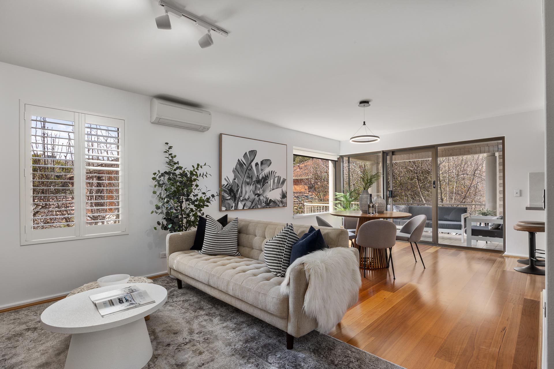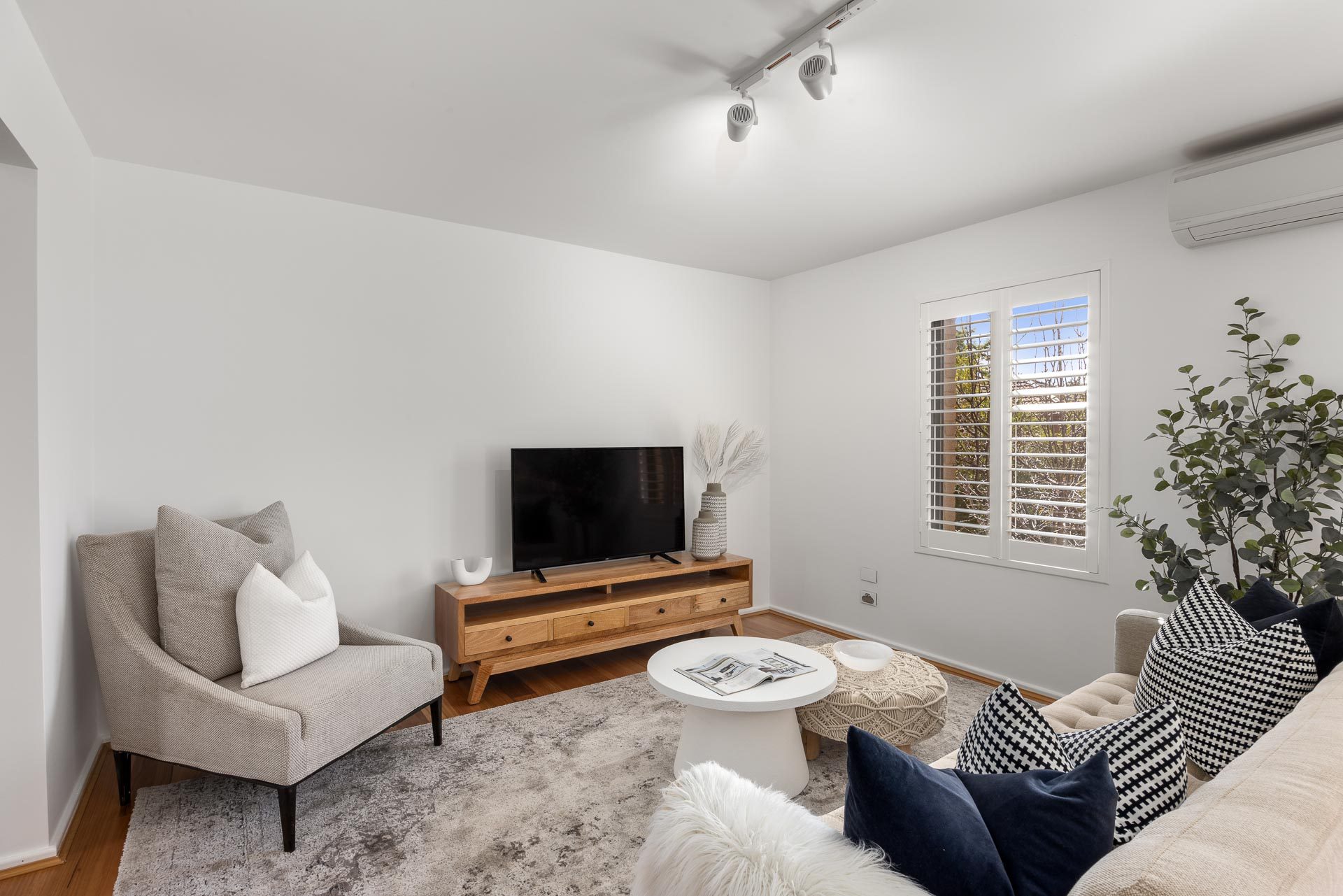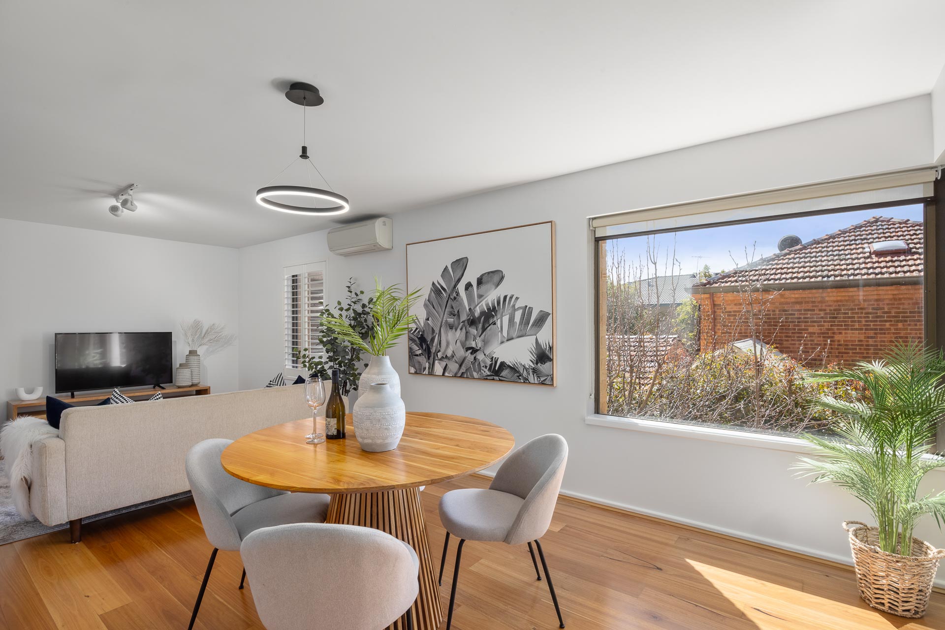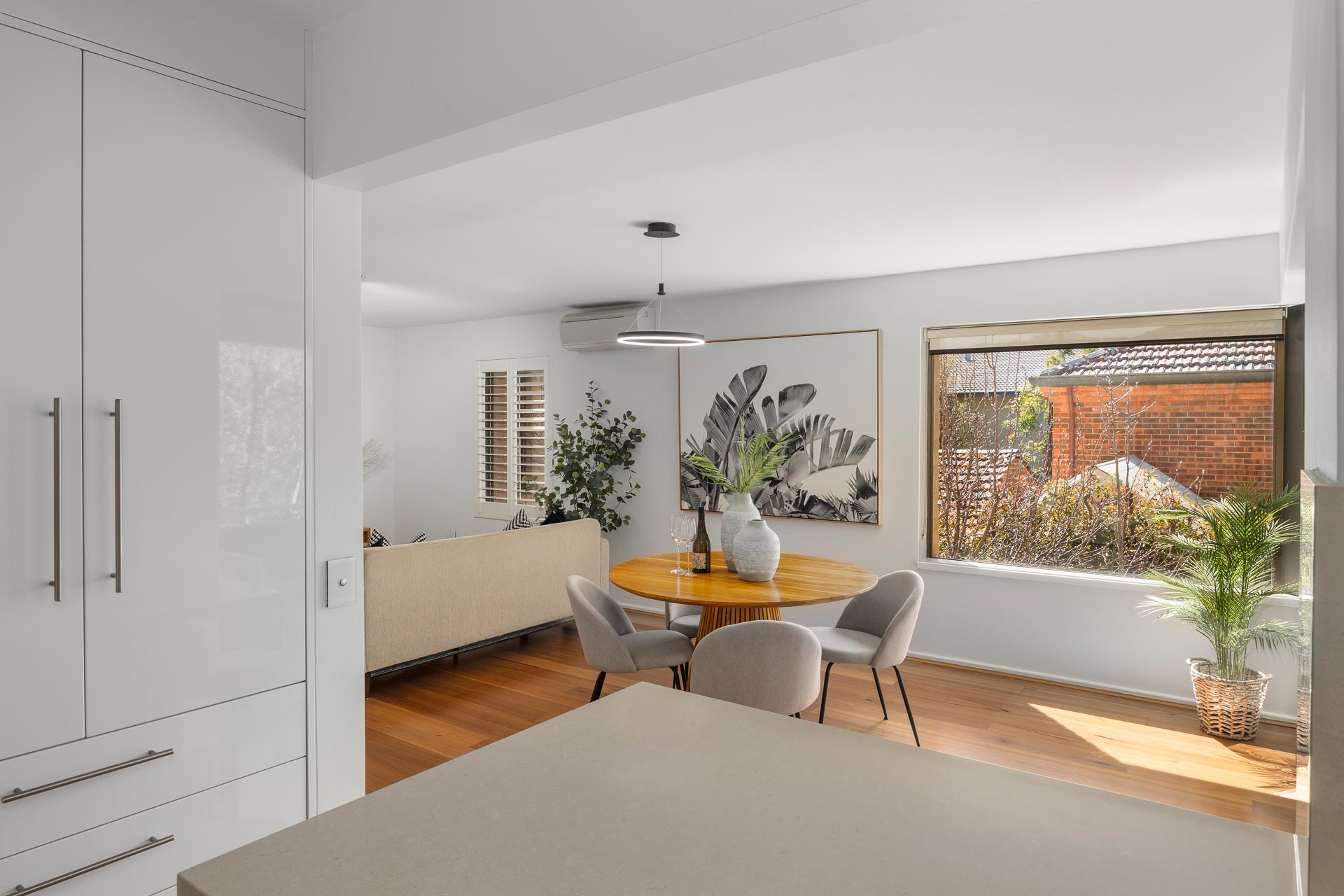 Ideally located on the first floor of an immaculately presented block of only six residences, come home to an open plan, bright and airy living/dining space with engineered timber flooring, split system AC, and charming plantation window shutters.