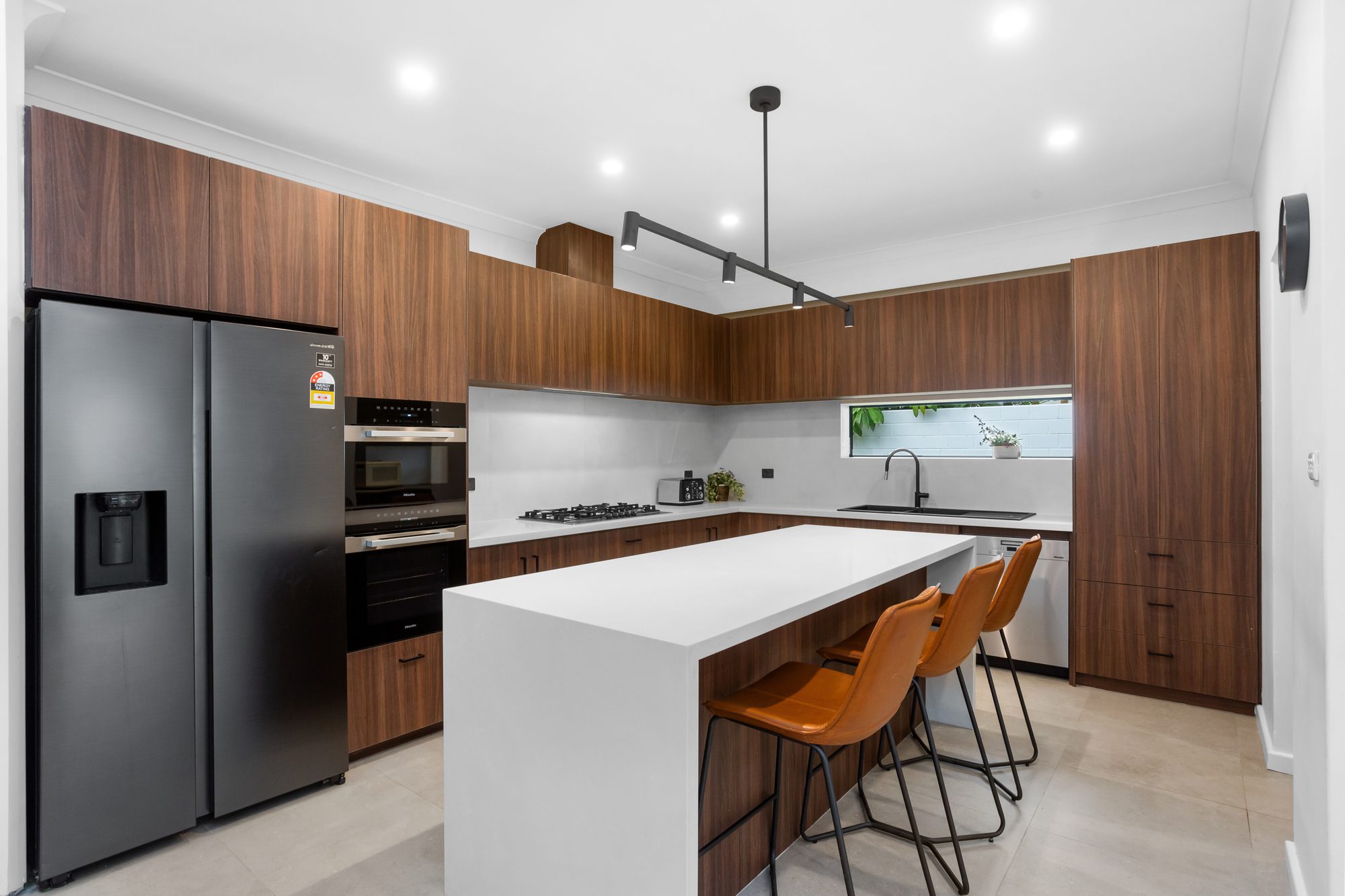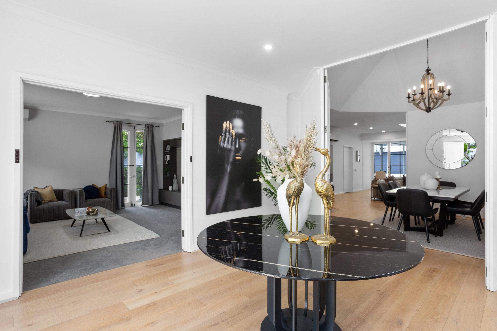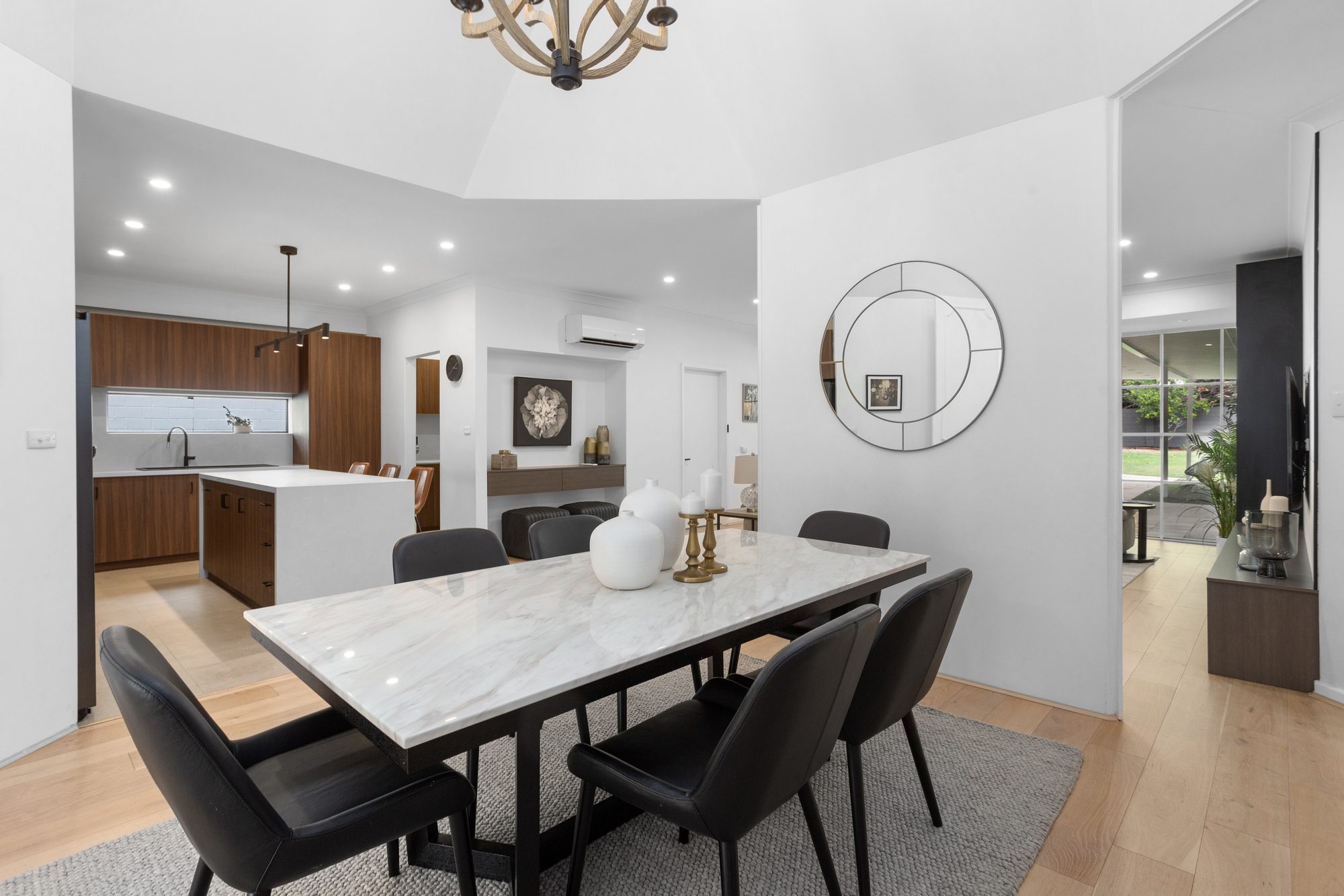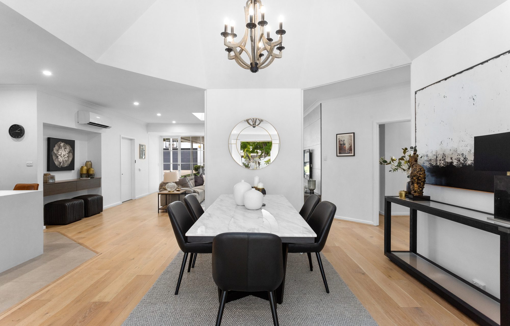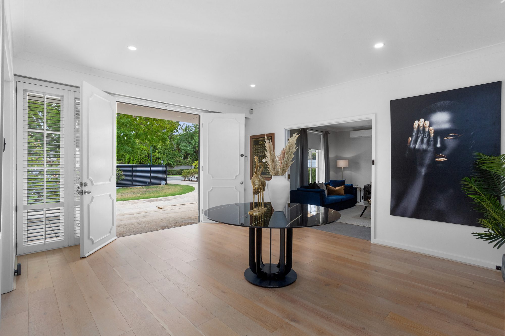 Superbly freshly renovated, from front to back, including all bathrooms, a completely new kitchen, laundry, walls, flooring, lighting ++, this classic 1970s bungalow now features stunning engineered oak flooring that flows through the living and traffic areas, creating a warm and inviting atmosphere. The front lounge/theatre room is a great space to relax or entertain, featuring built-in cabinetry and French doors. Opposite, the main bedroom is separated from the secondary accommodation, making it an ideal parents’ retreat. It features a luxe, fully-tiled ensuite with a semi-frameless rain shower and a heated towel rail.