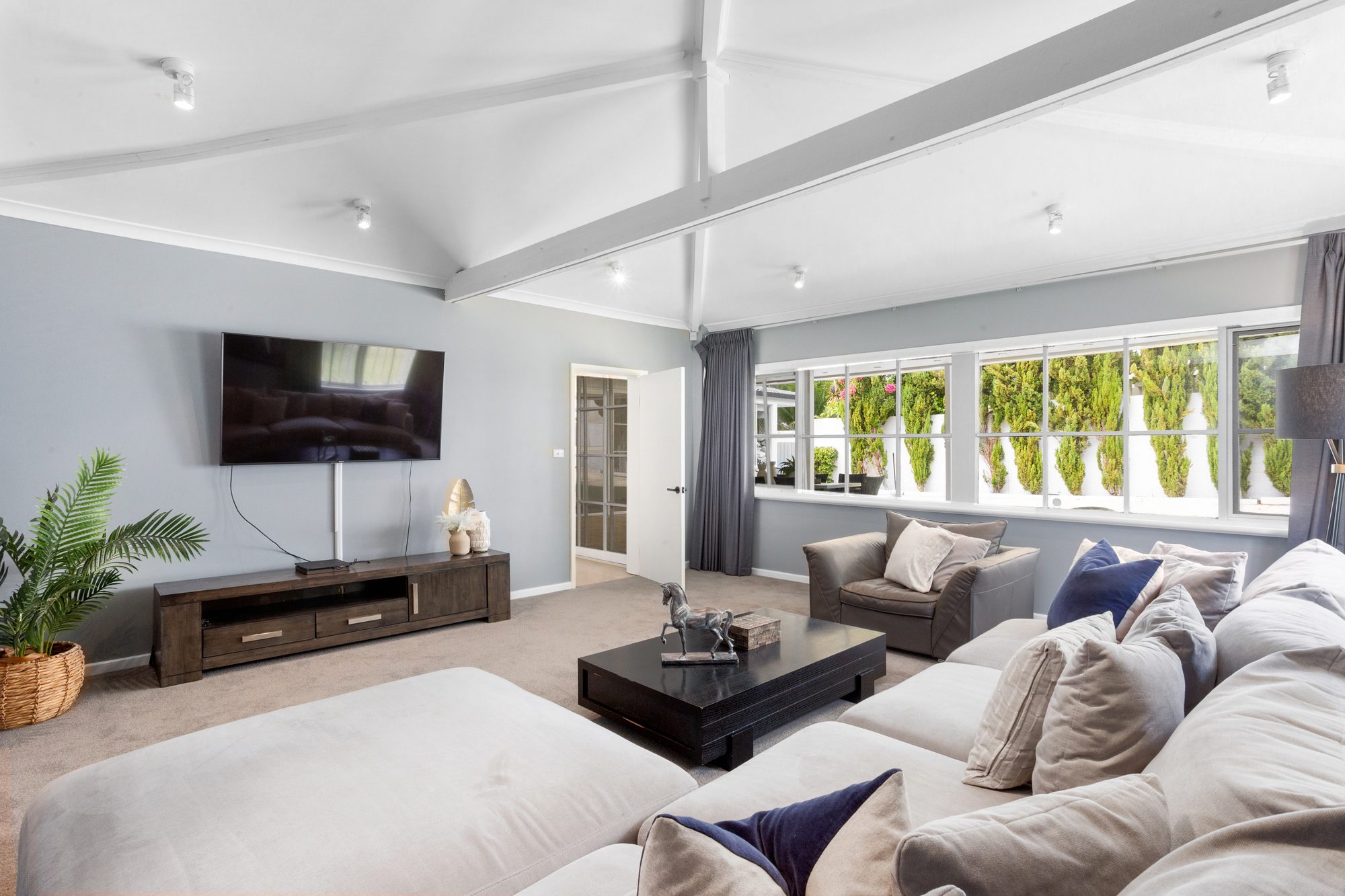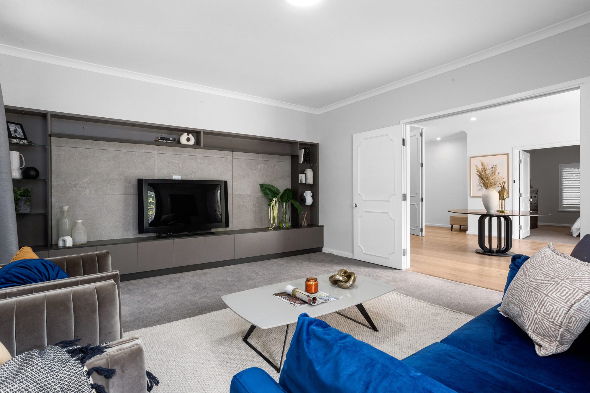 Filled with natural light, the bedroom wing hallway opens onto the expansive alfresco area, where you will find limestone paving, a skillion pergola, and reticulated lawn and garden beds with mature magnolias. The sprawling 1,163sqm block provides plenty of room to add a pool if desired, and there’s also a double garage with a large storeroom plus a garage gym room.