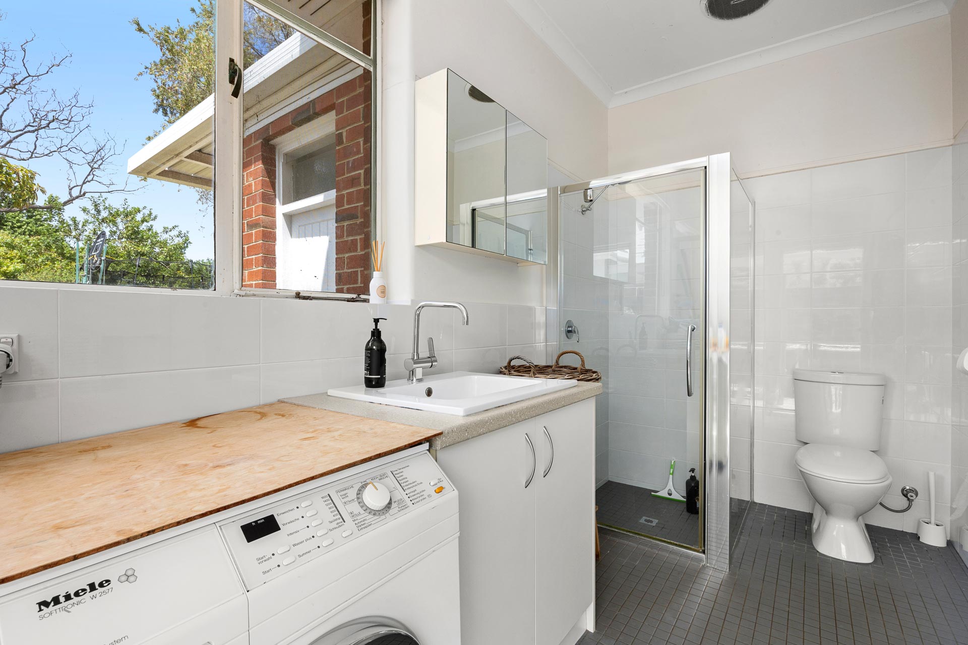 Separate laundry with shower and WC, side access
