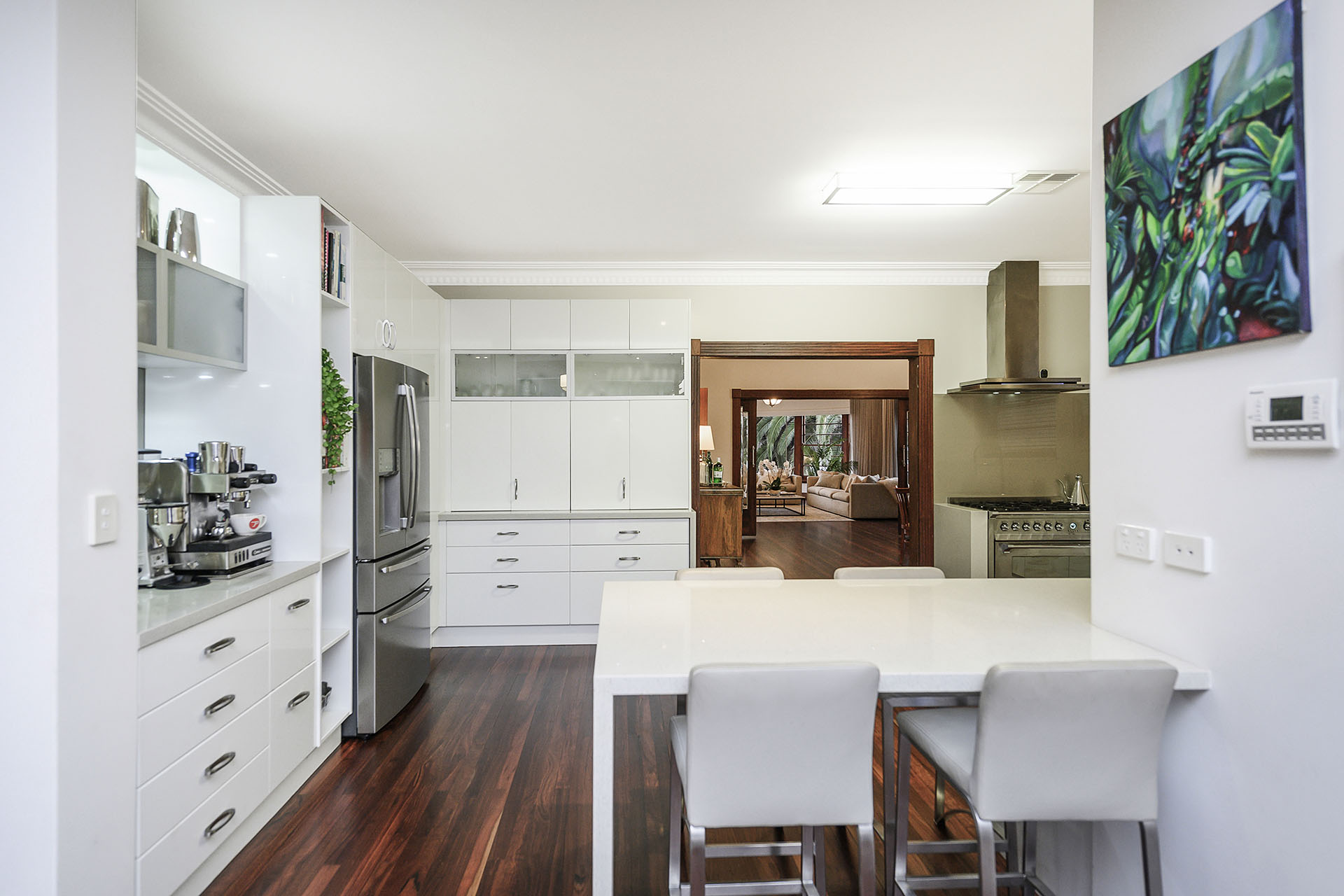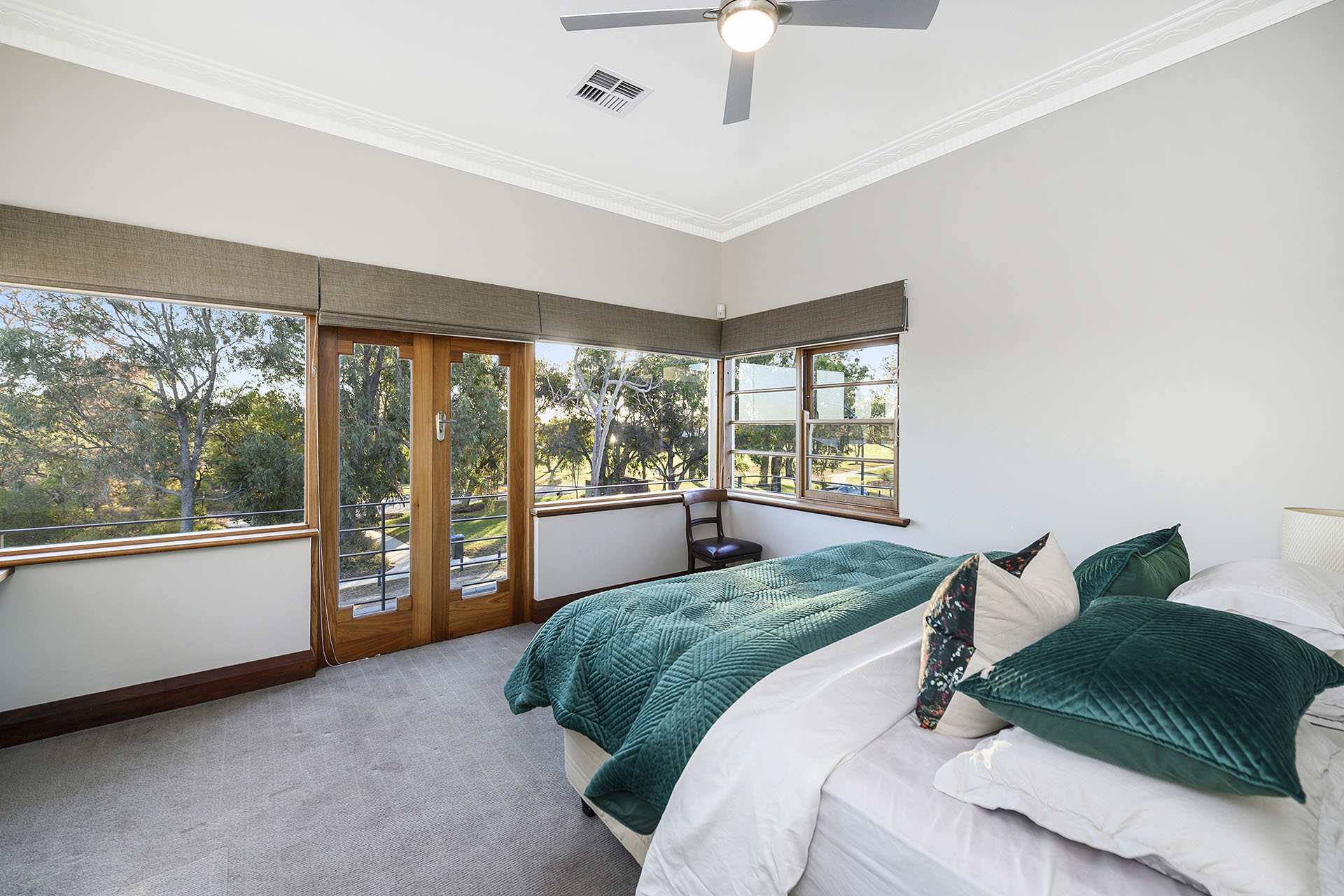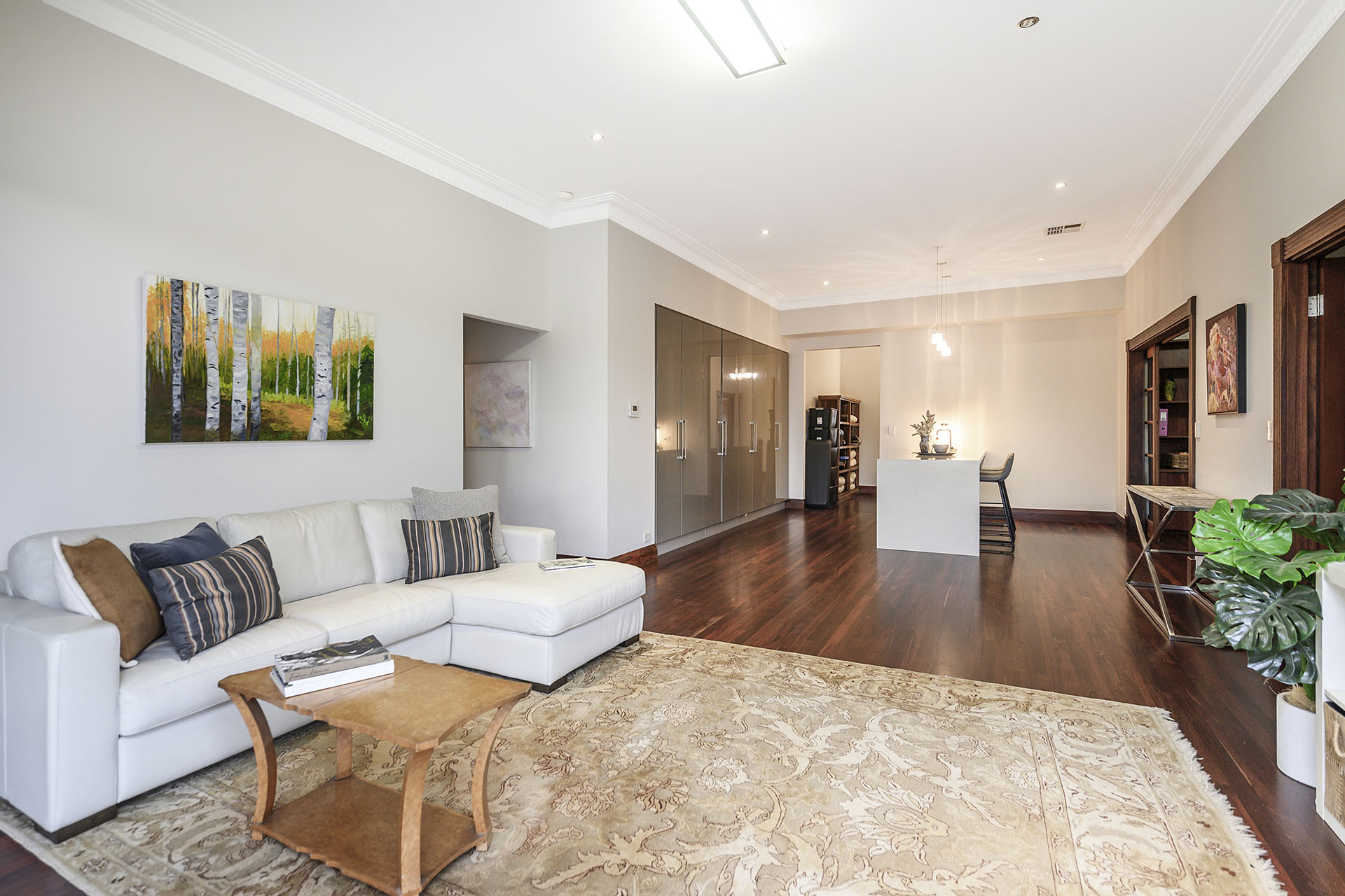 Inside, the sense of scale is immediate. Five grand bedrooms – each considerably more spacious than the modern standard – soar beneath gallery-height ceilings adorned with detailed cornicing in a unique ornamentation. Every surface, from the polished Jarrah floorboards to the sculptural architraves and original fireplaces, speaks to a period of handcrafted excellence which exudes quality and passion.