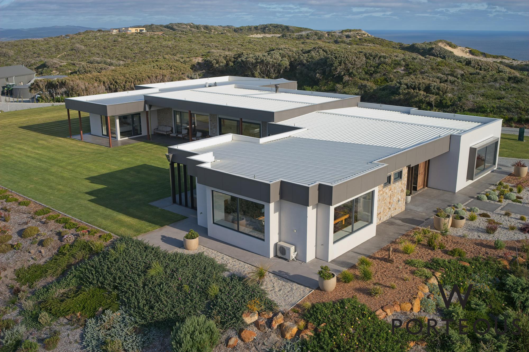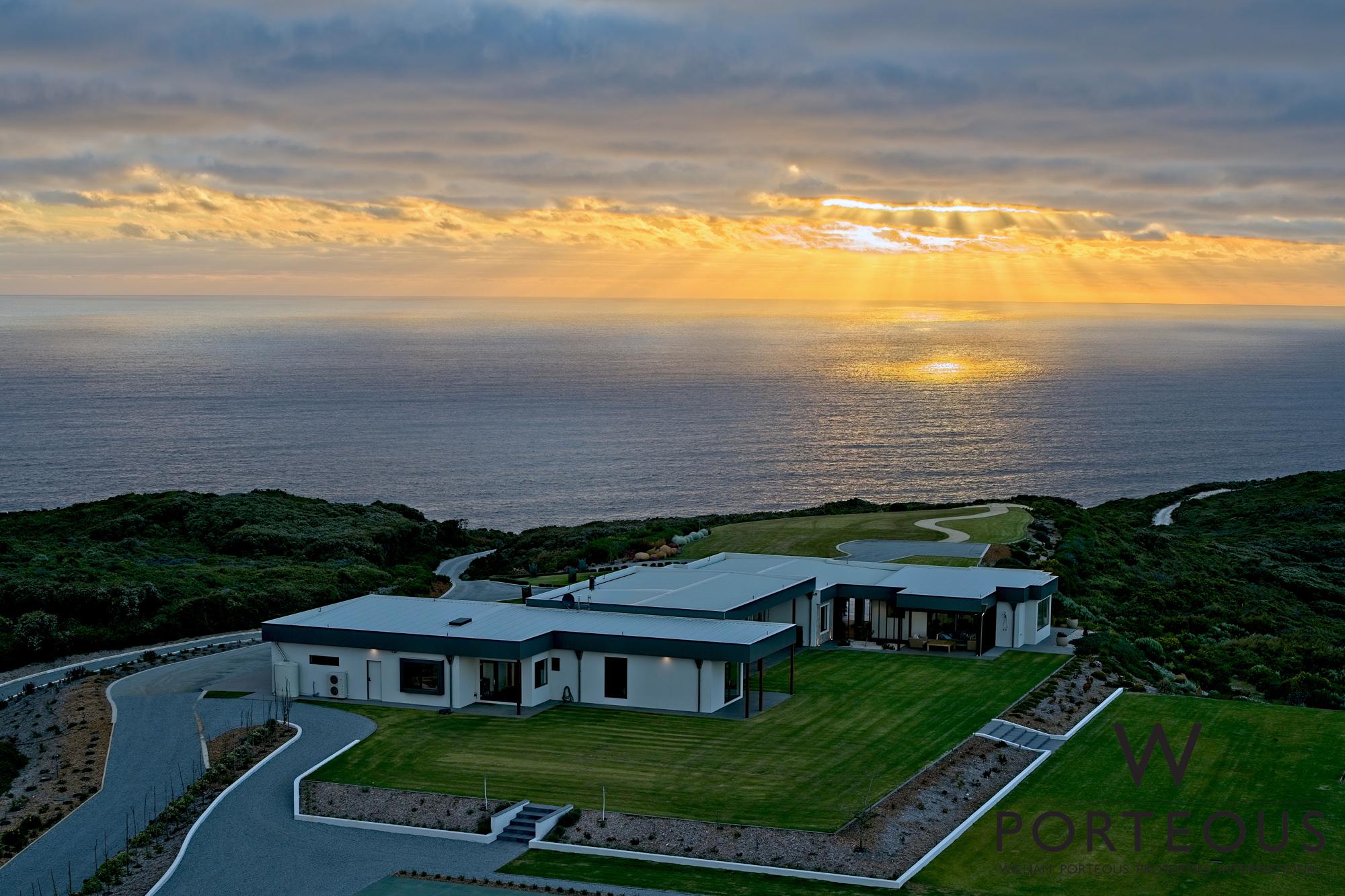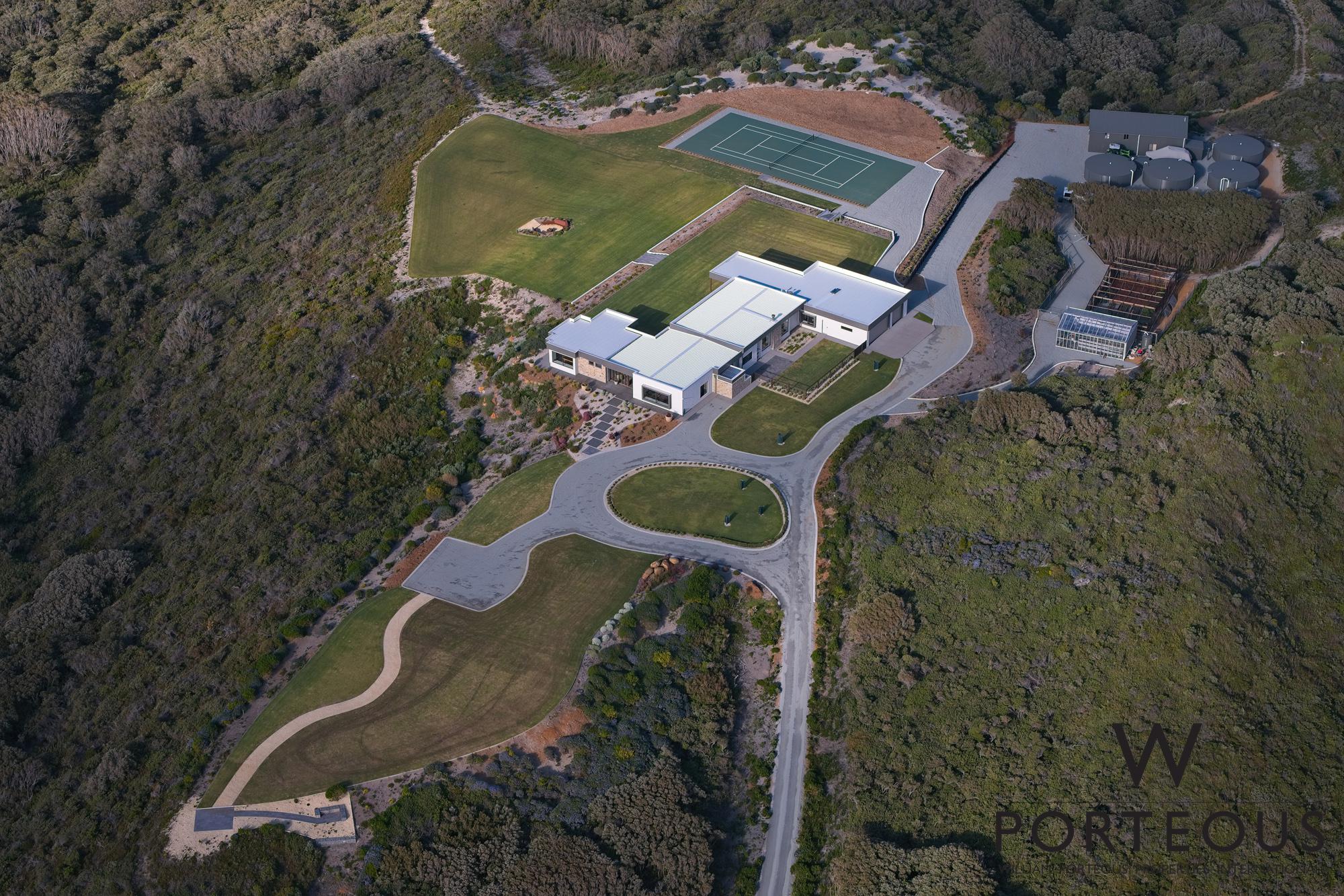 It all starts with the private driveway that leads you from the public road, through the private electronic gate and up into the undulating coastal hills. As you climb the hills and ridges towards the coast the views start to open up around you. As you crest the last ridgeline the expansive vista over the Southern Ocean, some 150m below you suddenly appears in dazzling splendour. The drive then makes its way West along the top of the coastal cliffs with a long and sweeping view down towards Ocean Beach and Point Hillier in the distance. It is a stunning prelude to what’s to come. The cliff top drive turns north again, back up a gentle hill, through a stone-walled, gated entry.