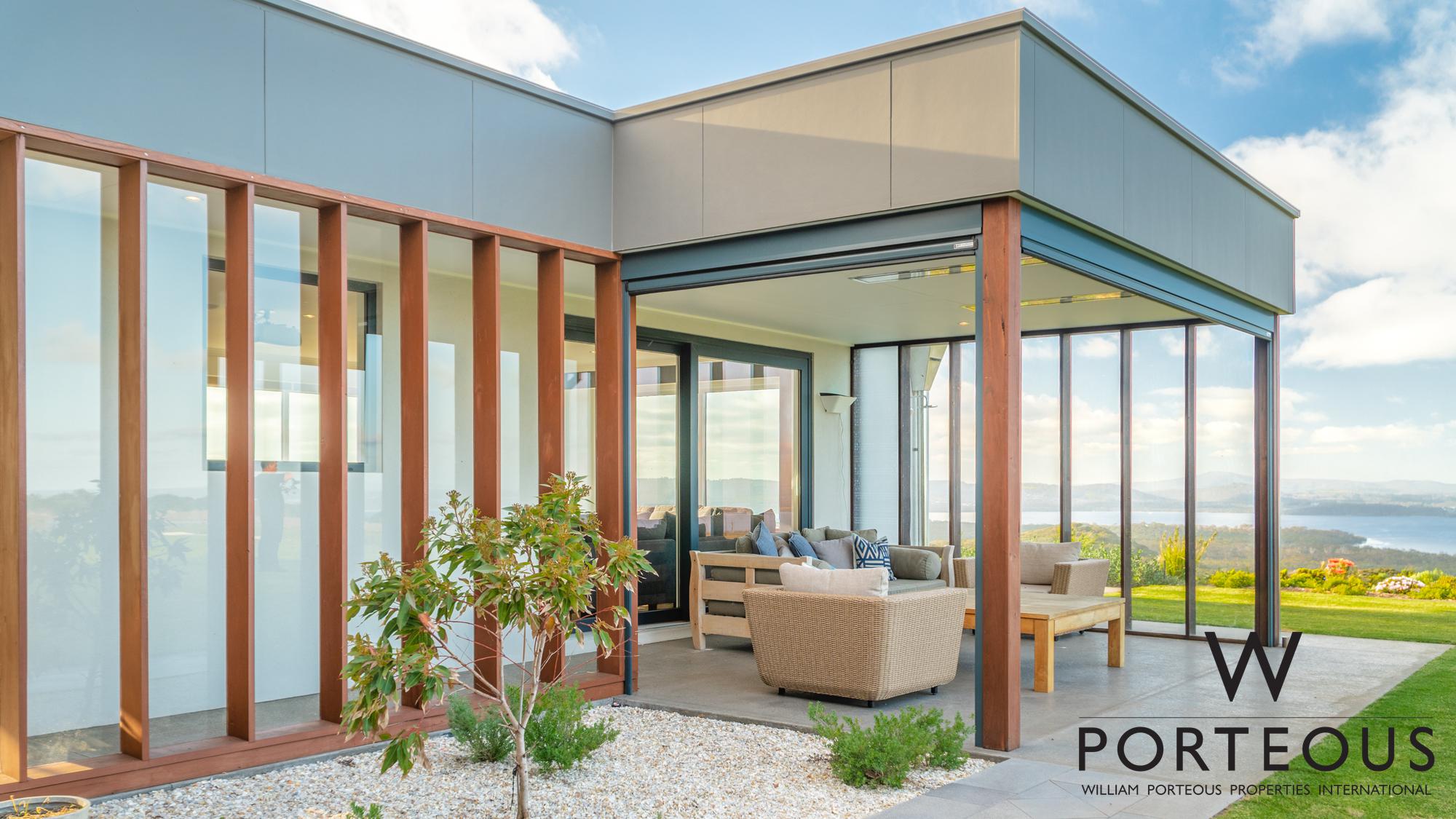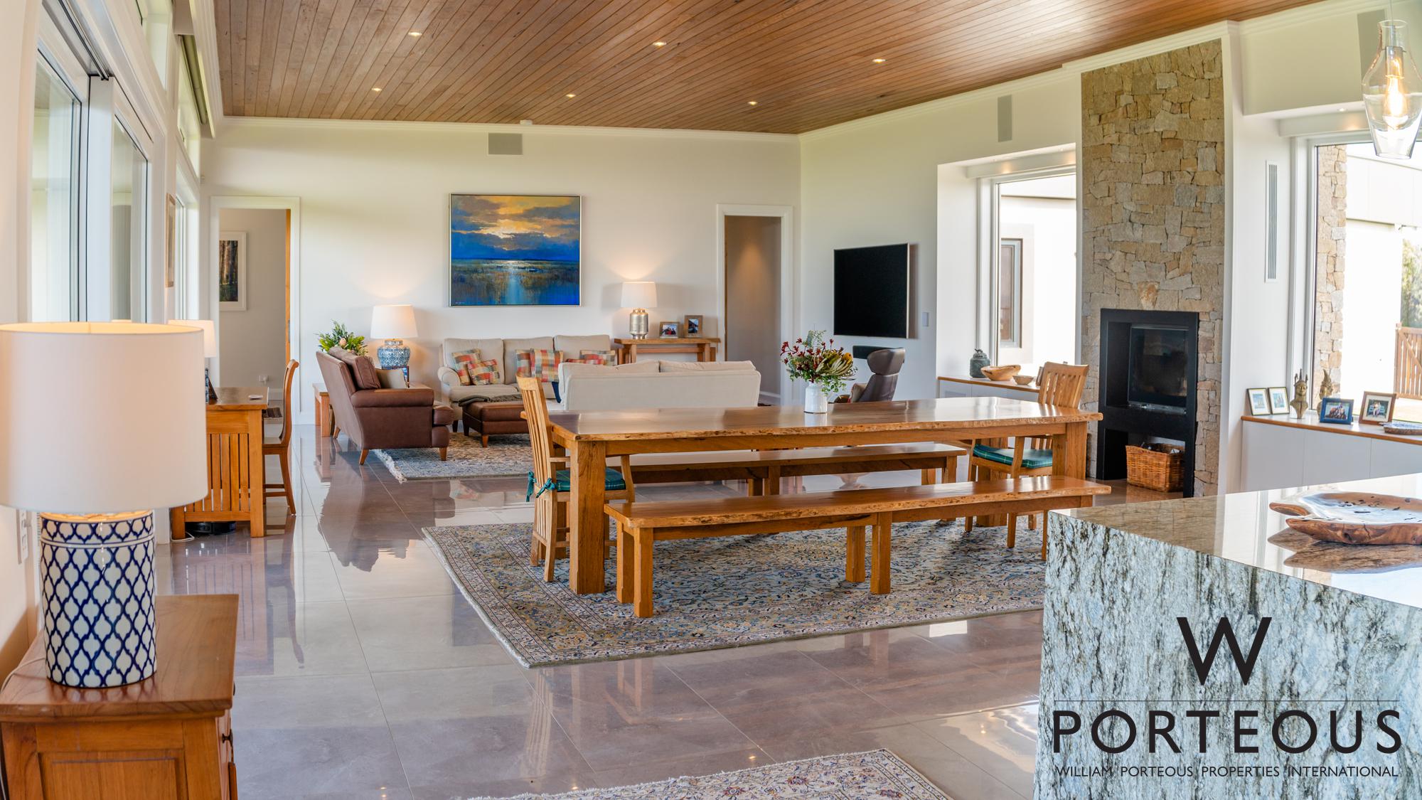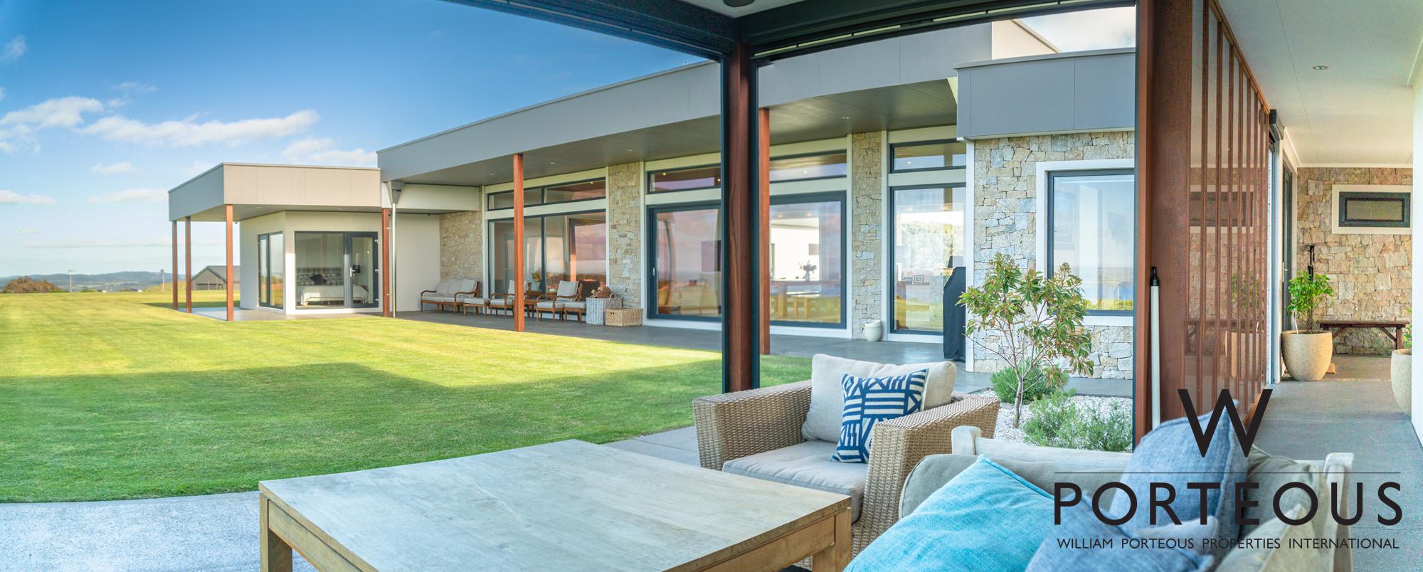The architectural designed home was built by a local master builder to exacting international specifications. It is single level with high ceilings, expansive glass (double and triple glazed), feature stone and timber, with premium features and fixtures throughout.
