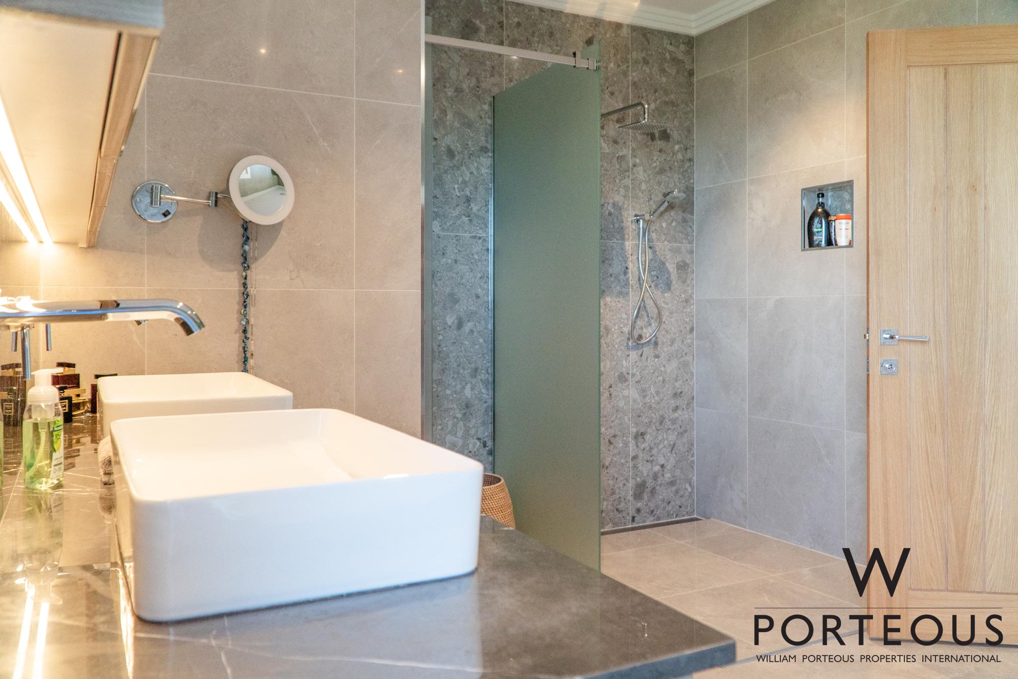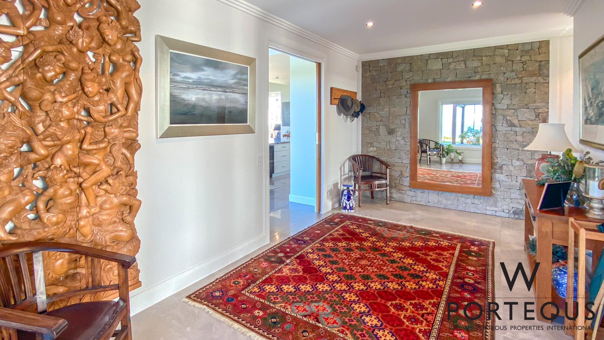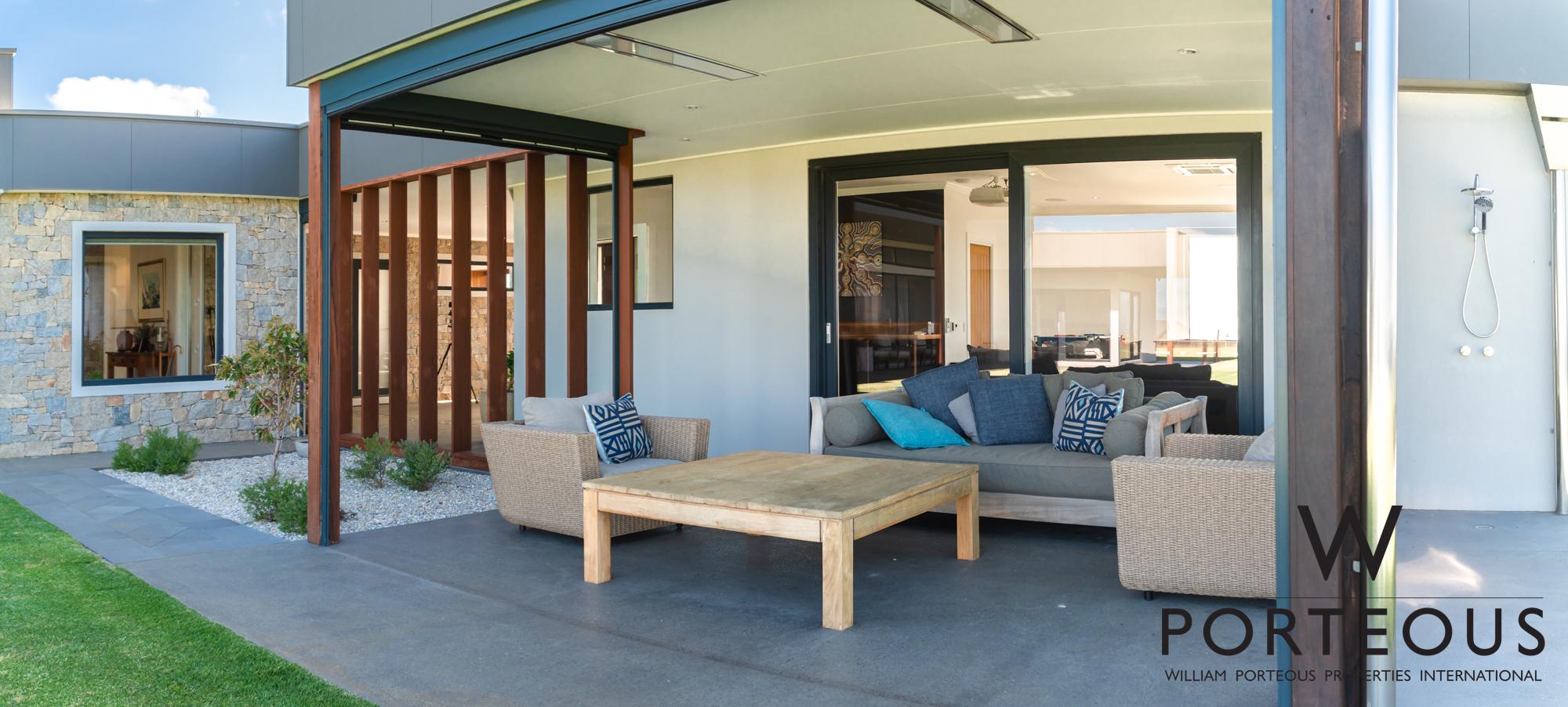 The architectural designed home was built by a local master builder to exacting international specifications. It is single level with high ceilings, expansive glass (double and triple glazed), feature stone and timber, with premium features and fixtures throughout.