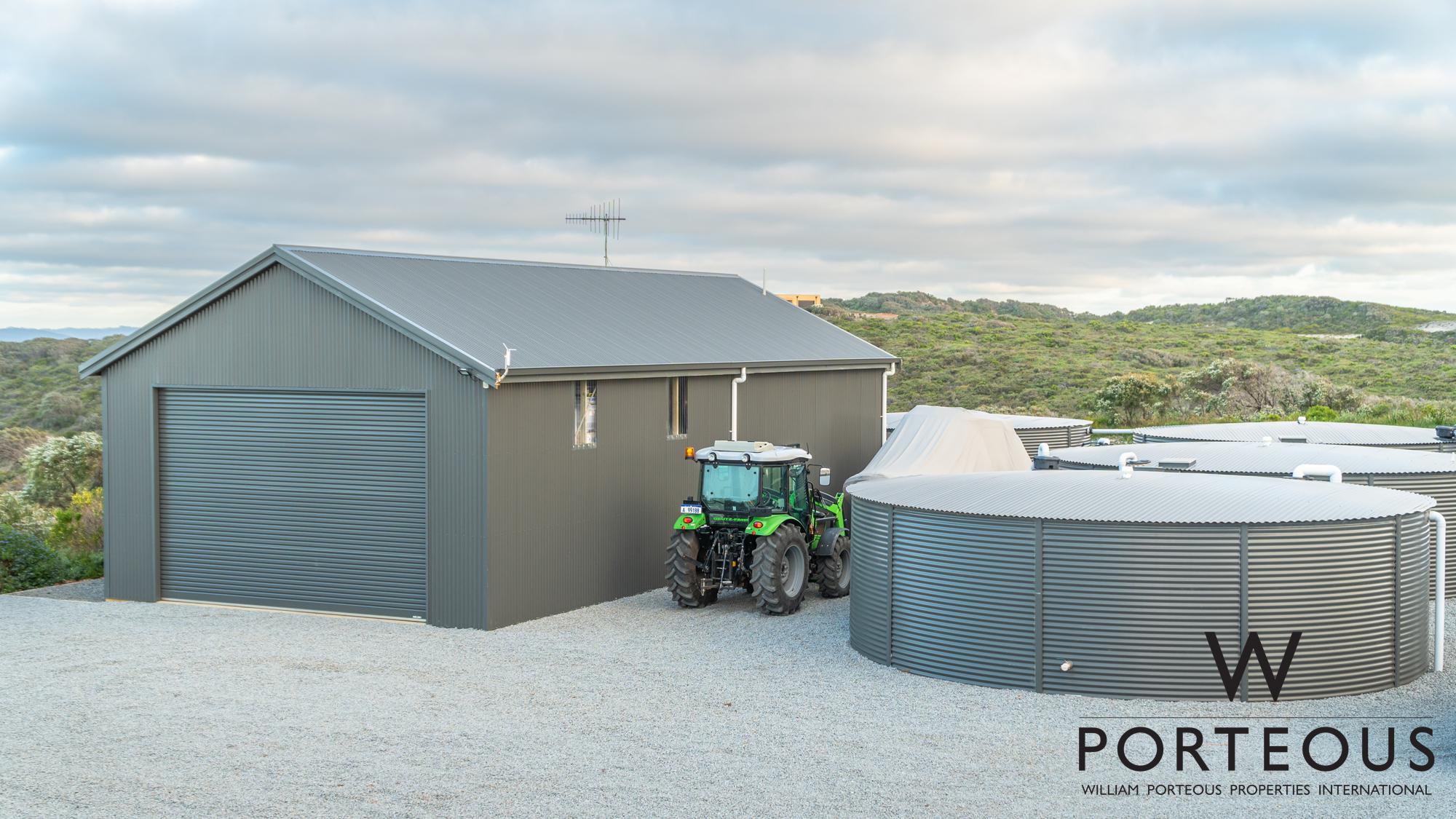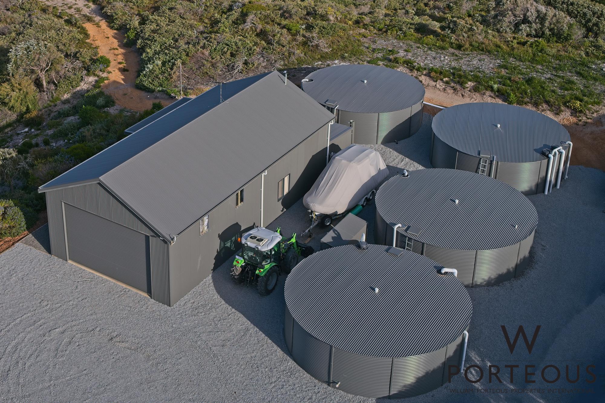 Further on there is a large general purpose shed with a studio apartment/bunkhouse and extensive water tanks, pump rooms, and a 24KvA backup power supply diesel generator.