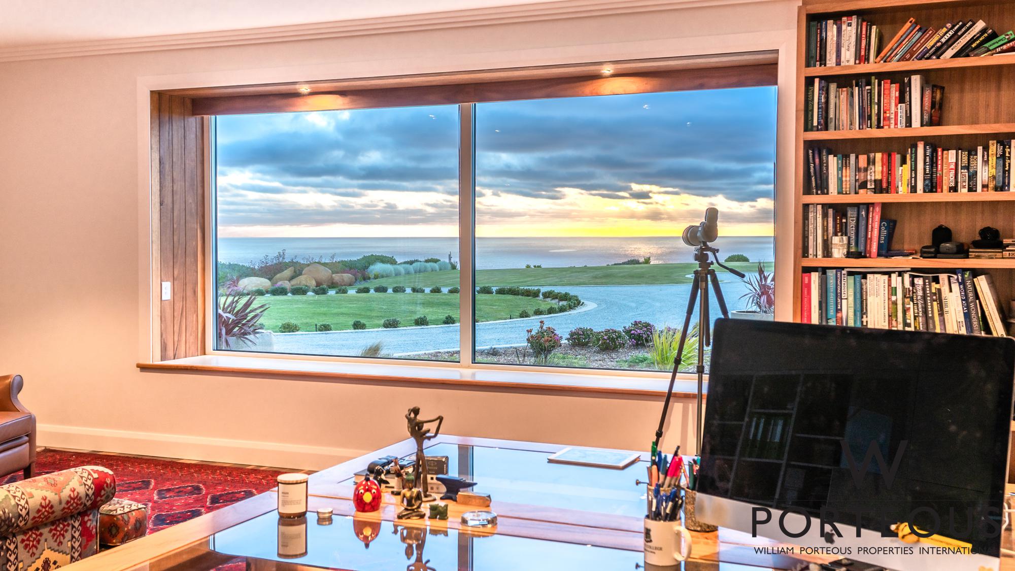 On the Western Side of the central room is a large double study or secondary lounge. It has a large picture window looking west out over the ocean and down the coast.