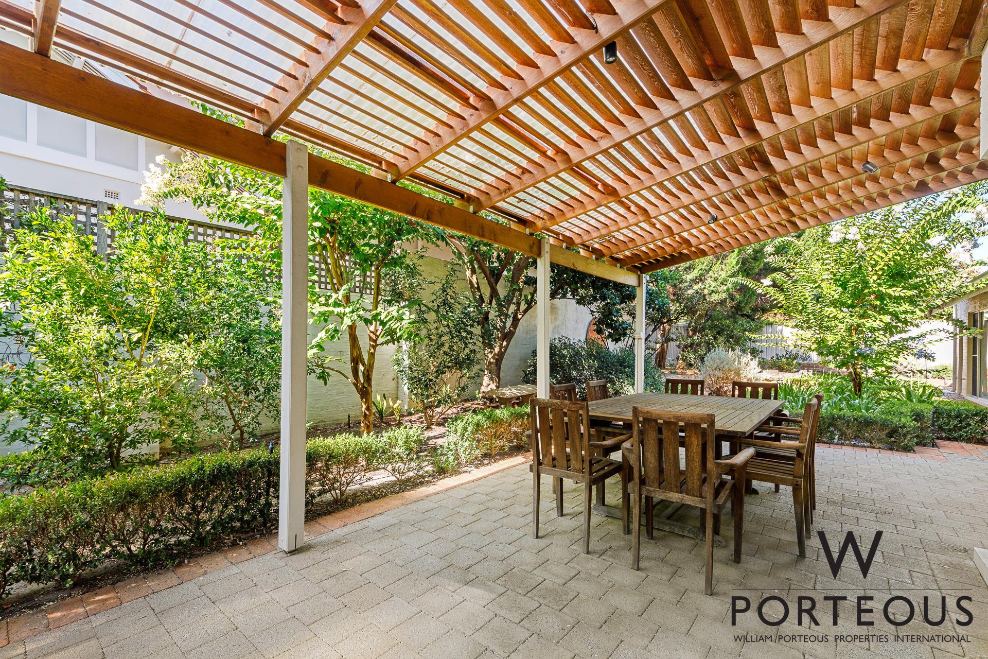Outside you’ll love the large alfresco terrace that sits beneath a passive solar timber pergola, designed to maximise light in winter and shade in summer. Established garden beds include mature crepe myrtles, Indian hawthorns, agapanthus and a variety of citrus. This enviable position is steps from the highly regarded Nedlands Primary School and fantastic shopping and dining on Broadway, and moments from Nedlands Golf Club, UWA and Matilda Bay Reserve.