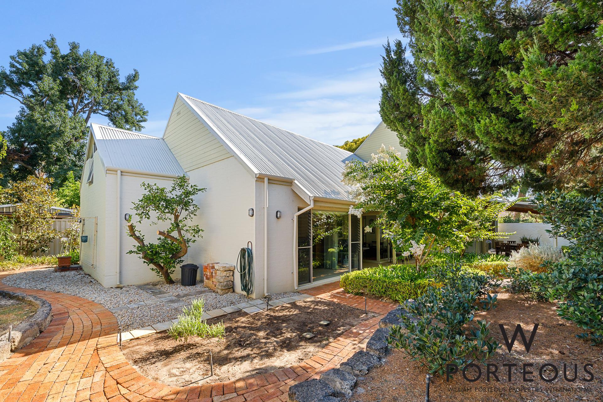 The double-storey property is set discreetly into the leafy streetscape and offers 3 generous bedrooms, 2.5 bathrooms, formal and casual living areas, and magnificent bore-reticulated gardens. There’s also a versatile ‘attic’ room on the second level with a raked ceiling and skylight which offers an extra bedroom if required, or simply storage.