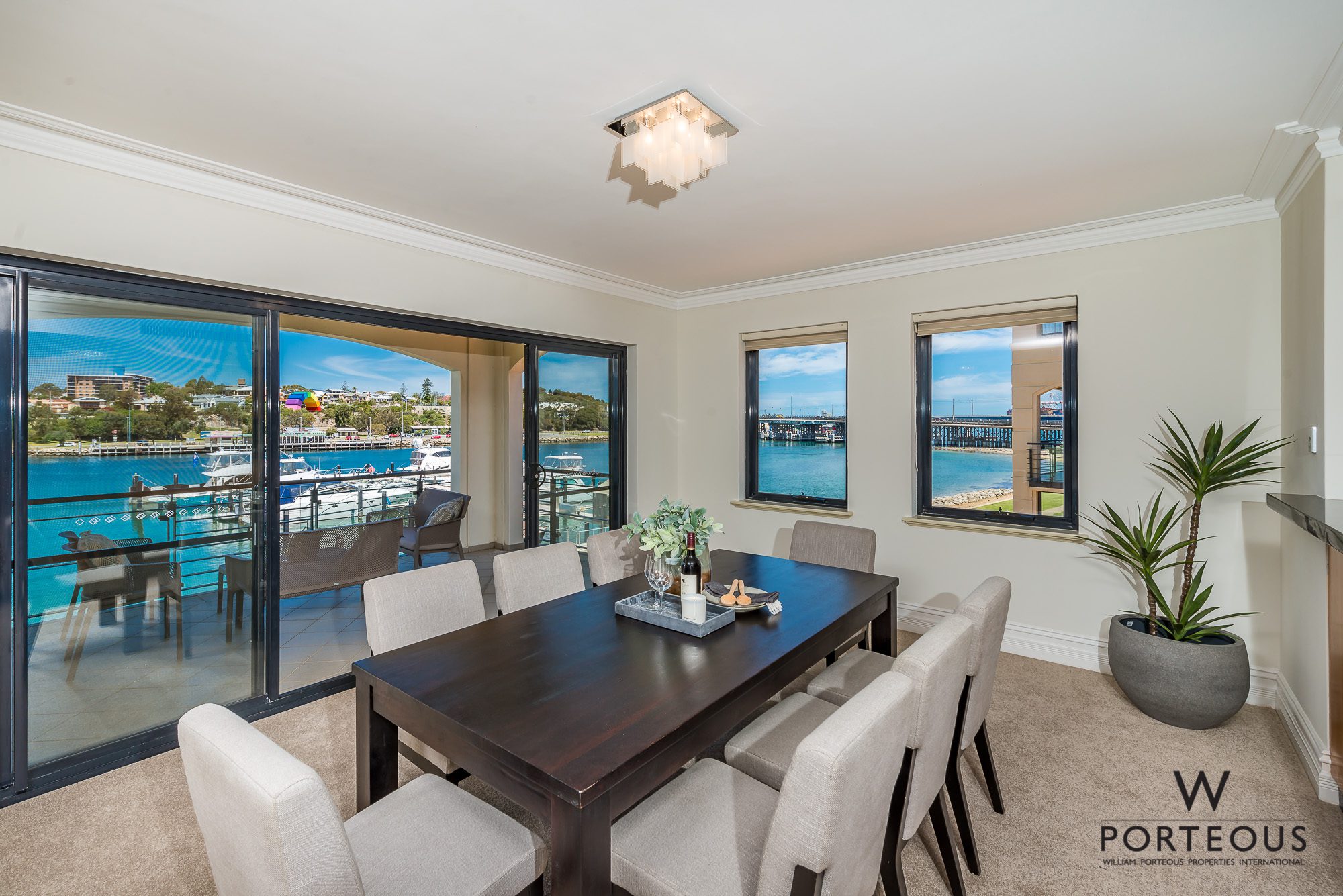 A stunning entertaining balcony splendidly overlooks the river, boat pen, lush waterside lawns and both the East Street Jetty and Tradewinds hotel on the Swan’s southern side. Watch the boast go past and enjoy the gentle afternoon sea breeze.