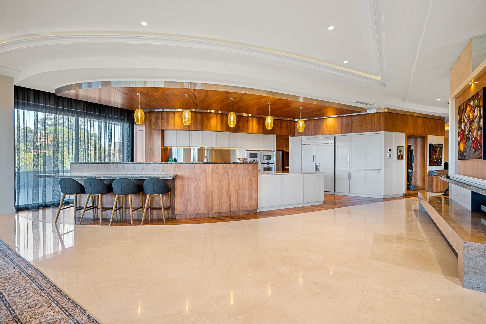 The interior was designed by renowned designer Maria Monaco, and it is offered fully furnished with the custom furnishings selected and designed for these spaces. At 6 stories, and home to only 5 boutique luxury apartments, this is the highest building in the precinct, completely secure and completely private.