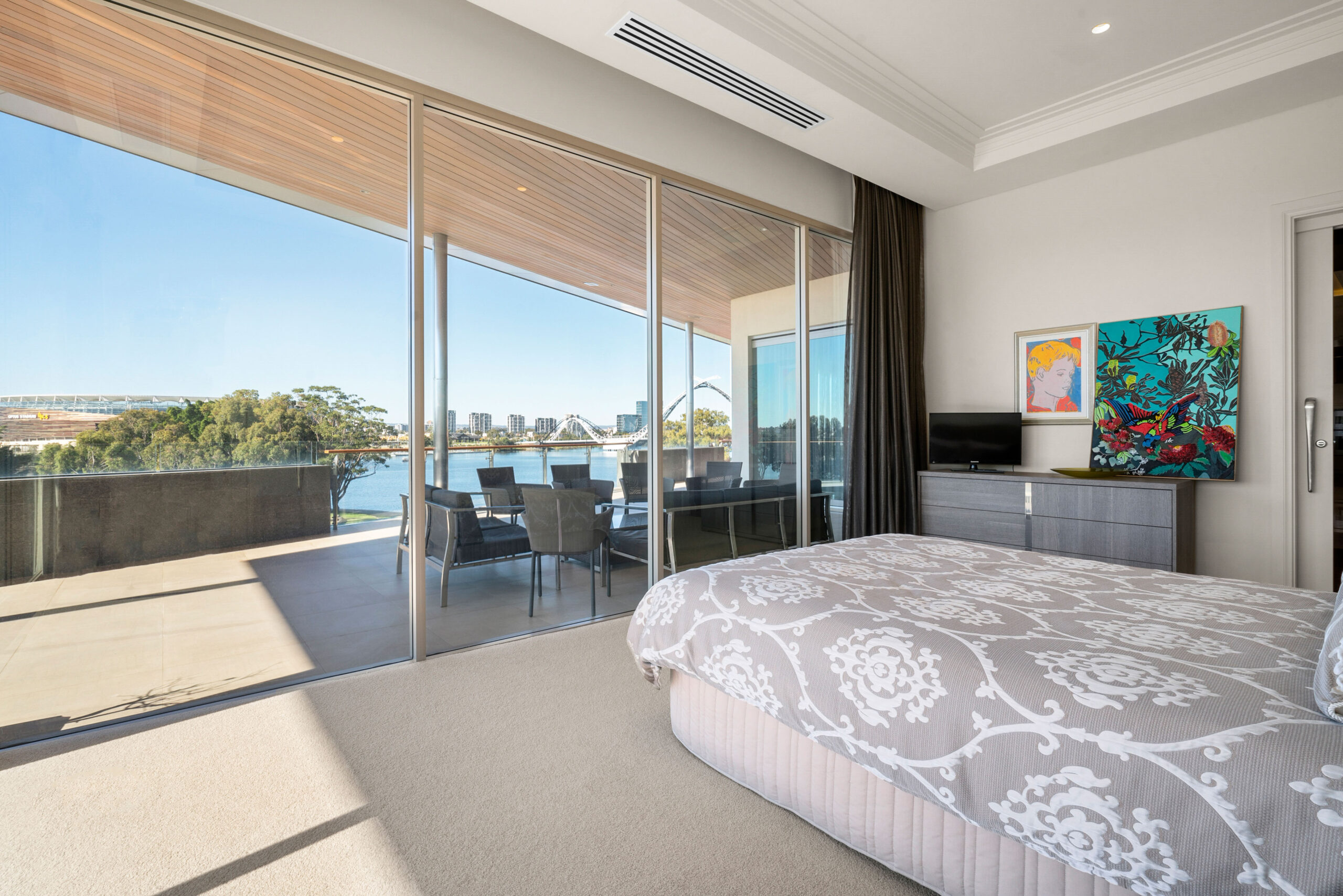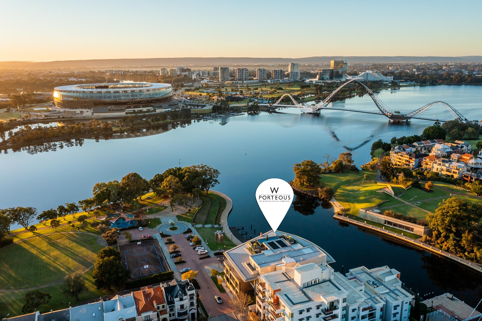 • Uninterrupted views of the Swan River, Claisebrook Cove, Crown Towers Hotel & Casino and beyond to the Perth hills