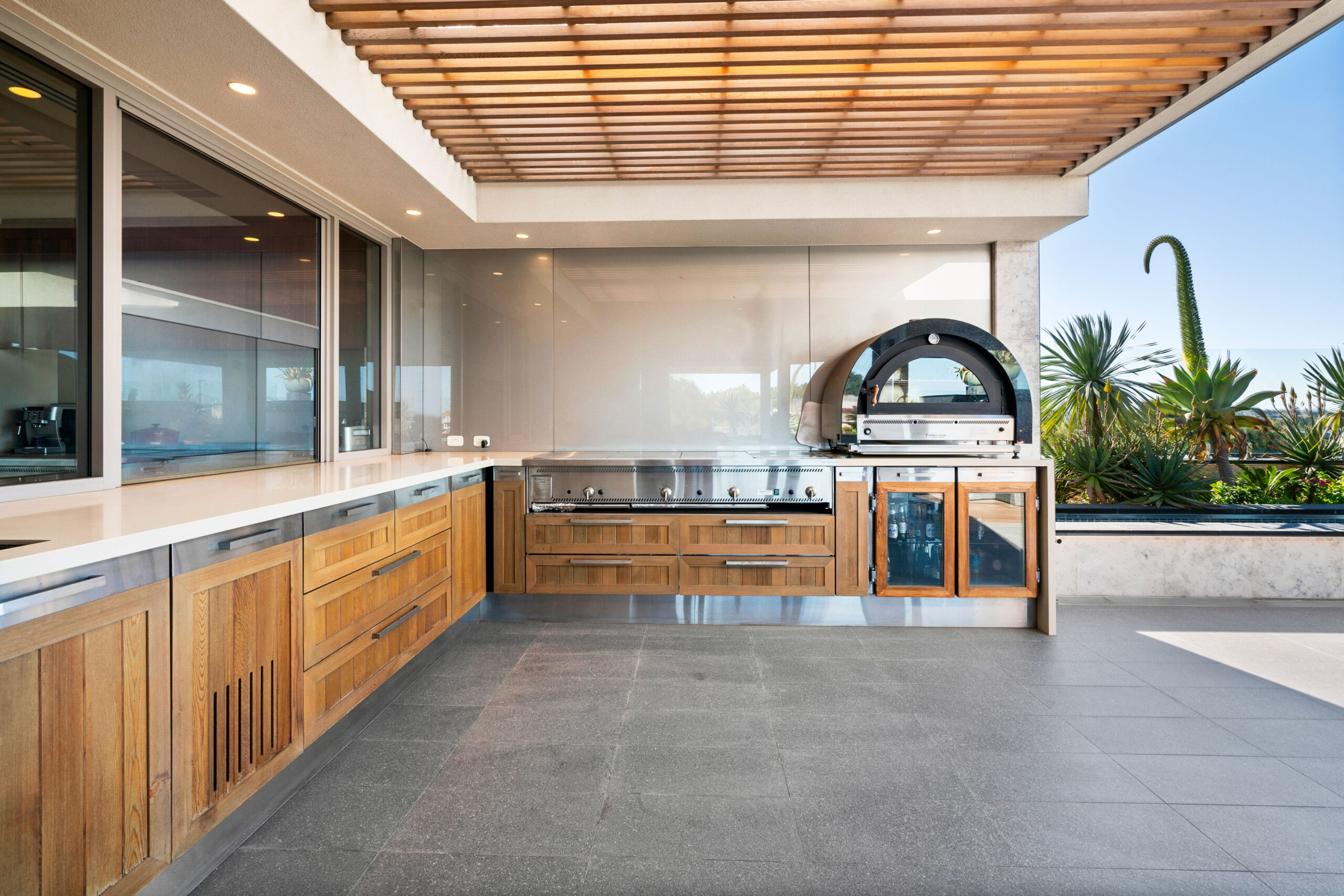 • Built-in Ferguson BBQ, pizza oven and outdoor kitchen