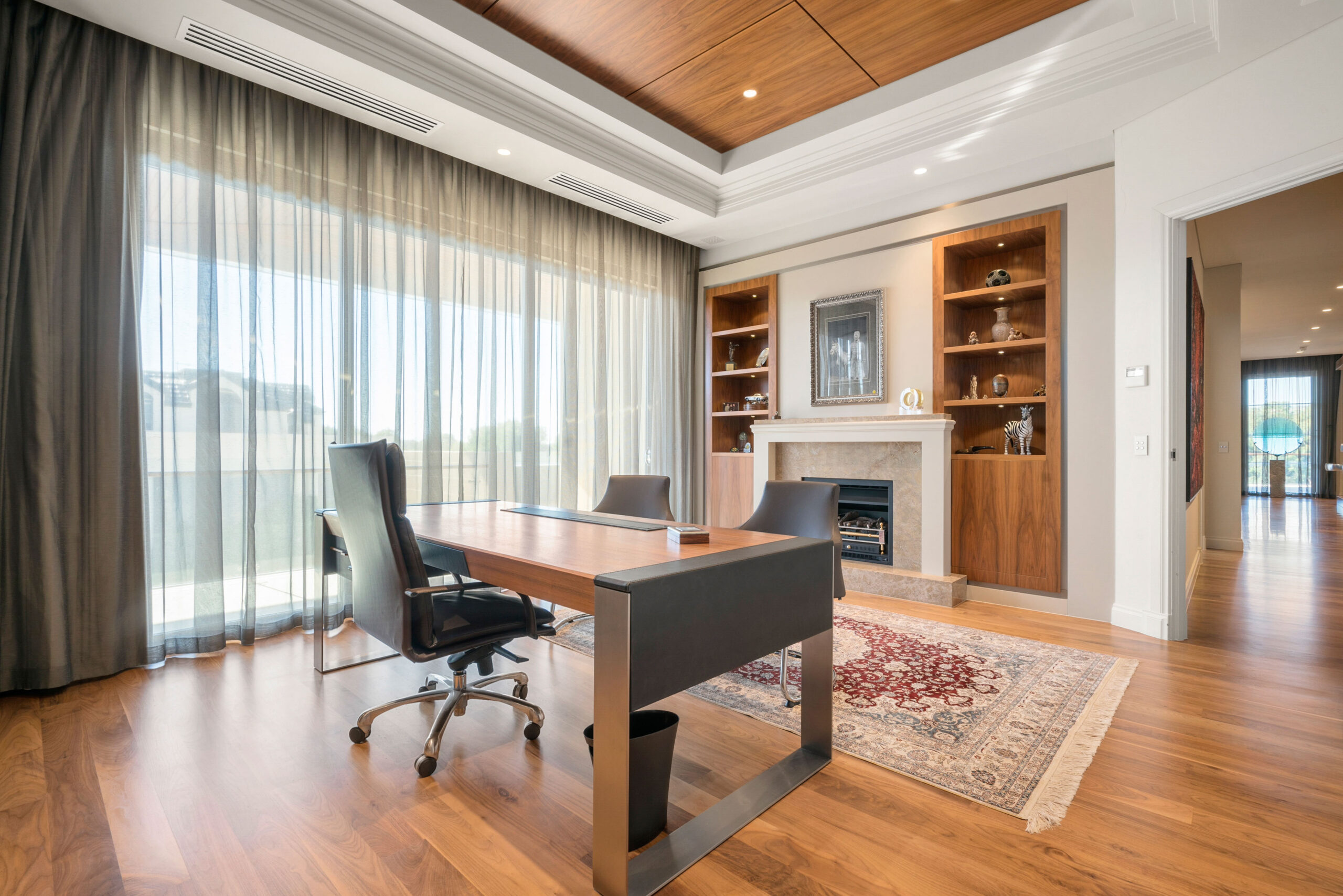 • Custom-built home office with fireplace