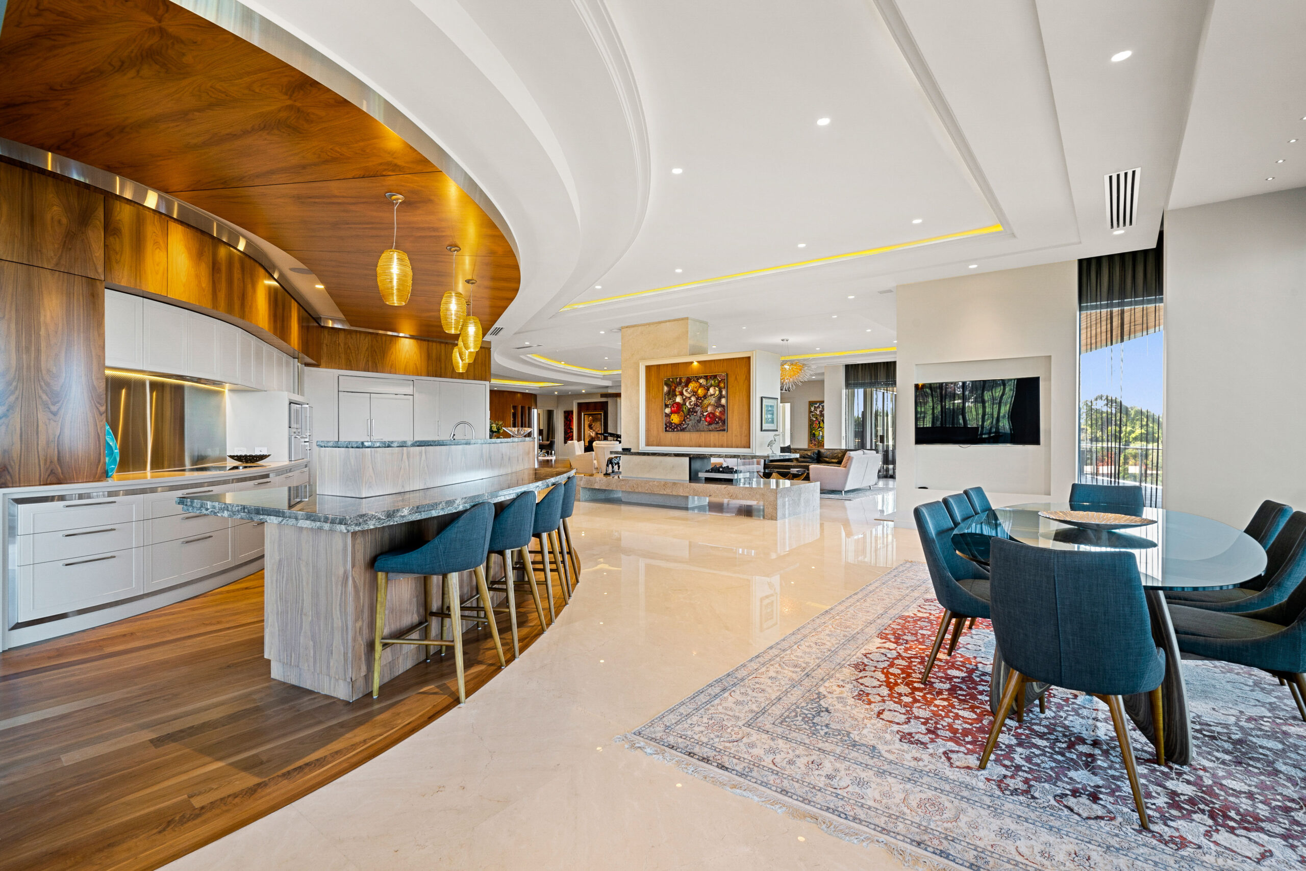 • Gourmet kitchen opening to the alfresco entertaining area