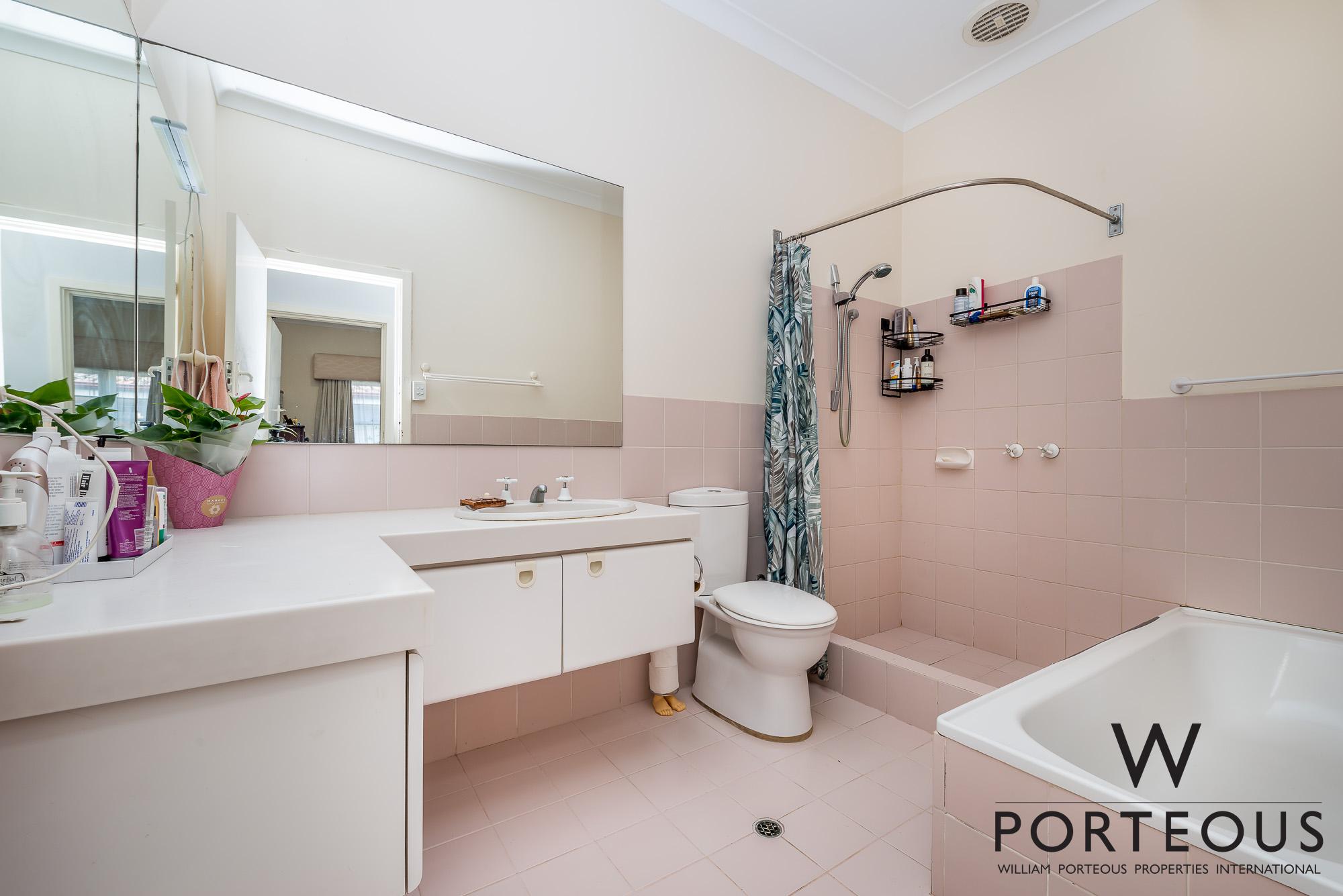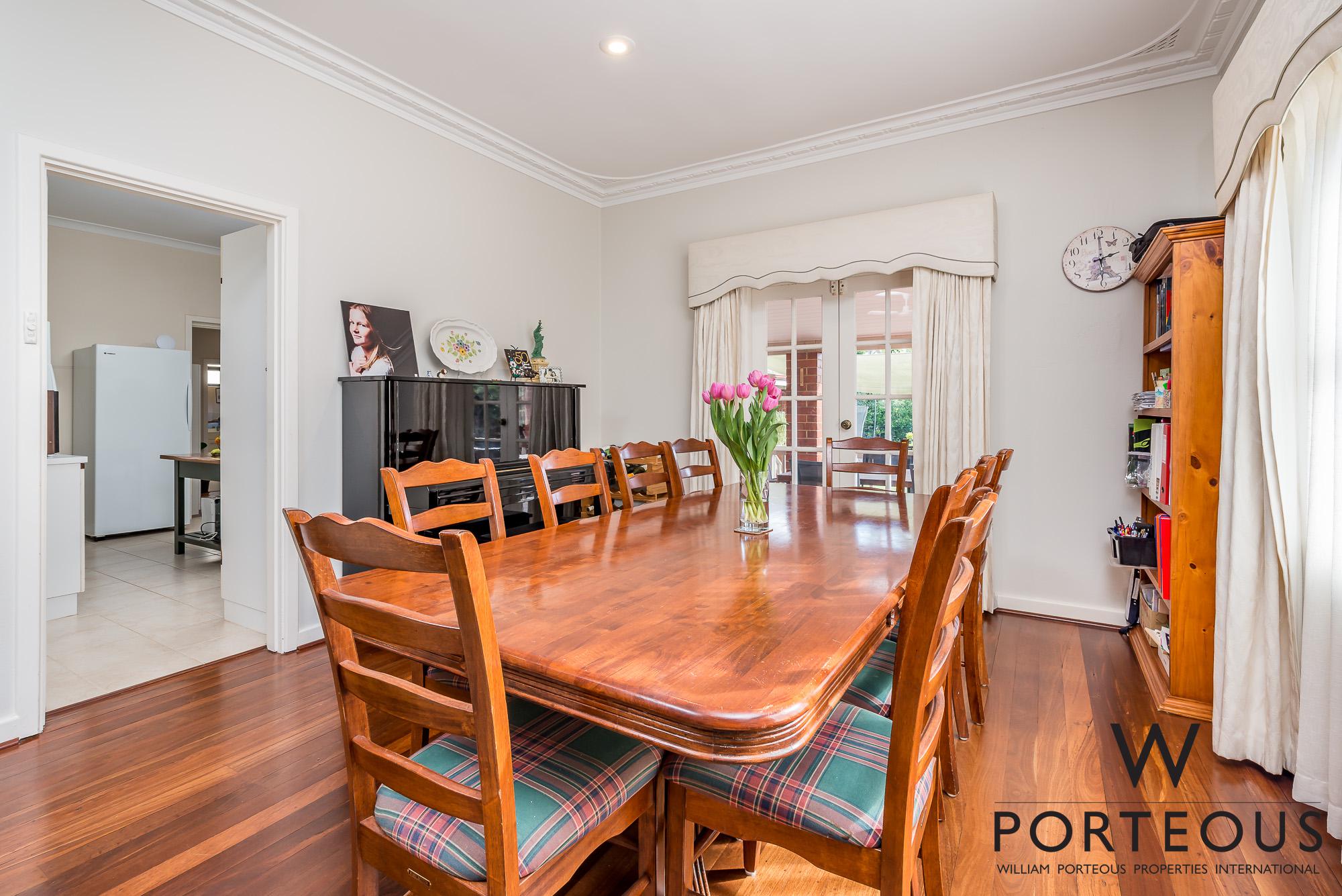 This comfortable brick-and-tile residence is as solid as they come and is graced by high ceilings and gleaming Jarrah floorboards. Beautiful double French doors off the entry reveal a spacious open-plan lounge and dining room that features a character marble fireplace. This is a fantastic living space, cosy in Winter and cool in Summer. Two separate sets of double French doors open to the verandas, connecting you well to the outdoor areas.