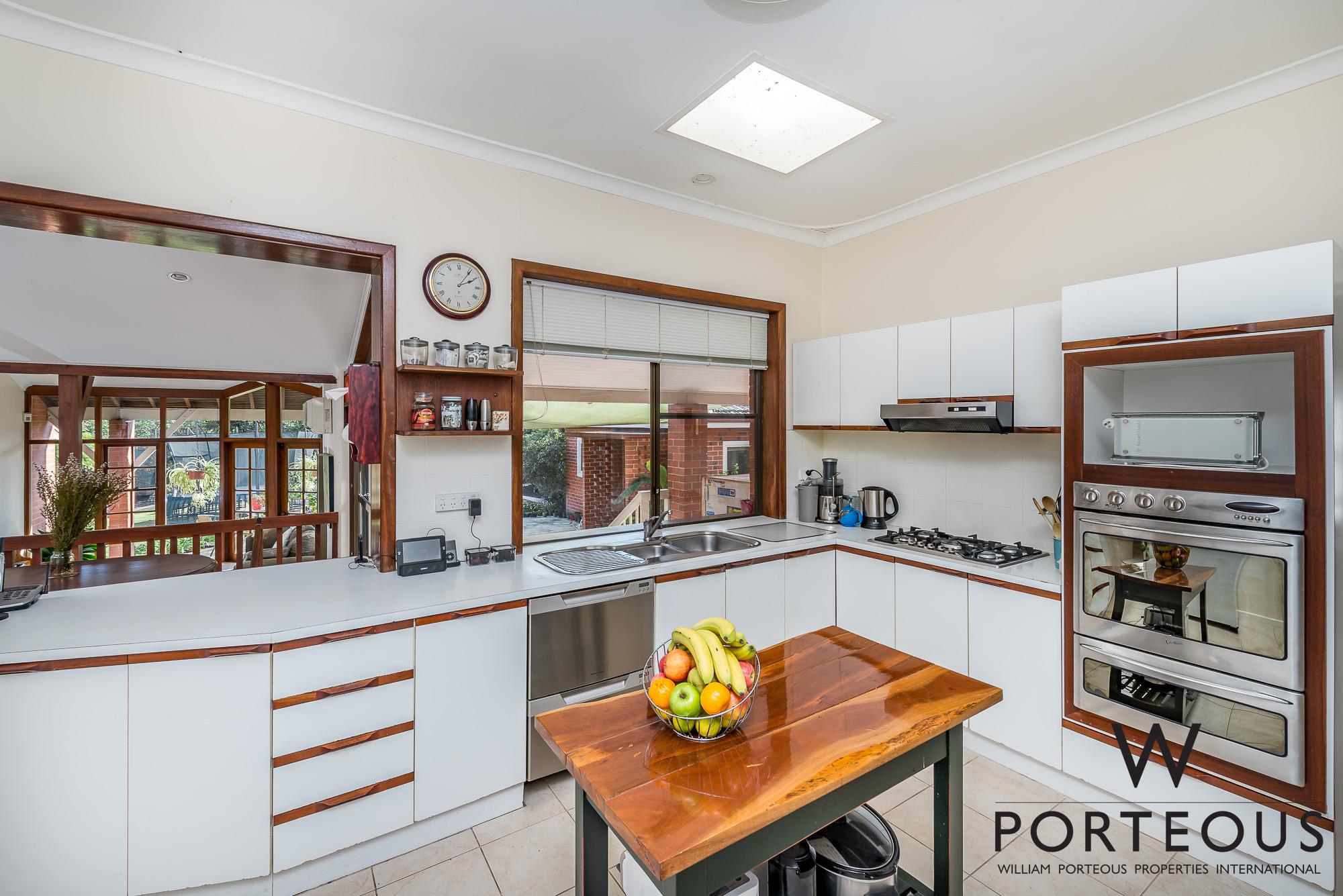 The central kitchen is both tiled and functional, playing host to a five-burner gas cooktop, a separate Virtuoso oven/grill, a stainless-steel Fisher and Paykel dishwasher and a servery window to the adjacent casual meals area that opens out to the back verandah and splendidly overlooks the large sunken family room. Functional and homely as it stands, it also gives you scope for modernising to your liking and adding further value to the home.