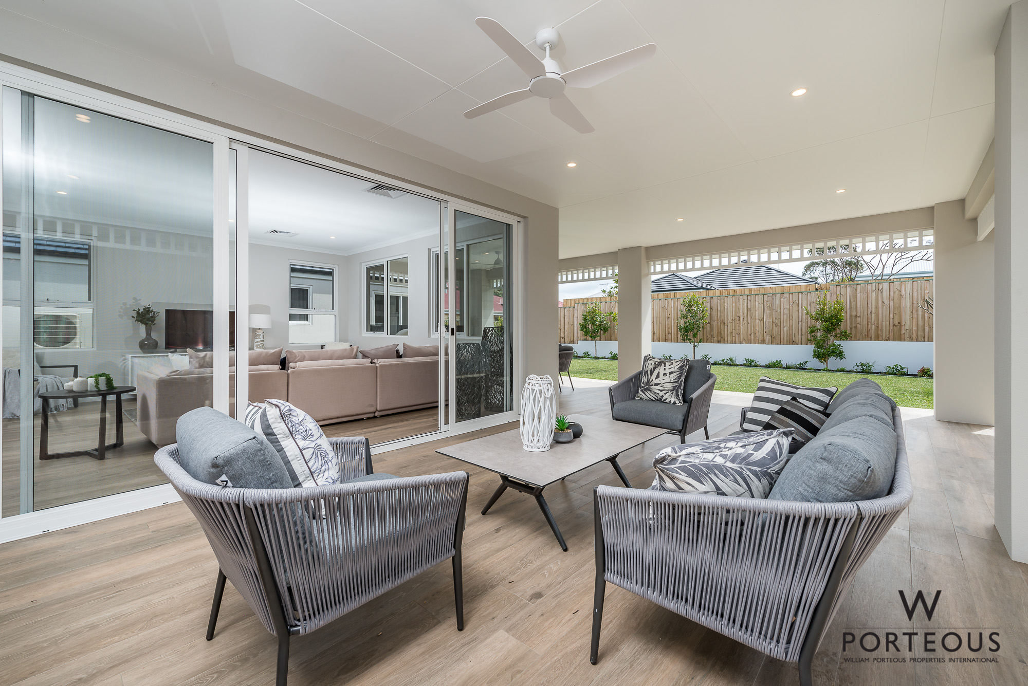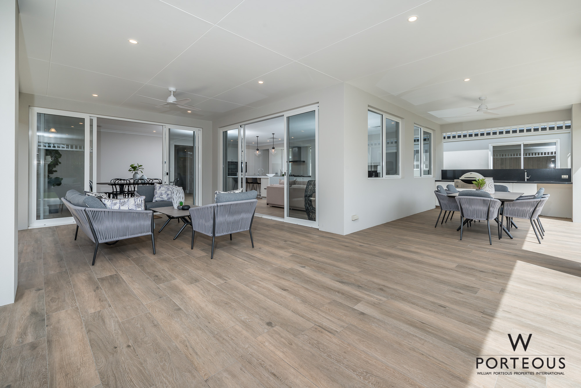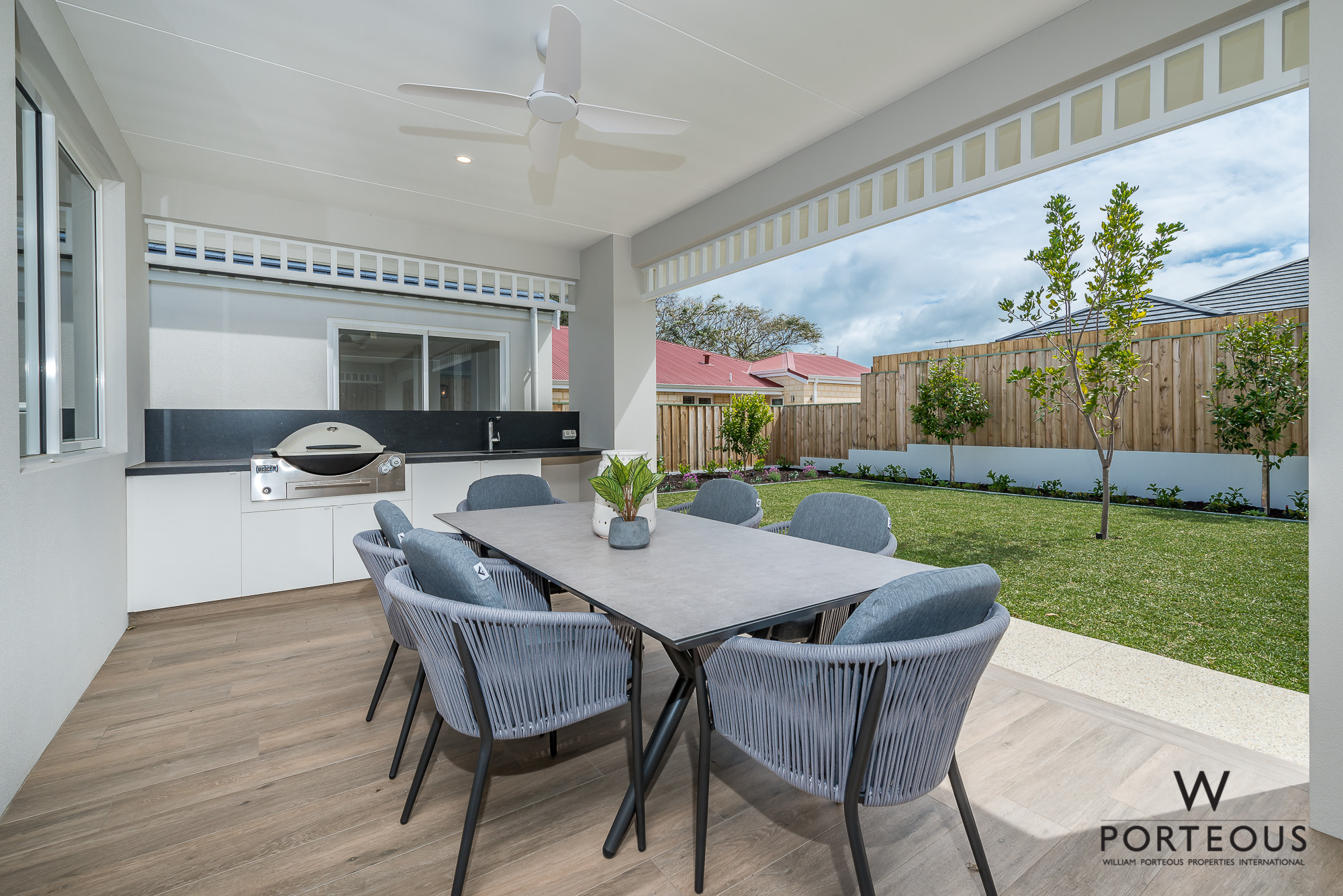 Professionally-landscaped gardens and spacious backyard lawns complement a massive wraparound alfresco-entertaining area with two ceiling fans and a built-in stone kitchen of its own – featuring a sink and a mains-gas Weber barbecue for all occasions.