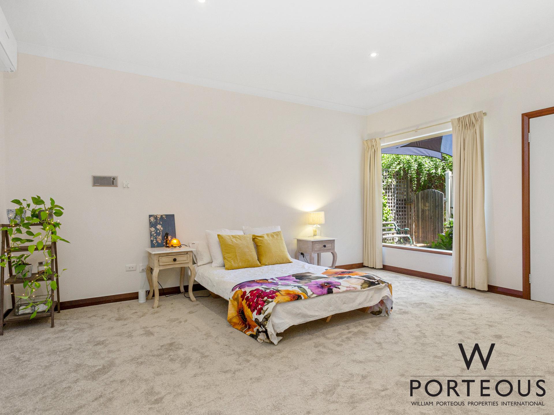 Located beyond family living areas is one of two huge master suites. A set of private rooms perfect for teens, extended stay guests or older relatives offering a massive suite sized bedroom with picture windows overlooking a delightful water fountain and rear gardens; a huge dressing room, powder room, en-suite with spa bath and garden access.