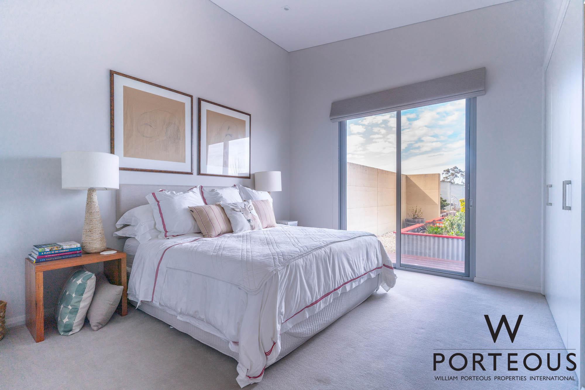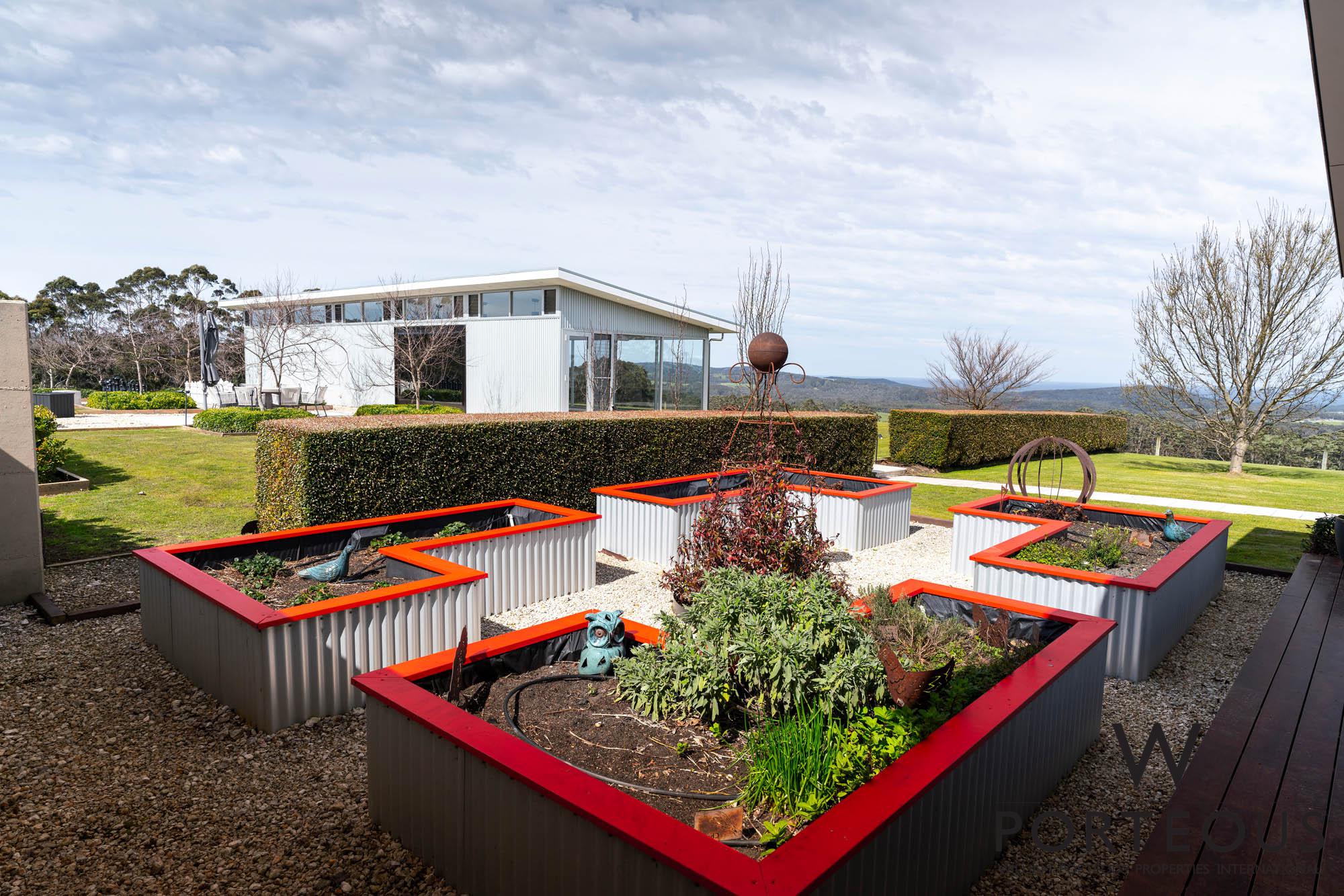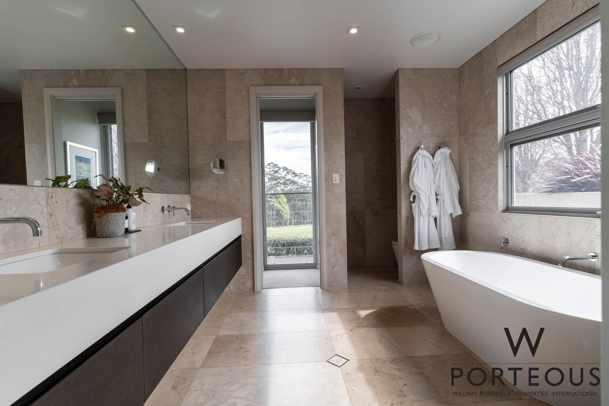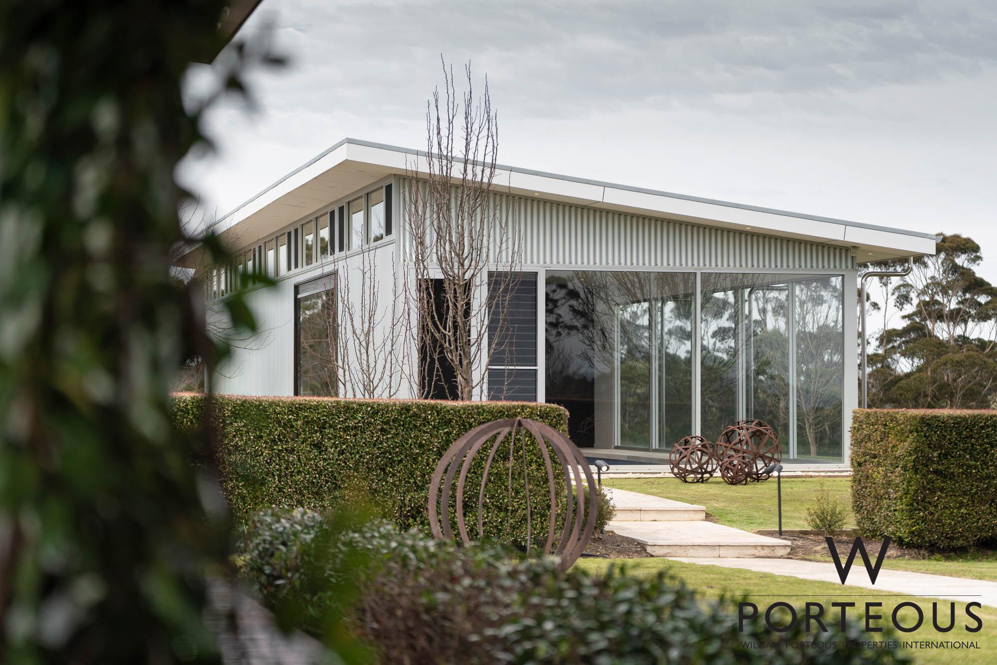 The main residence offers three bedrooms, two bathrooms and a powder room. The master suite is located on the western end of the home. It is large with a walk-in robe, ensuite bathroom with twin vanities, shower, separate bath and separate W.C. There is a small adjoining study. The main living, dining, and kitchen area is the centrepiece of the residence, with a fireplace incorporated into the feature stone wall. This complements the hydronic underfloor heating and cooling. On the eastern side, we have two more large bedrooms, a bathroom, powder room, laundry, and garage.