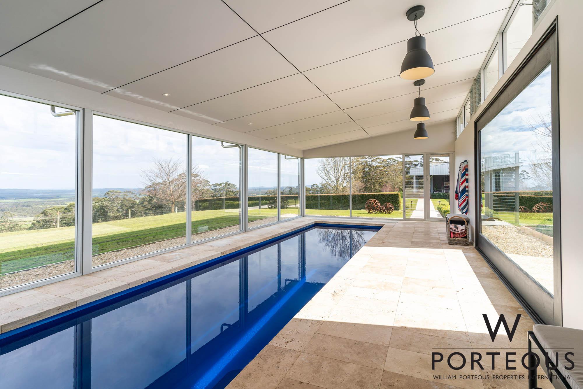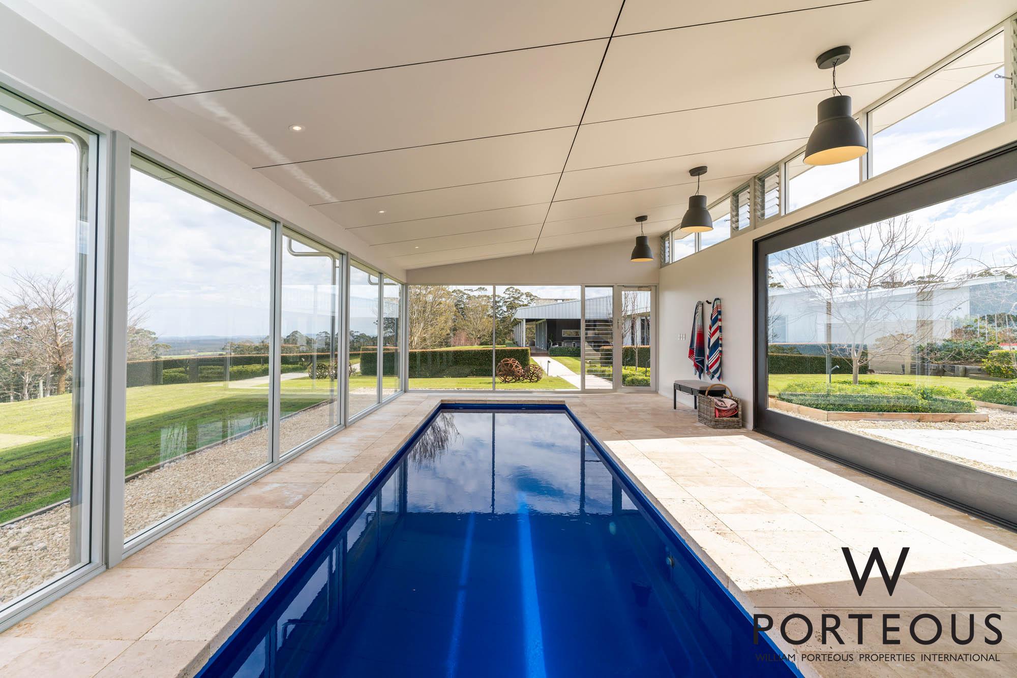 Adjacent to and in the same alignment as the house, is the pool pavilion. This is home to the indoor heated 9m saltwater pool and two more bedrooms with a full bathroom. One of these rooms is currently used as a gym and the other as a studio.