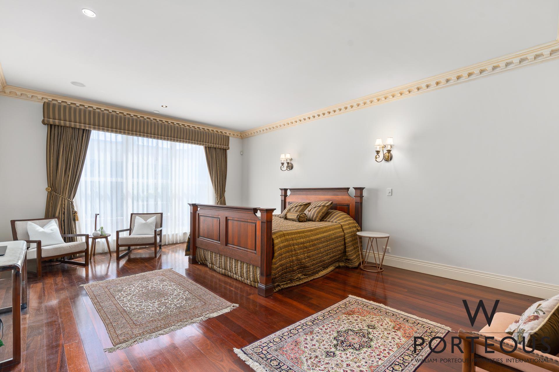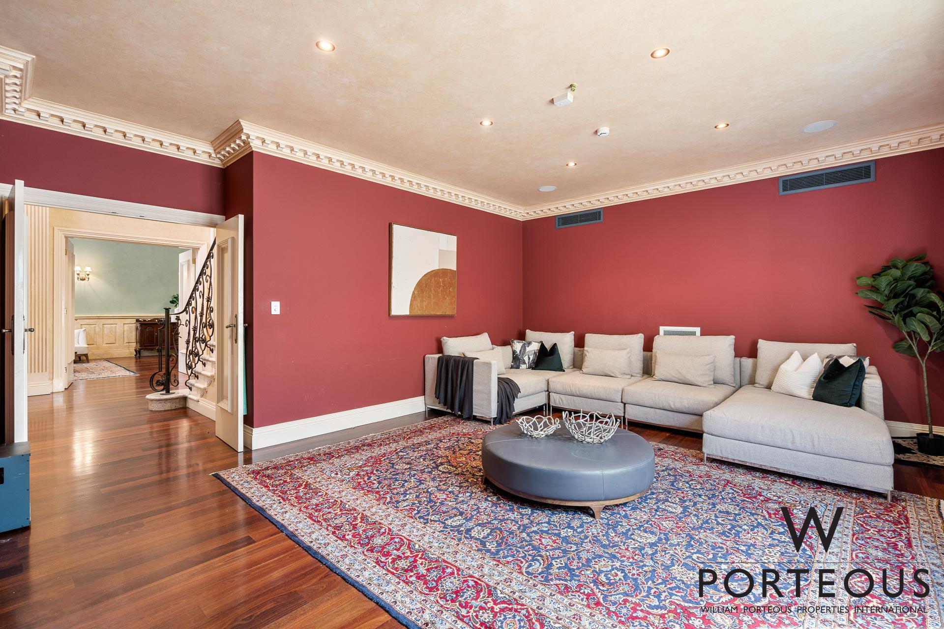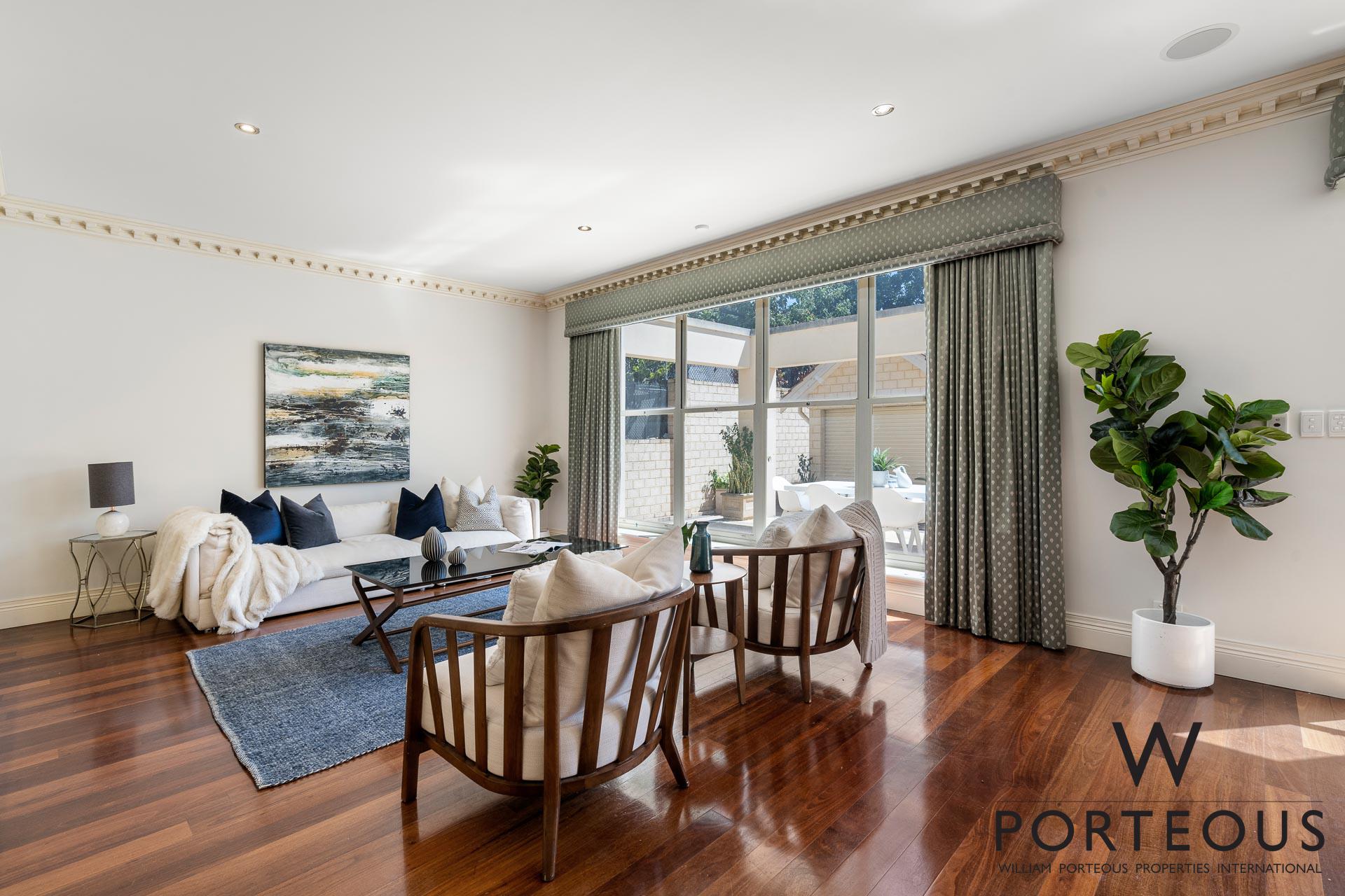 In the ever popular northwest quadrant of Dalkeith, close to the river, parks, schools and shopping, this is an ideal, large, generous family home. Bespoke in every way, no expense was spared in its creation in 2002. Fully fenced and behind a secure electronic gate, the forecourt is generous and provides access into the spacious secure 4 car lock up garage, which in turn opens directly into the house. Stepping through the front door into the grand foyer, you are greeted by a towering 6.1m ceiling with ornate detailing, a spectacular chandelier, gleaming solid Jarrah floorboards and a beautiful staircase leading up the second floor. To the left of the entry, we have one of the many remarkable rooms. It is a grand ballroom, with an ornate 6m ceiling that includes spectacular ceiling roses for the two chandeliers. The Jarrah flooring continues through this room, and we have large windows welcoming in natural light and air flow. This is a room that was made for entertaining. Fantastic as a formal lounge and dining space, or keep it for hosting events and parties. We can confidently say there is no other home in the area that boasts such a remarkable feature.