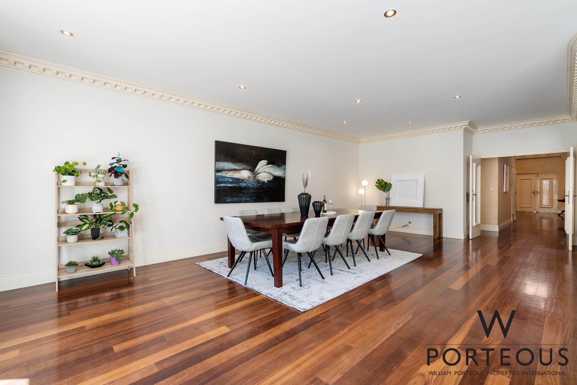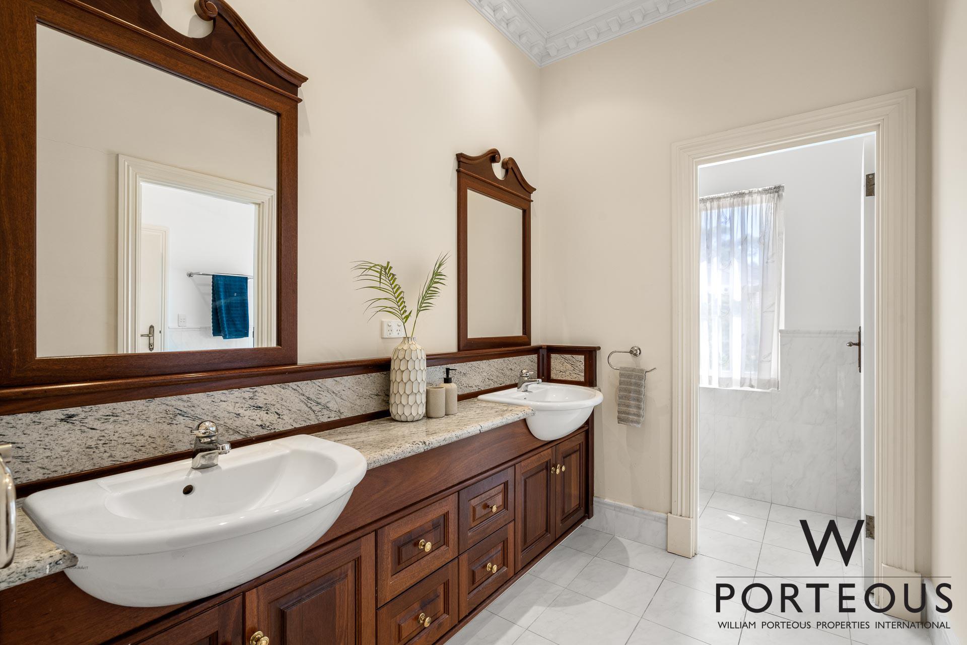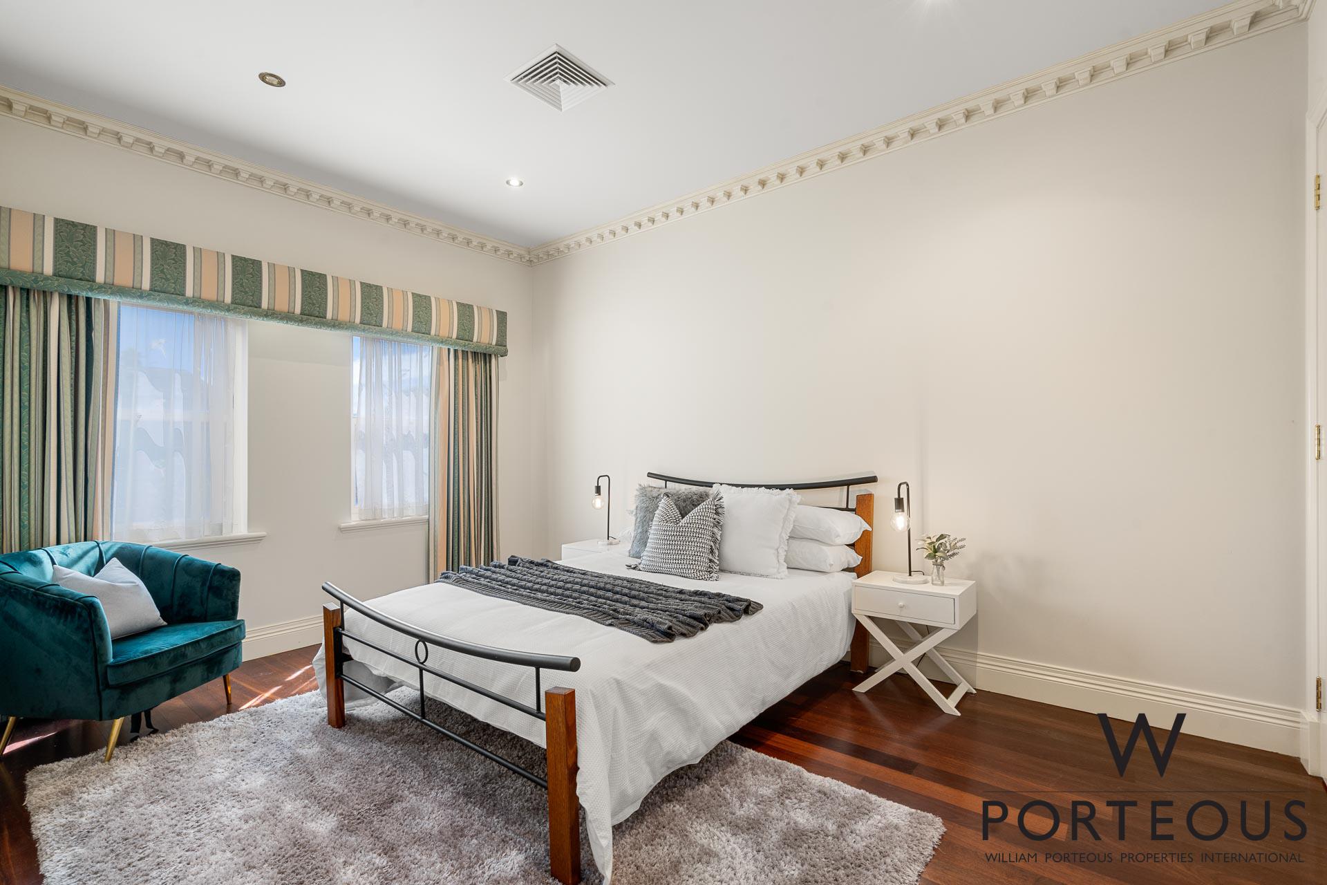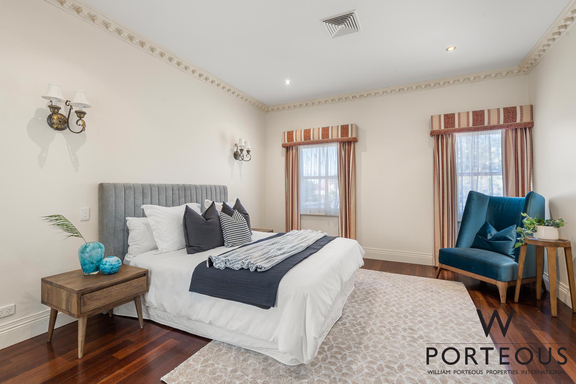 In the ever popular northwest quadrant of Dalkeith, close to the river, parks, schools and shopping, this is an ideal, large, generous family home. Bespoke in every way, no expense was spared in its creation in 2002. Fully fenced and behind a secure electronic gate, the forecourt is generous and provides access into the spacious secure 4 car lock up garage, which in turn opens directly into the house. Stepping through the front door into the grand foyer, you are greeted by a towering 6.1m ceiling with ornate detailing, a spectacular chandelier, gleaming solid Jarrah floorboards and a beautiful staircase leading up the second floor. To the left of the entry, we have one of the many remarkable rooms. It is a grand ballroom, with an ornate 6m ceiling that includes spectacular ceiling roses for the two chandeliers. The Jarrah flooring continues through this room, and we have large windows welcoming in natural light and air flow. This is a room that was made for entertaining. Fantastic as a formal lounge and dining space, or keep it for hosting events and parties. We can confidently say there is no other home in the area that boasts such a remarkable feature.
